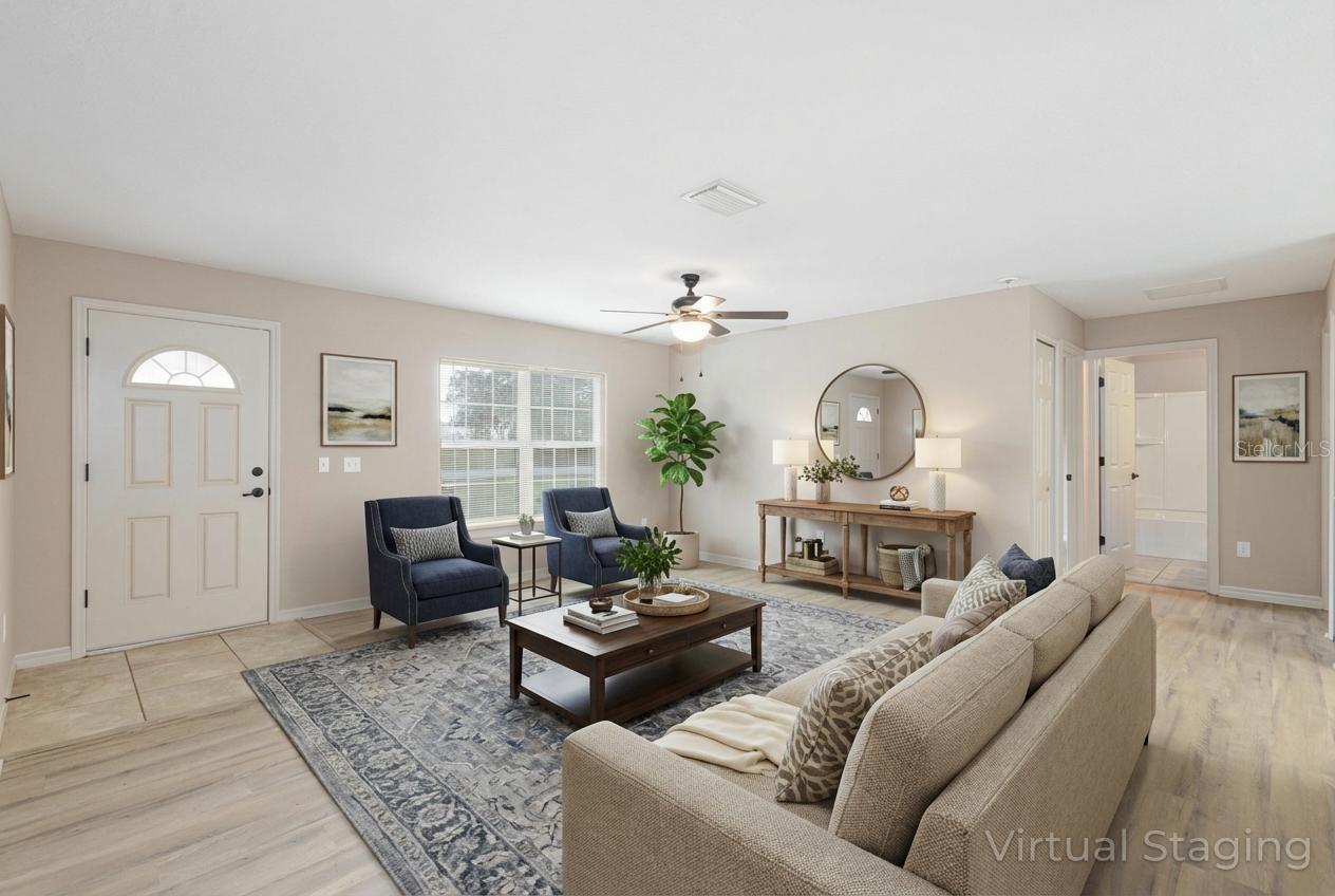 Uma ou mais fotos foram virtualmente encenadas. Localizada em 5 Malauka Radial Circle em Ocklawaha, a propriedade fica em uma área rural, mas em crescimento, sem HOA e sem vizinhos traseiros! A casa está situada em um lote de 0,29 acres e possui um quintal totalmente cercado, proporcionando espaço ao ar livre utilizável e amaciante de água também incluído, 2 itens grandes agregando valor extra à sua nova casa. Construída em 2022, esta casa de 3 quartos e 2 banheiros oferece um layout funcional de quartos divididos com quartos bem dimensionados. Um novo piso vinílico de luxo foi instalado em toda a casa, exceto na cozinha e nos banheiros, e o interior foi pintado recentemente. A cozinha oferece muitos armários junto com uma despensa para armazenamento adicional, e todos os eletrodomésticos estão incluídos na casa. A suíte principal oferece um amplo closet e banheiro privativo com box amplo e pia individual. Agende seu tour privado hoje e experimente a tranquilidade da vida no campo. Todas as informações registradas no MLS pretendem ser precisas, no entanto, devem ser verificadas de forma independente pelo comprador e seu agente. Confira o tour virtual!