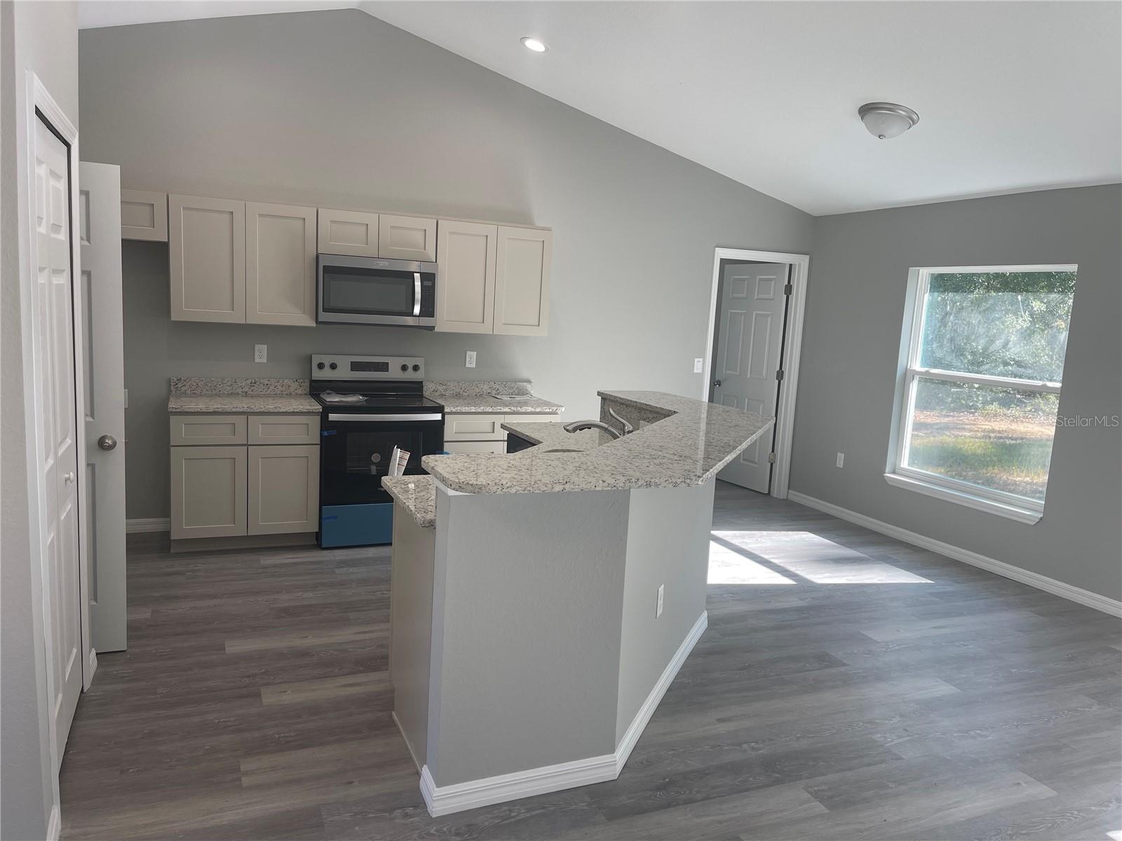 Concluído! Venha ver esta bela nova casa de construção, aninhada entre Ocala e as aldeias na comunidade de Ocklawaha, perto da comunidade de Ocklawaha, perto de Lake Weir. Este plano de piso aberto de 3 quartos 2 do banheiro possui construção de blocos de concreto, a cozinha possui todos os armários de madeira, bancadas em granito, ilha e utensílios de aço inoxidável, tábuas de vinil de luxo pisos à prova d'água por toda parte, tetos abobadados, fã/luz moderna, quarto principal apresenta closet, um chuveiro de ladrilhos, garagem de duas carros.