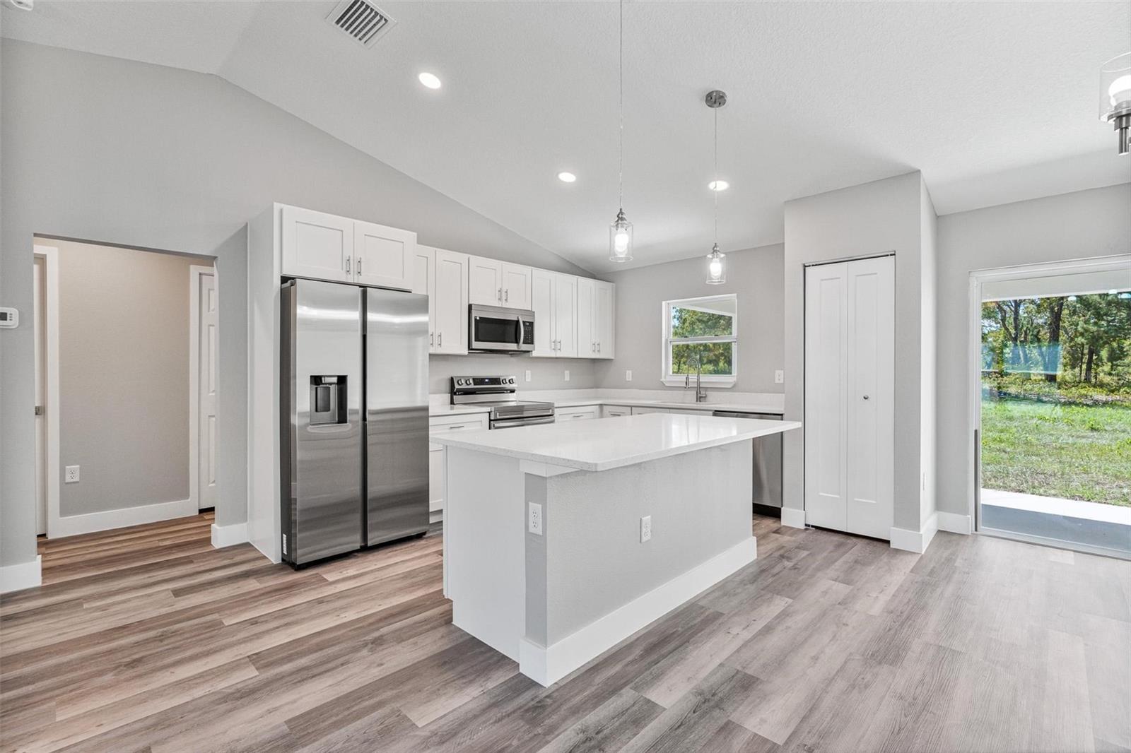 Nova construção impressionante em Ocklawaha-um imperdível! Descubra esta linda casa recém -construída situada no cenário sereno de Ocklawaha. A partir do momento em que você chega, você notará os holofotes cuidadosamente colocados que iluminam todos os quatro cantos da propriedade, adicionando estilo e segurança. Entre na varanda convidativa, onde um ventilador de teto garante seu conforto ao relaxar ao ar livre. No interior, a planta aberta impressiona imediatamente com seus acabamentos modernos e design elegante. A cozinha e os banheiros apresentam bancadas de quartzo luxuosas, enquanto a iluminação embutida toma banho toda a área de estar em um brilho quente e acolhedor. A cozinha está totalmente equipada com aparelhos essenciais, incluindo uma máquina de lavar louça, geladeira, fogão e microondas, garantindo que esta casa esteja realmente pronta. Aproveite a privacidade de uma planta baixa, com a espaçosa suíte master cuidadosamente separada dos quartos de hóspedes. O quarto principal é um verdadeiro retiro, com um teto de bandeja, um grande armário e um banheiro privativo com toques sofisticados. Do lado do hóspede, os quartos de hóspedes de tamanho generoso são complementados por um banheiro de hóspedes bem equipado, oferecendo conforto e conveniência para a família e os visitantes. Luminárias modernas e ventiladores de teto são cuidadosamente colocados em toda a casa, melhorando todos os quartos com estilo e praticidade. Como um bônus adicional, o Spectrum Internet Service está disponível, garantindo que você permaneça conectado em sua nova casa. Não perca a chance de possuir esta bela propriedade! Agende sua exibição hoje e experimente tudo o que esta casa tem a oferecer.