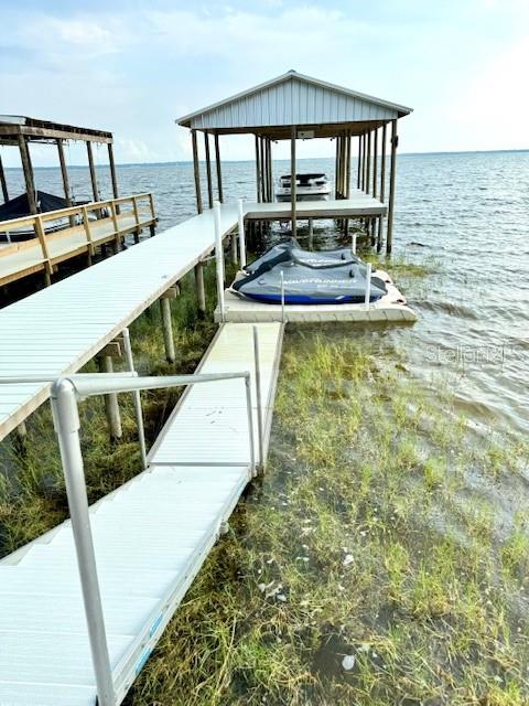 Não perca a oportunidade de viver a vida no lago! Casa renovada à beira-mar na costa norte de Big Lake Weir em um belo lote de 0,44 acres com aproximadamente 49' de linda praia de areia! A casa tem 1.575 SF de espaço aquecido/resfriado com 2 quartos, 2 banheiros, sala de estar, sala de família, sala de jantar, uma grande despensa e uma marquise com ar condicionado/aquecimento e vista aberta para o lago. Um banheiro tem acesso externo para os hóspedes. Você pode sentar e apreciar o pôr do sol incrível no deck de concreto recentemente instalado (2022) ou na recém-construída (outubro de 2023) doca do deck que tem duas áreas cobertas. Há muito espaço para guardar seus brinquedos do lago com um elevador elétrico para barcos e uma doca flutuante Wave Amour para 2 jet skis. Água e eletricidade estão disponíveis no cais. Há uma garagem individual de 32'x28' com uma grande área de oficina/armazenamento fechada. É ótimo para armazenamento de barcos, estacionamento, jet skis ou outros brinquedos de lago. Existe uma zona de arrumos 12 x 9 com lavandaria e uma zona coberta nas traseiras da casa com shiplap. Esta casa tem tudo o que você precisa para uma escapadinha incrível no lago! PREÇO PARA VENDER! NÃO ESPERE!