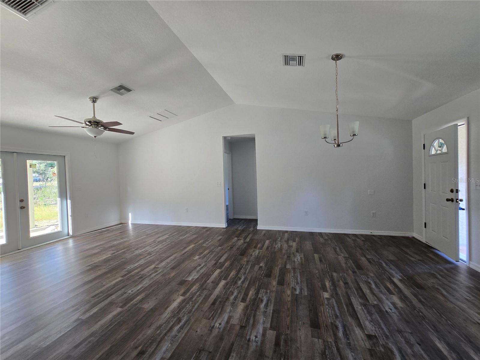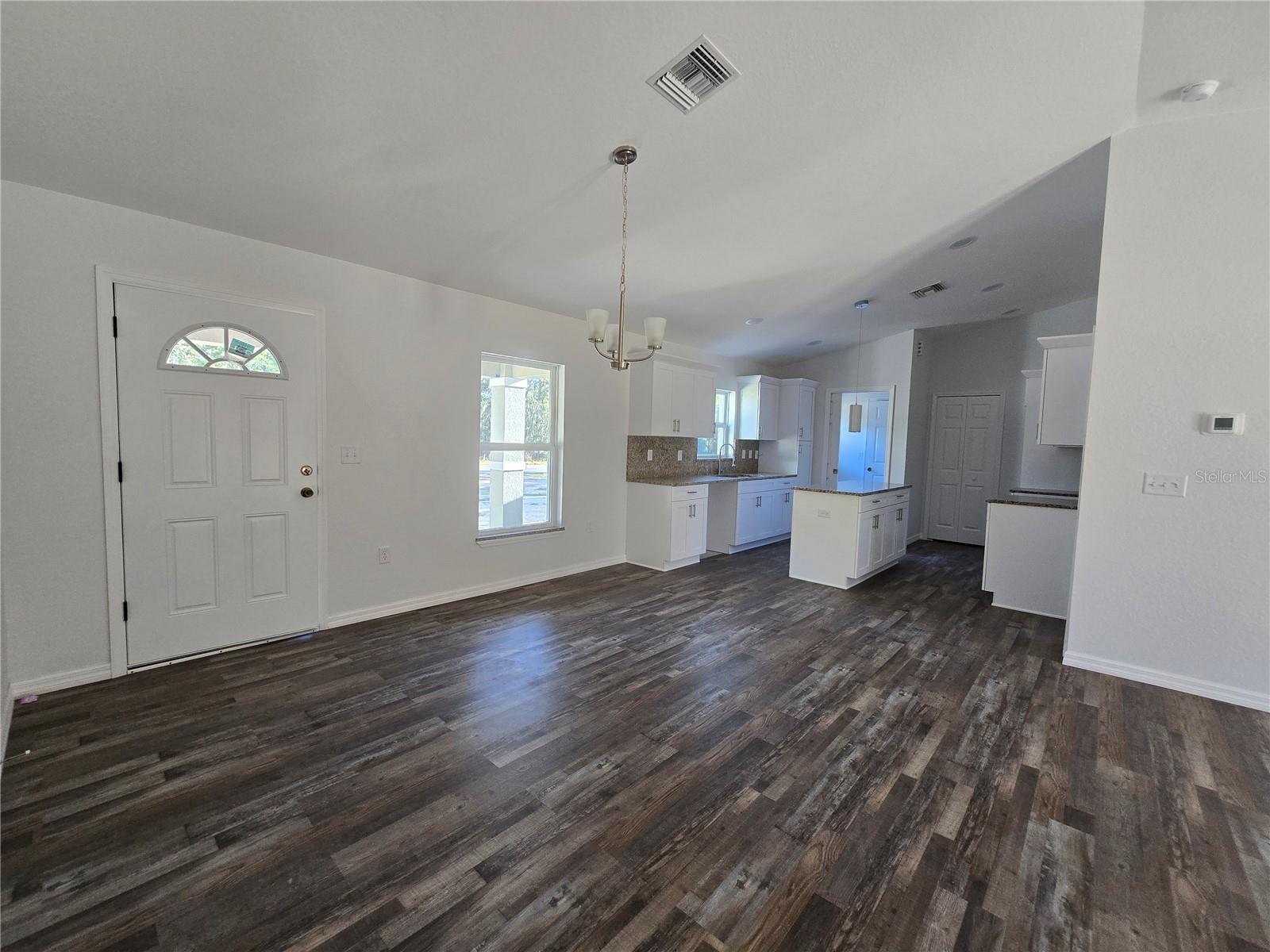 Em construção. Entre no luxo com este amplo refúgio de 3 quartos e 2 banheiros, garagem para 2 carros e uma charmosa varanda aberta. O design de planta dividida guia você sem esforço através de uma residência adornada com elegantes bancadas de granito na cozinha e nos banheiros, complementada por piso de vinil resistente e resistente para toda a vida. Os quartos de hóspedes, de proporções generosas, oferecem opções de mobiliário flexíveis, enquanto o quarto principal possui teto falso e armários separados para um toque adicional de luxo. Uma cozinha bem equipada, completa com uma ilha e amplo armazenamento com armários silenciosos por toda parte, sua casa estará totalmente equipada com fogão, geladeira, lava-louças e micro-ondas. A lavanderia adjacente garante praticidade com fácil acesso à garagem. Portas duplas abrem para uma ampla varanda traseira, um espaço perfeito para relaxar ou se divertir. Situado em um generoso quintal de 0,24 acres. Esta casa não está sujeita às restrições HOA. Você é livre para trazer todos os seus brinquedos, construir uma oficina, instalar uma piscina, uma cerca e ainda ter um pouco de grama para cortar! Equipado com poço e sistema séptico, oferece comodidade sem contas de luz. Situada a 20 minutos dos principais supermercados como Walmart e Publix, diversas opções de restaurantes, instalações médicas, correios e lojas em geral, esta propriedade combina perfeitamente conforto com acessibilidade. Os últimos retoques estão em andamento e quase concluídos. Você pode se mudar e admirar o lindo pôr do sol no Lanai até o final do ano! Aproveite a oportunidade para tornar seu este extraordinário imóvel!