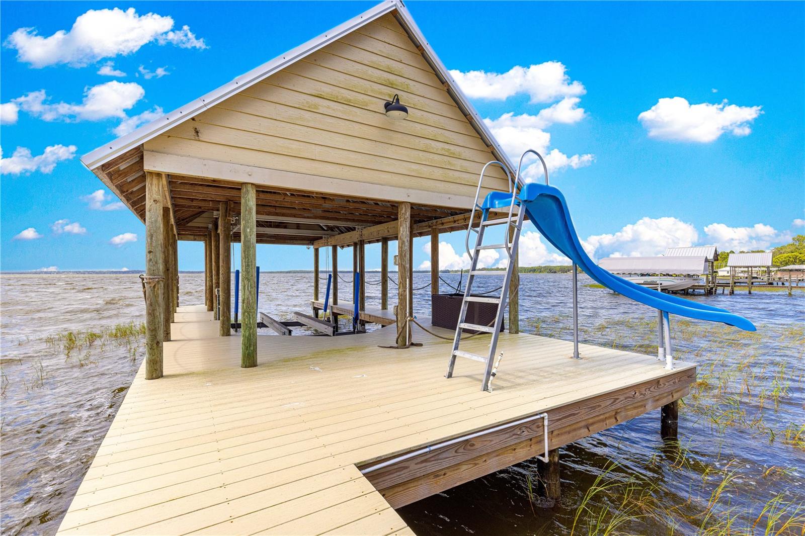Esta propriedade de luxo excepcional nas margens altamente procuradas de Lake Weir oferece um estilo de vida sem paralelo, com aproximadamente 168 pés de praia de areia intocada. Situado em uma parcela lindamente paisagística de 1,79 acres, esta propriedade expansiva apresenta uma casa principal de um plano dividido, bem projetado, com mais de 2.800 pés quadrados de espaço no primeiro andar, além de duas áreas separadas no andar de cima, oferecendo uma flexibilidade incrível. Uma cabana de hóspedes de 1 quarto e um banheiro destacado, com cozinha completa, sala de estar e armazenamento por baixo, adiciona charme e versatilidade a este notável retiro à beira-mar. Dentro da residência principal, um longo corredor central se estende de frente para trás, criando um layout distinto de “corrida de cachorro” e levando a uma enorme varanda fechada com vista para o quintal sombreado e o lago brilhante. A sala de estar de grandes dimensões, com tetos altos e belo piso de madeira, flui perfeitamente para uma cozinha espaçosa, oferecendo armários abundantes, espaço de superfície generoso e uma área de despensa/armazenamento de um mordomo dedicado. A luxuosa suíte primária no térreo inclui uma área de estar de nível inferior e um banho de glamour. Uma sala de bônus privada acima da suíte, acessível através da suíte master, apresenta uma varanda Juliette com vista para as áreas abertas de vida, jantar e cozinha abaixo. Fora do espaço principal, um conjunto completo de escadas leva a um pouso superior com um quarto grande, armário, meio banho e vista para o lago, além de acesso à sala mecânica que abriga o sistema HVAC e o aquecedor de água da casa. Dois quartos adicionais de tamanho generoso no piso principal compartilham um espaçoso banheiro de Jack e Jill, enquanto uma meia banheira com chuveiro está convenientemente localizada ao lado da lavanderia, que inclui uma pia, conexões de lavadora/secadora e portas de bolso para obter uma eficiência espacial ideal. As áreas de estar ao ar livre são igualmente impressionantes, com lindas árvores de sombra, um grande quintal da frente e uma entrada de automóveis de longo prazo que leva a um acionamento circular pavimentado. Uma segunda unidade fechada oferece acesso direto ao quintal - perfeito para barcos e equipamentos de lago. O sistema de doca expandido apresenta uma casa de barcos coberta com elevador e uma lâmina aquática, ideal para acessar e desfrutar de uma popular e deslumbrante açude do lago, de passeios de barco e esportes aquáticos a pôr do sol de tirar o fôlego. Destaques adicionais incluem uma garagem de dois carros destacada com duas portas de garagem padrão e uma terceira porta de grandes dimensões que se abre em direção ao lago, tapume hardiboard em todas as estruturas, energia elétrica subterrânea e um sistema de vácuo central (condição desconhecida). Com seu layout brilhante e arejado, planta versátil e potencial maciço, esta rara jóia à beira do lago oferece uma oportunidade única na vida de criar uma das propriedades mais desejáveis de Lake Weir. Algumas atualizações de cosméticos finais e toques pessoais elevarão essa propriedade excepcional ao seu pleno potencial.