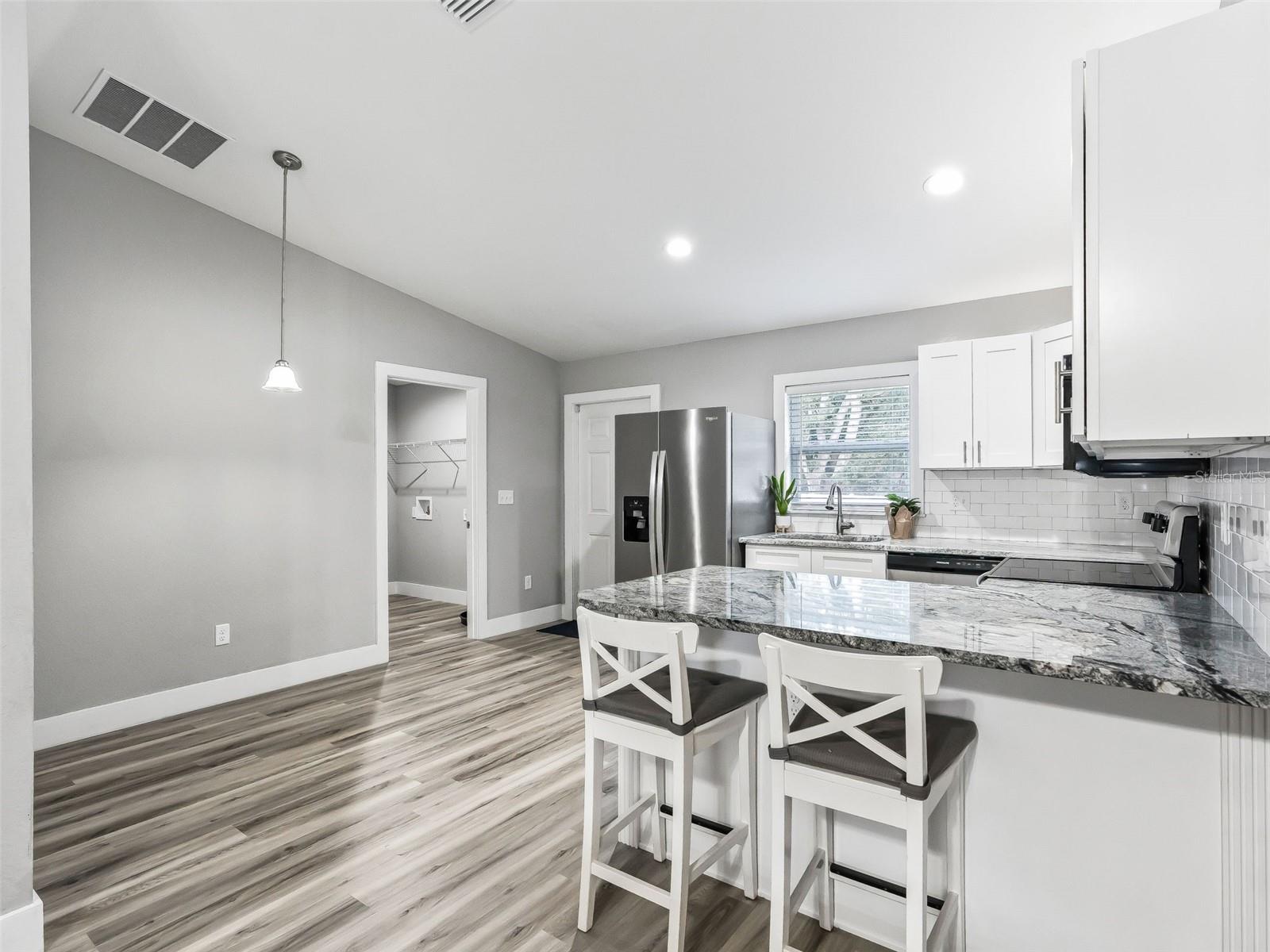 Melhor que novo - muitos extras desde a construção! Bem-vindo a esta encantadora casa de 3 quartos e 2 banheiros em Silver Springs Shores. A varanda coberta - completa com cadeiras de balanço e balanço - recebe você em casa. No interior, você encontrará uma planta aberta com tetos abobadados, piso leve e luxuoso de pranchas de vinil que se espalha por toda a casa, além de luminárias e ventiladores por toda parte. A cozinha aberta possui armários leves, bancadas em granito, backsplash de azulejos e um conjunto de eletrodomésticos em aço inoxidável. O layout do quarto dividido oferece uma suíte principal com closet completo e banheiro privativo com box amplo de azulejos, armário de roupa de cama e penteadeira de granito com espelho iluminado. O lado oposto da casa oferece dois quartos adicionais com armários embutidos e um banheiro compartilhado com pia de granito e combinação de chuveiro/banheira de azulejos com chuveiro de efeito chuva. O quintal foi totalmente cercado com cerca de privacidade de vinil e possui pérgula com pátio pavimentado, playset, balanço de árvore e cerca ao redor do poço. Você também apreciará o sistema de água Kinetico de última geração (valor de US$ 10 mil!), calhas e calhas, persianas e tratamentos de janela por toda parte, suportes de TV que serão transportados junto com alguns móveis, se desejado. Adicione esta casa à sua lista para ver hoje! Por favor, aproveite o vídeo em anexo e os passeios em 3D.