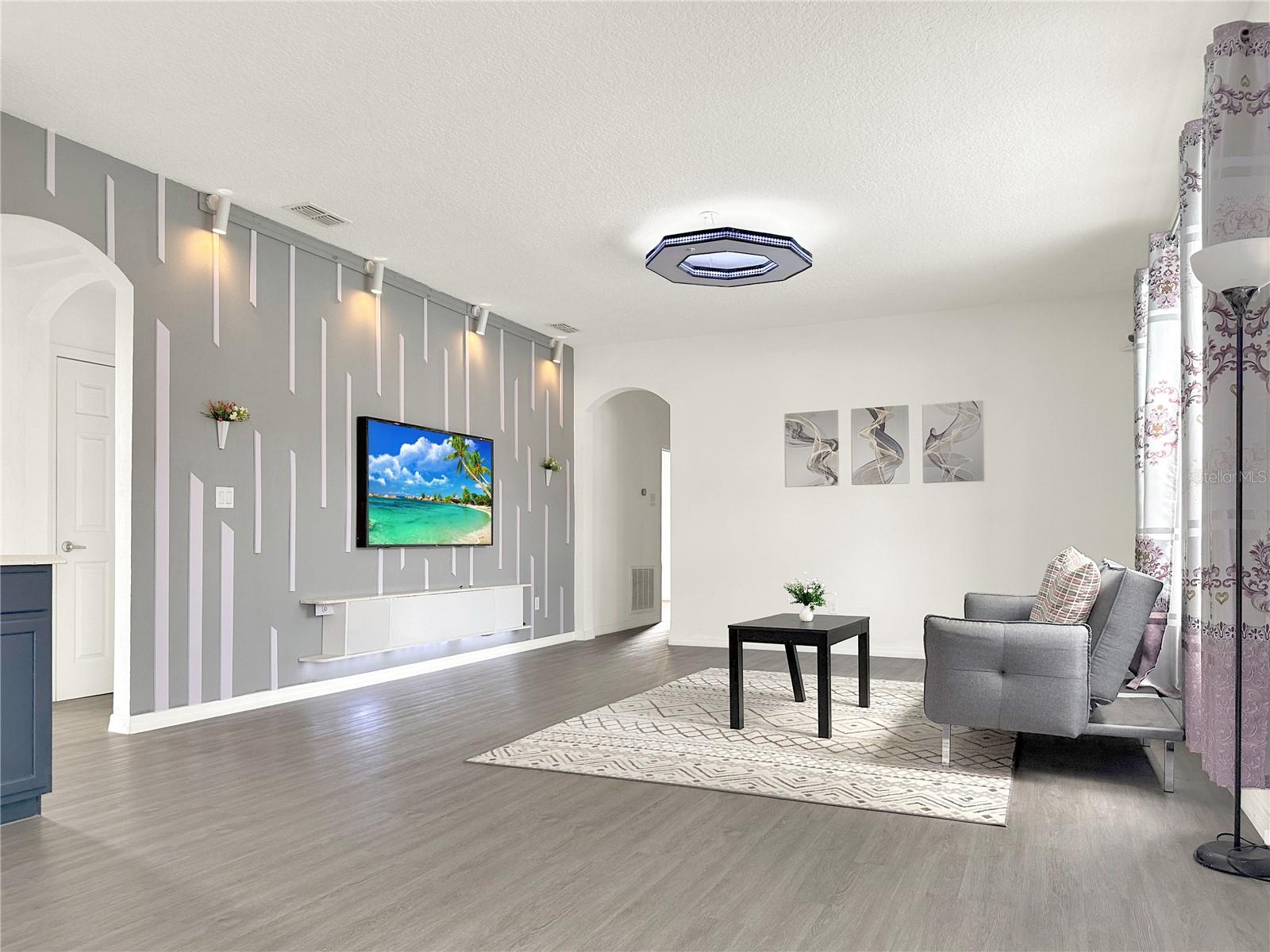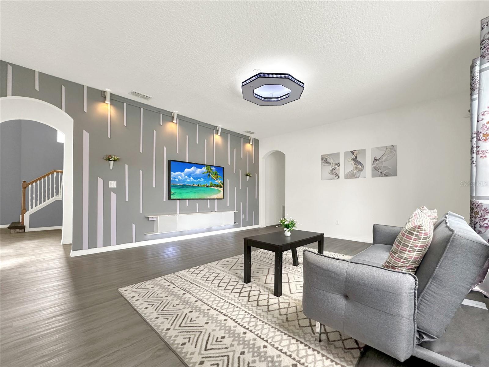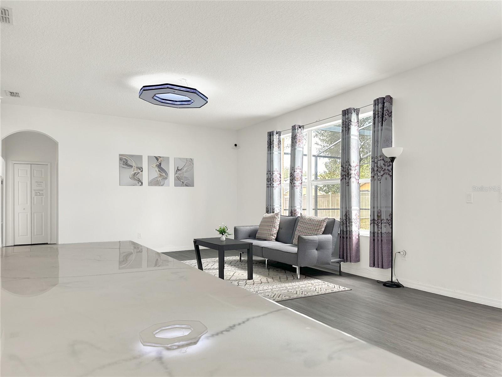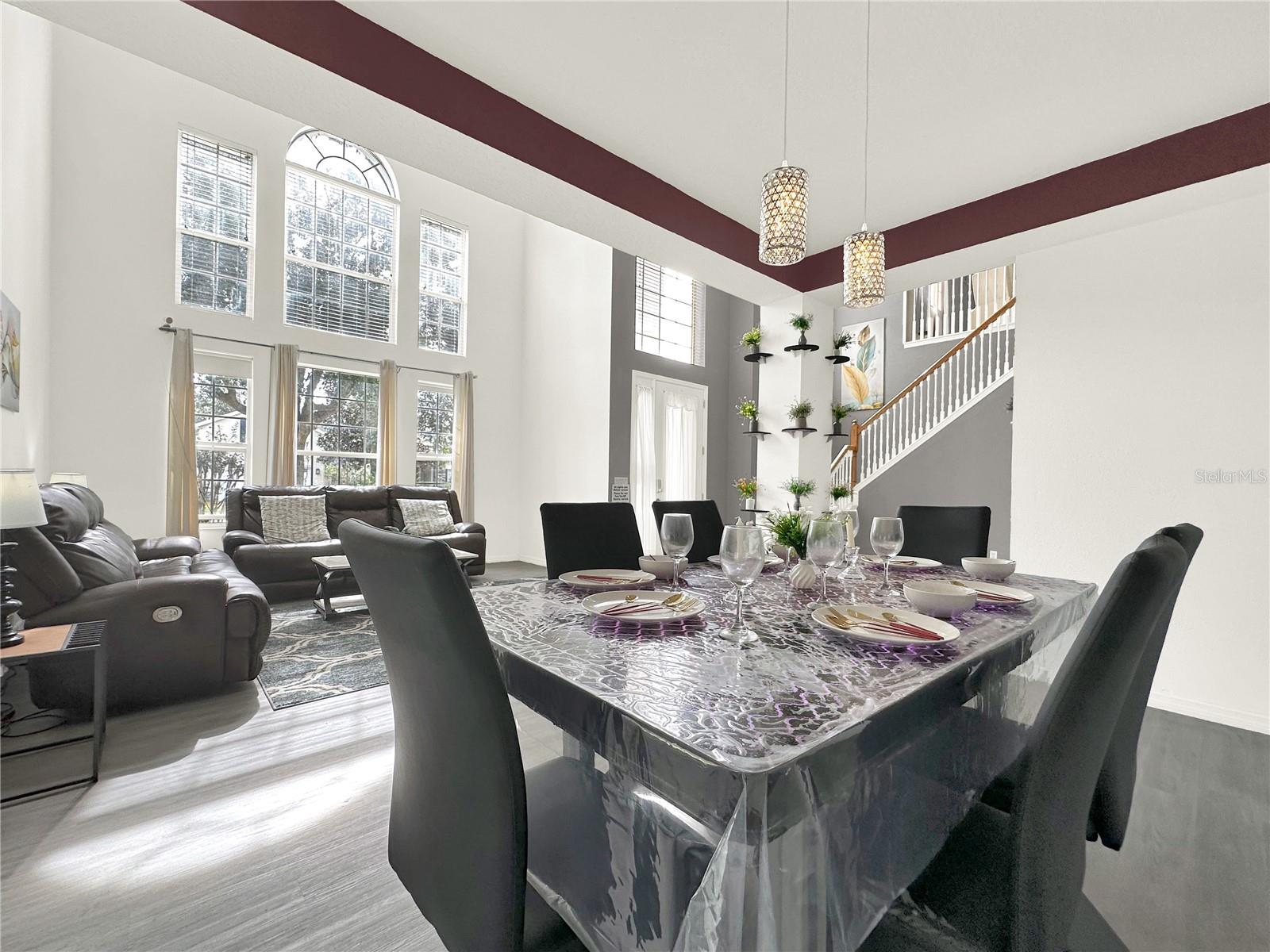 Bem-vindo ao lar deste impressionante casa de 5 quartos, 3,5 banheiros e 3 carros, situado em quase um quarto de hectare. Ao caminhar até a propriedade, você não pode deixar de notar a grande entrada de 20 pés que o recebe em uma espaçosa casa de dois andares, conceito de piso aberto, tetos altos e tem mais de 3.000 pés quadrados de área de estar. A sala de estar formal impressiona com seu teto de dois andares, criando uma atmosfera expansiva, enquanto a sala de jantar formal é perfeita para entreter os hóspedes. Em transição através das arcadas graciosas, você encontrará uma cozinha contemporânea equipada com armários atualizados, bancadas modernas, um elegante backsplash, utensílios de aço inoxidável, iluminação LED ambiente e uma ilha com assentos. A sala de família adjacente apresenta uma parede de destaque na moda, aumentando seu apelo. Um quarto convenientemente localizado no primeiro andar oferece flexibilidade para os hóspedes ou pode servir como um escritório em casa. Subindo para o segundo andar, você descobrirá uma área de loft aberta, ideal para uma configuração de home theater completa com uma tela de projeção de 110 polegadas. A expansiva suíte primária inclui um impressionante closet com entradas duplas, uma parede com letras elegantes, teto de bandeja e um banheiro seguro com vaidades duplas, uma área de vaidade de maquiagem, chuveiro separado e uma banheira de jardim perfeita para desenrolar após um longo dia. Três quartos adicionais de tamanho generoso completam o segundo andar. Os recursos adicionais incluem piso de tábua de vinil de luxo, um interior recém -pintado, iluminação LED personalizada com sensores e muito mais. Saia para aproveitar a piscina azul brilhante ou relaxar no pátio da pavimentadora, tudo dentro de um gabinete exibido. Um banheiro de cabana reduz convenientemente o tráfego de pedestres dentro de casa. Aninhado na comunidade Florest Trails, que possui uma taxa de baixa associação de proprietários de casas, os residentes podem desfrutar de comodidades como uma quadra de basquete, piscina comunitária, playground e clubhouse, juntamente com uma trilha de pé do lado de fora da comunidade. Este local oferece acesso conveniente ao centro de Orlando, os renomados parques temáticos da Flórida Central, compras, restaurantes e entretenimento. Esta residência combina magistralmente estilo, funcionalidade e um local invejável - não perca a oportunidade de torná -lo seu! O proprietário é o proprietário ocupado apenas com hora marcada. (A casa é estágio, os móveis não transmitem).