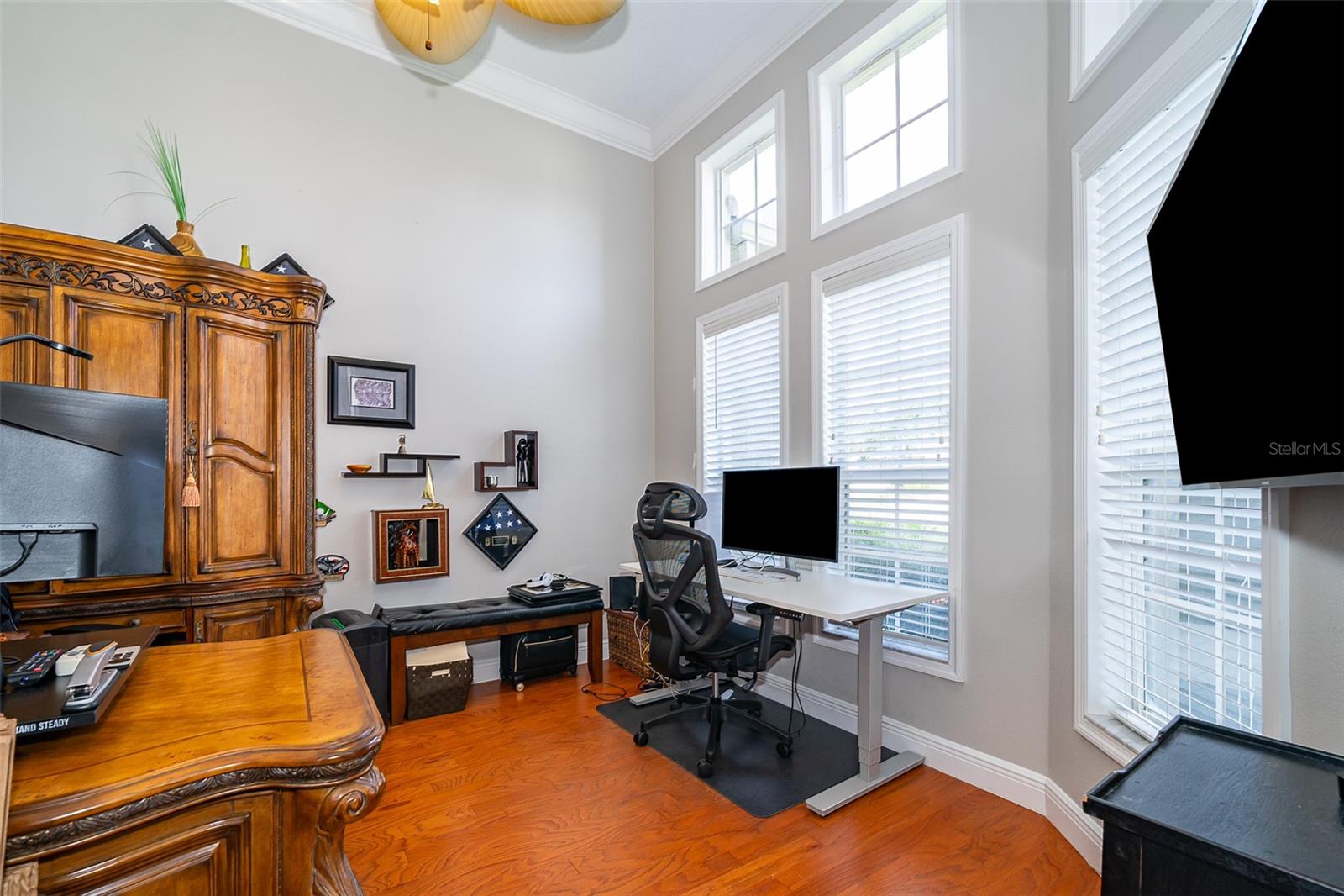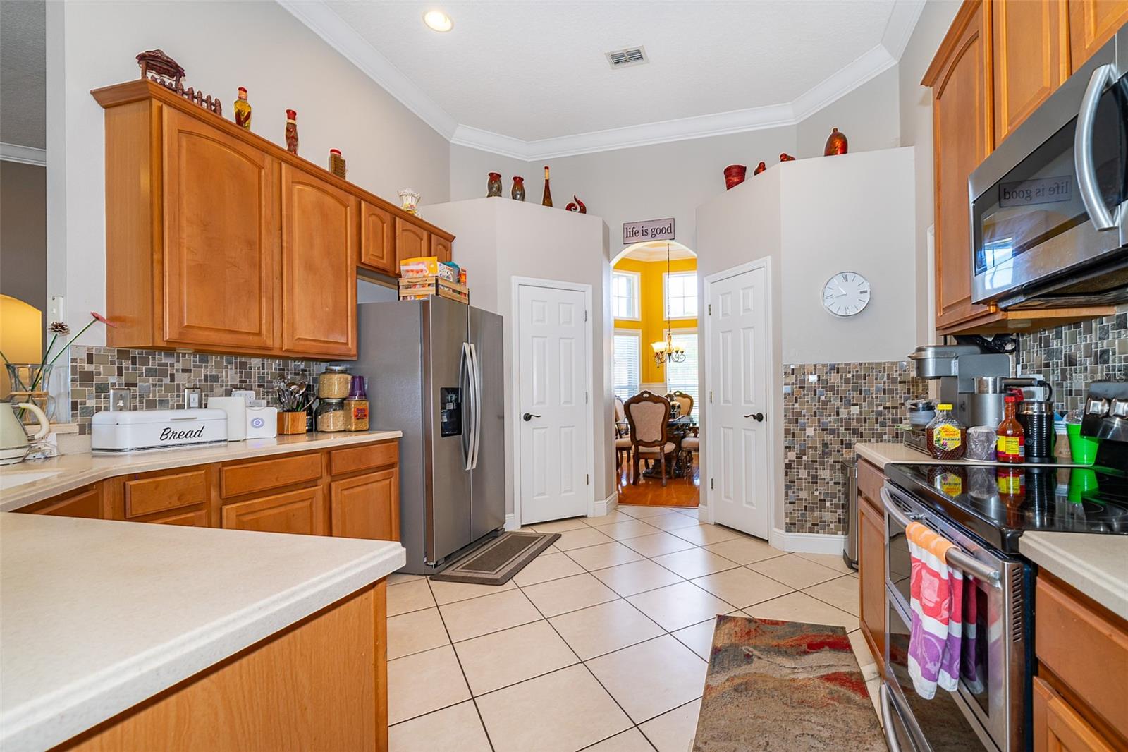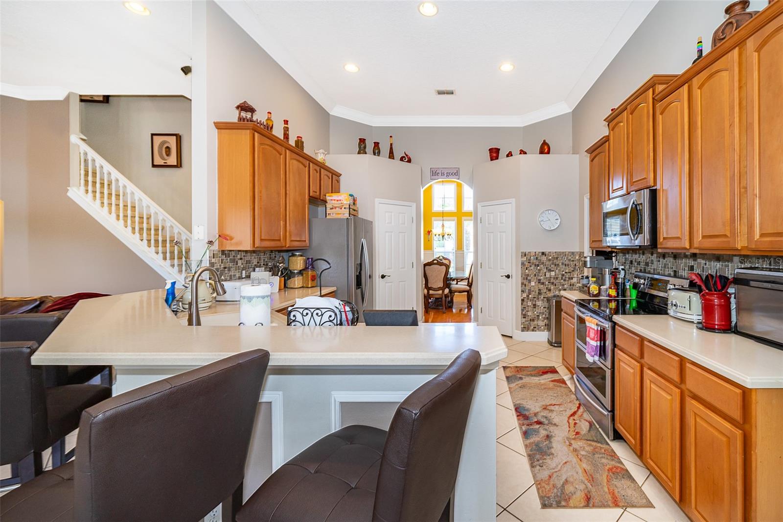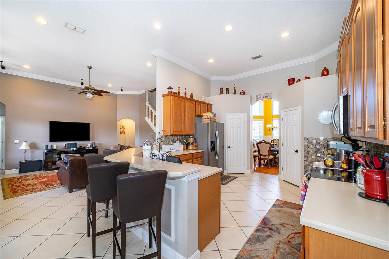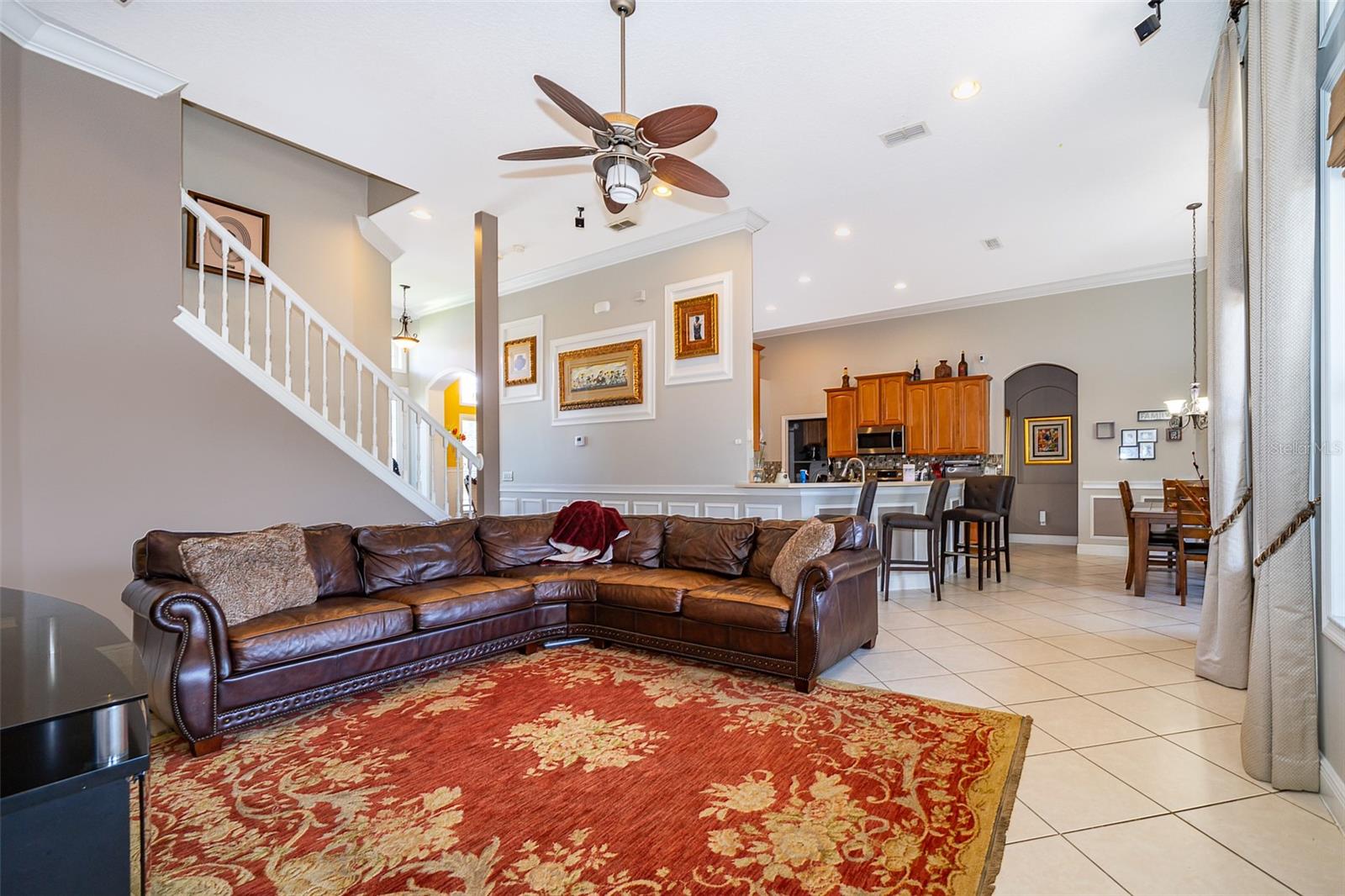 Entre na elegância com esta requintada casa de 5 quartos, 4 banheiros e dois andares, localizada na altamente procurada Kensington Manor. Esta casa se apóia em vistas serenas de conservação, sem vizinhos traseiros. Após a entrada, você será recebido por uma sala de jantar formal perfeita para hospedar hóspedes, ao lado de um escritório espaçoso, ideal para um trabalho remoto. O coração da casa é a expansiva cozinha gourmet, com armários de madeira personalizados, bancadas de granito luxuosas, utensílios de aço inoxidável e amplo espaço de armazenamento. O recanto de café da manhã adjacente tem vista para o grande quarto da família, criando um espaço convidativo para a vida e o entretenimento cotidianos. A luxuosa suíte primária, localizada no piso principal, inclui um banheiro privativo com um chuveiro independente, banheira de jato rejuvenescedor, pias duplas e um closet de tamanho generoso. Quatro quartos adicionais, também no piso principal, garantindo amplo espaço e conforto. No andar de cima, uma sala de bônus considerável oferece um espaço versátil para relaxamento ou entretenimento, enquanto um quarto adicional com seu próprio banheiro completo oferece aos hóspedes a privacidade final. Desfrute de uma vida ao ar livre no seu melhor com um vasto quintal e um espaçoso e exibido Lanai-perfeito para entretenimento durante todo o ano. Convenientemente localizado perto de escolas, compras, entretenimento e grandes rodovias, esta casa fornece a mistura perfeita de tranquilidade e acessibilidade. Não perca a oportunidade de tornar esta propriedade incrível sua!
