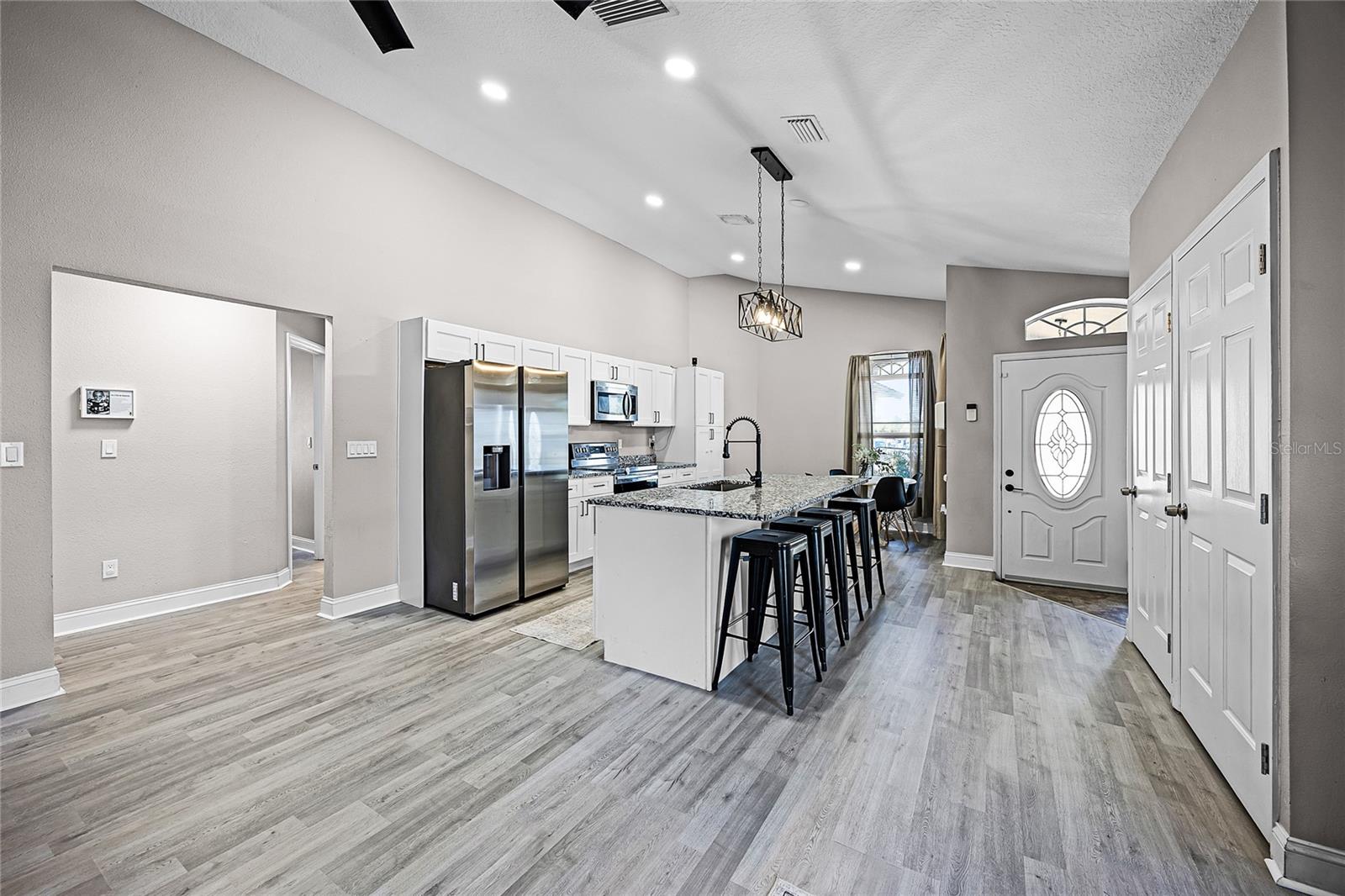 NOVA MELHORIA DE PREÇOS DESCOVER Esta casa lindamente atualizada de 4 quartos e 2 banheiros com uma garagem de 2 carros, oferecendo uma mistura perfeita de atualizações modernas e charme convidativo. Aninhado em um espaçoso lote cercado, esta casa oferece amplo espaço no quintal, ideal para relaxar ou divertir. Entre para encontrar pisos laminados novos por toda parte, adicionando um toque fresco e elegante. A cozinha renovada possui novas iluminação, armários, bancadas de granito e aparelhos de aço inoxidável, fluindo perfeitamente para uma área de jantar informal banhada em luz natural. Além da cozinha, uma sala de estar aconchegante aguarda, juntamente com um quarto versátil com portas francesas, perfeitas para um escritório em casa ou quarto de hóspedes. No corredor, três quartos adicionais novos pisos laminados, ventiladores de teto e luz natural abundante. A suíte primária é um retiro próprio, completo com um banho completo, vaidade dupla e um chuveiro de ladrilhos do chão ao teto. As atualizações adicionais incluem um sistema de filtragem de água de poço novo e clorinador (instalado em 2024), um amaciador de água, janelas duplas, um sistema HVAC substituído em 2017, o aquecedor de água substituído em 2014. Sem HOA e nenhuma conta de água, você certamente economizará algum dinheiro. Convenientemente localizado a poucos minutos do centro de Ocoee e do Winter Garden, com acesso rápido a 429, hospitais e escolas públicas e privadas com melhor classificação. Agende sua exibição hoje!