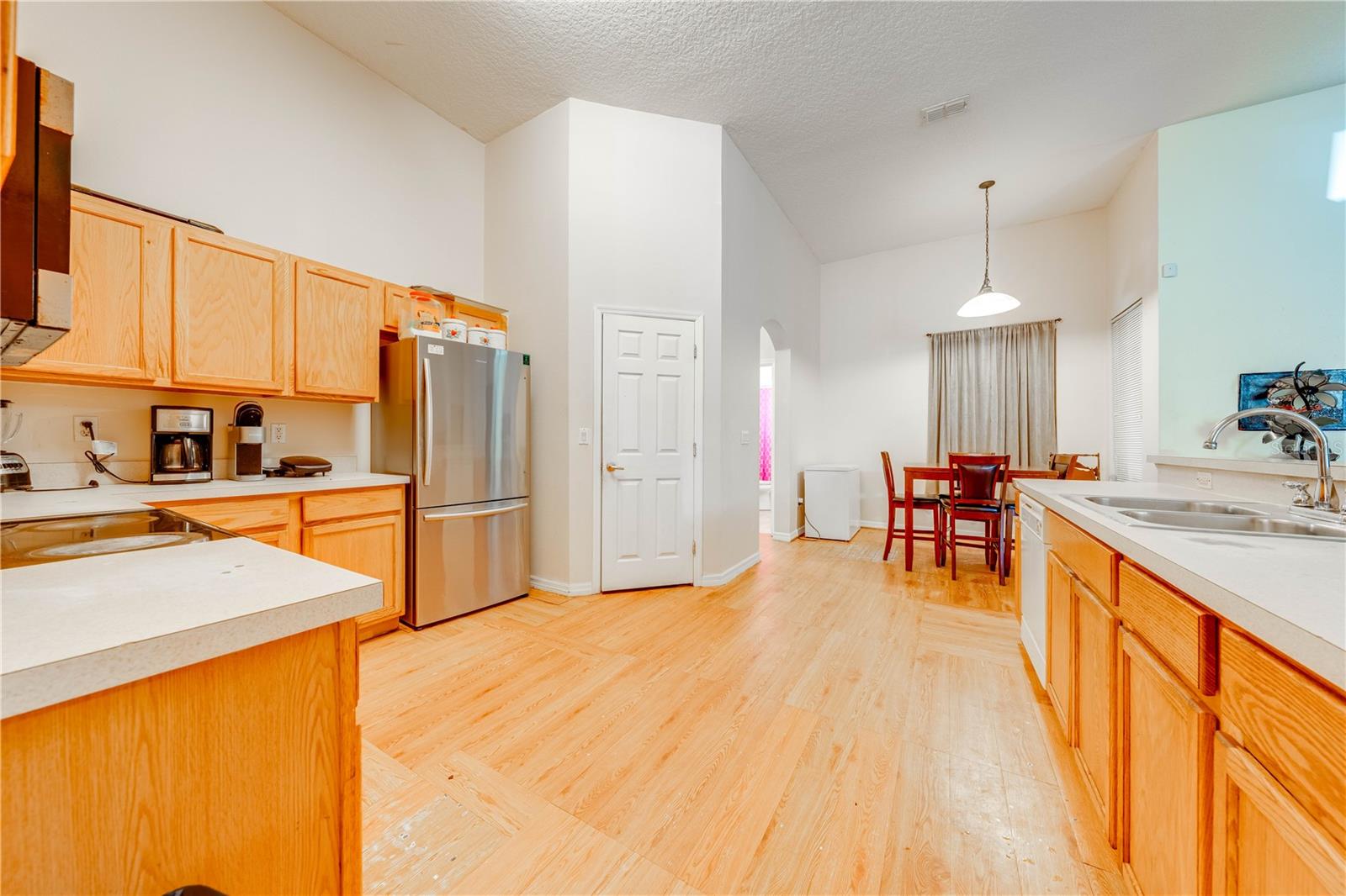 Esta propriedade oferece 2.563 pés quadrados de área útil com 4 quartos e 3 banheiros com espaço de escritório adicional! A planta aberta conecta perfeitamente a sala de estar com a grande cozinha. As características incluem tetos abobadados, uma baixa taxa HOA de US$ 425 a cada 6 meses e piscina comunitária. Painéis solares energeticamente eficientes já estão instalados e a unidade AC tem apenas 1 ano. O preço de tabela reflete seu valor abaixo do mercado, dando aos potenciais compradores a oportunidade de personalizar, substituindo pisos, bancadas e eletrodomésticos. Embora a varanda dos fundos tenha sido fechada, atualmente não está de acordo com o código. A propriedade está localizada em um bairro deslumbrante, com casas bem conservadas, e os loteamentos adjacentes são muito procurados. A área está crescendo rapidamente, com novas praças em construção. Você encontrará uma praça Publix com cafés, lojas, um veterinário e um Walgreens a cerca de 6,4 km. Também está convenientemente localizado a apenas 5 km da FL-429 e a 32 km do Magic Kingdom da Disney, tornando-o ideal para fácil acesso a compras e entretenimento.