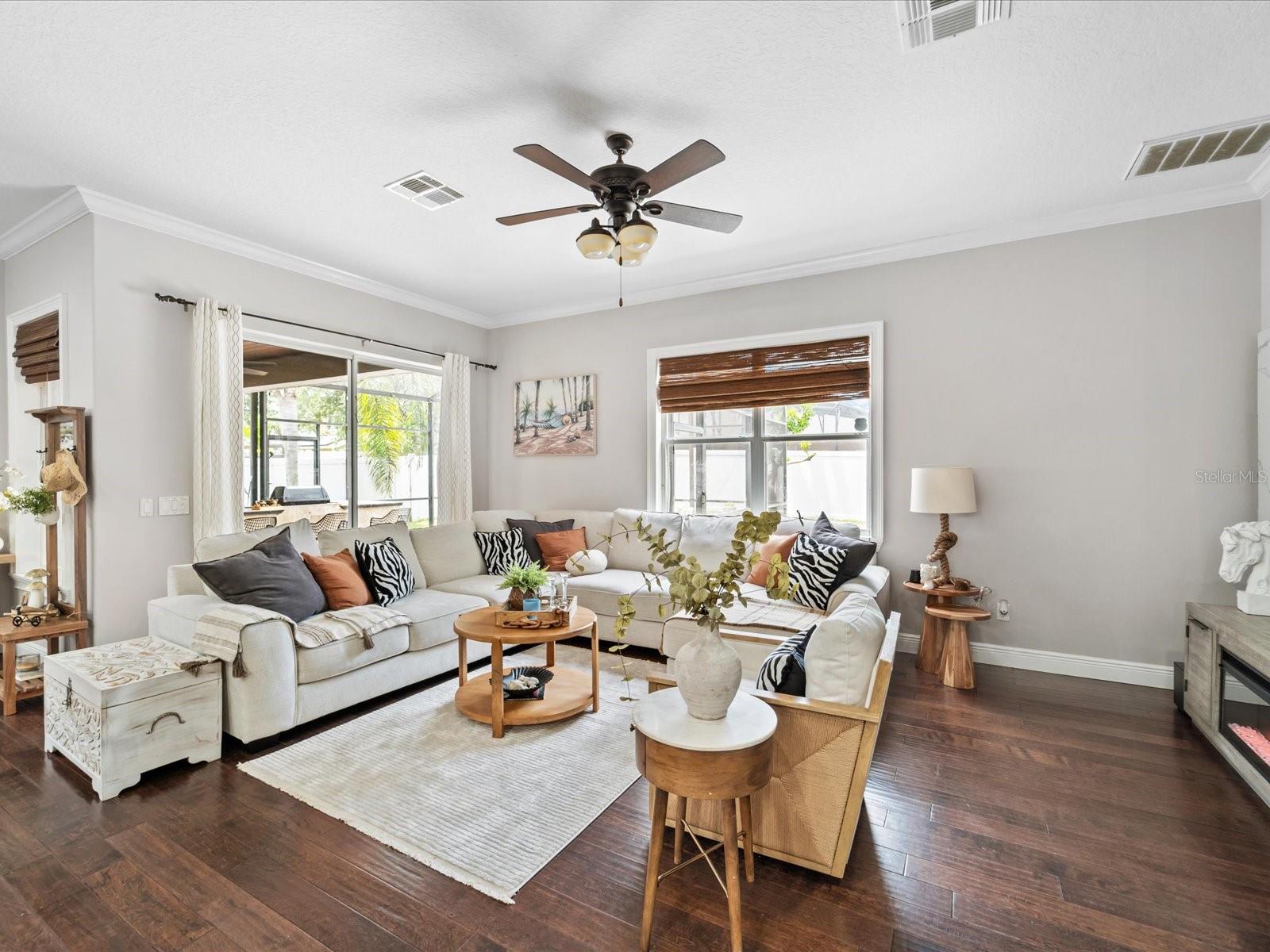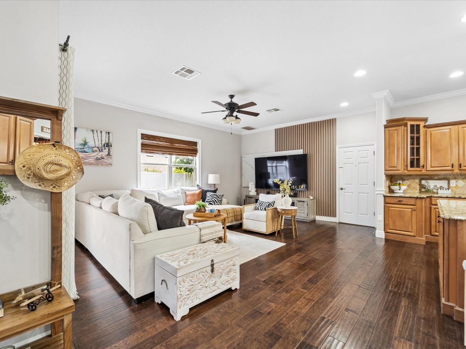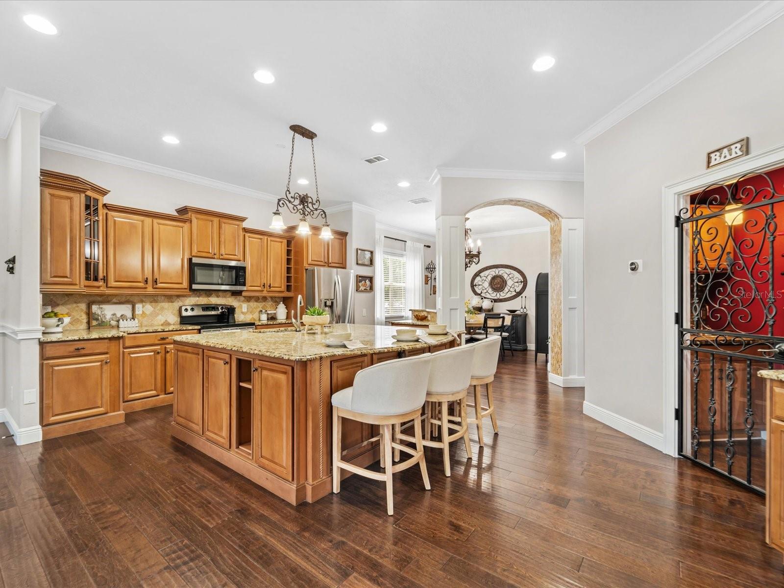 Casa elegante e sofisticada com 5 quartos e 3,5 banheiros em condomínio fechado! Descubra esta deslumbrante casa de 2 andares que oferece 4 quartos no andar de cima, um espaço de escritório flexível (5º quarto) e uma sala bônus. Situada em um condomínio fechado com segurança 24 horas, esta elegante residência possui tetos de 12' com molduras, uma planta espaçosa com 2 salas de jantar (1 pode ser usada como sala de jogos, sala de família, etc.), uma sala de estar, e uma bela cozinha com armários de madeira atualizados, bancadas de granito e eletrodomésticos de aço inoxidável, incluindo geladeira para bebidas. Aproveite o bar molhado e um armário escondido sob as escadas. Do lado de fora, você encontra a linda e enorme varanda com varanda e cozinha ao ar livre, perfeita para entretenimento. No andar de cima, a acolhedora área loft/flex possui lindas estantes embutidas. O 2º andar tem planta dividida, dando a cada um o seu espaço. Você encontrará 4 quartos incluindo uma grande suíte master "ala". O quarto tem tetos elegantes e uma linda área de estar, 2 closets com armários personalizados e o espaçoso banheiro privativo oferece muito espaço no balcão, pia dupla, área de maquiagem, banheira de imersão e chuveiro com box de vidro. Outra suíte tem seu próprio banheiro e 2 quartos compartilham um banheiro Jack and Jill. Convenientemente, a lavanderia está localizada perto dos quartos. Enquanto os sistemas AC duplos garantem conforto em toda a casa. As características adicionais incluem garagem para 3 carros, GERADOR DE CASA INTEIRA DE 10KW, telhado substituído em 2018, piso de madeira no primeiro andar e luxuosas pranchas de vinil no andar de cima e carpete nos 3 quartos extras. Quintal cercado. Comodidades da comunidade: • Clubhouse • Grande piscina e parque infantil • Quadra de vôlei de praia • Campos de futebol e beisebol • Duas quadras de basquete • Duas quadras de tênis e pickleball e uma trilha para caminhada/ciclismo, inclui Wi-Fi. Não perca esta joia sofisticada!