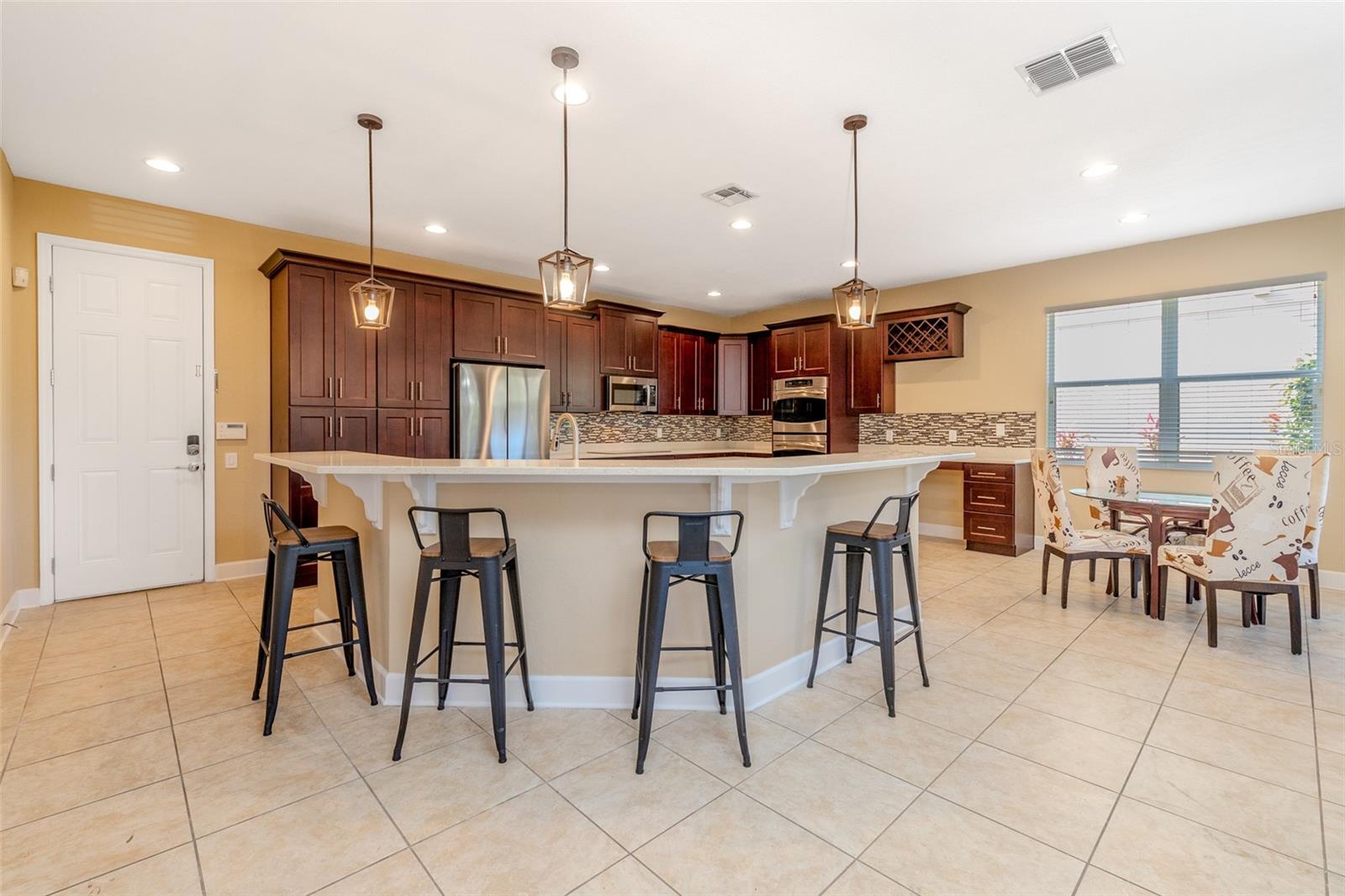 Bem-vindo para casa nesta bela casa unifamiliar em um condomínio fechado, que apresenta 4 quartos e 4 banheiros, otimizando o espaço de estar com uma sensação de conceito aberto. Ao entrar nesta casa, ele oferece a mistura perfeita de conforto e conveniência modernos. Essa propriedade é ideal para o cultivo de famílias e possui tons neutros por toda parte, criando uma atmosfera atemporal e convidativa. Quando você entra na casa, o primeiro andar apresenta um escritório privado recém -adicionado construído em 2024, com um tapete novo, um belo carpete, uma bela área formal da sala de estar/área de jantar que leva a uma sala familiar com uma lareira que mostra pedra cheia do chão ao teto para reuniões familiares. Você será recebido por uma bela cozinha recém -reformada com atualizações com vista para a sala da família. A cozinha bem equipada possui uma ilha com assentos de bar, armários abundantes e espaço de contador e utensílios de aço inoxidável, tornando-se uma brisa. Enquanto seguimos para o segundo andar, somos recebidos com o quarto principal que possui um banheiro privativo, além de três quartos adicionais, um com um banheiro privativo privado. O grande deck da piscina fechado possui um portão de segurança, um jacuzzi aquecido e uma área separada para grelhar e diversão com amigos e familiares. A comunidade apresenta uma piscina e taxas baixas de HOA, enquanto uma nova praça de compras da Publix fica a poucos minutos, tornando as tarefas diárias uma brisa, juntamente com minutos do centro de Windermere. Não perca a oportunidade de possuir esta casa de menta em uma área de crescimento rápido. Agende sua exibição hoje e imagine seu futuro aqui!