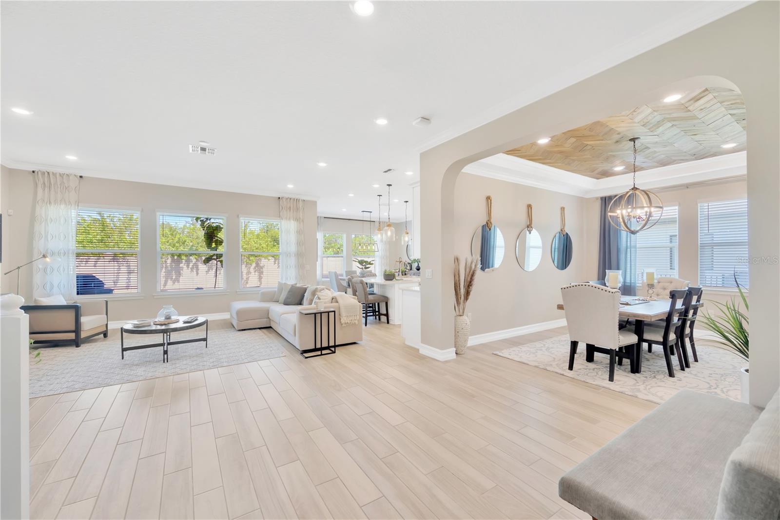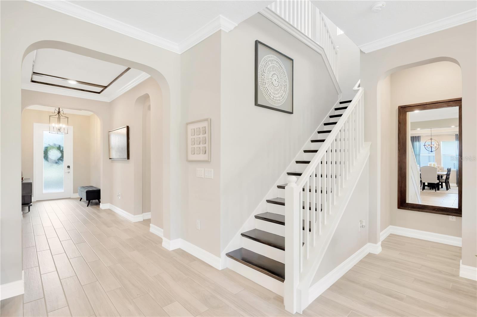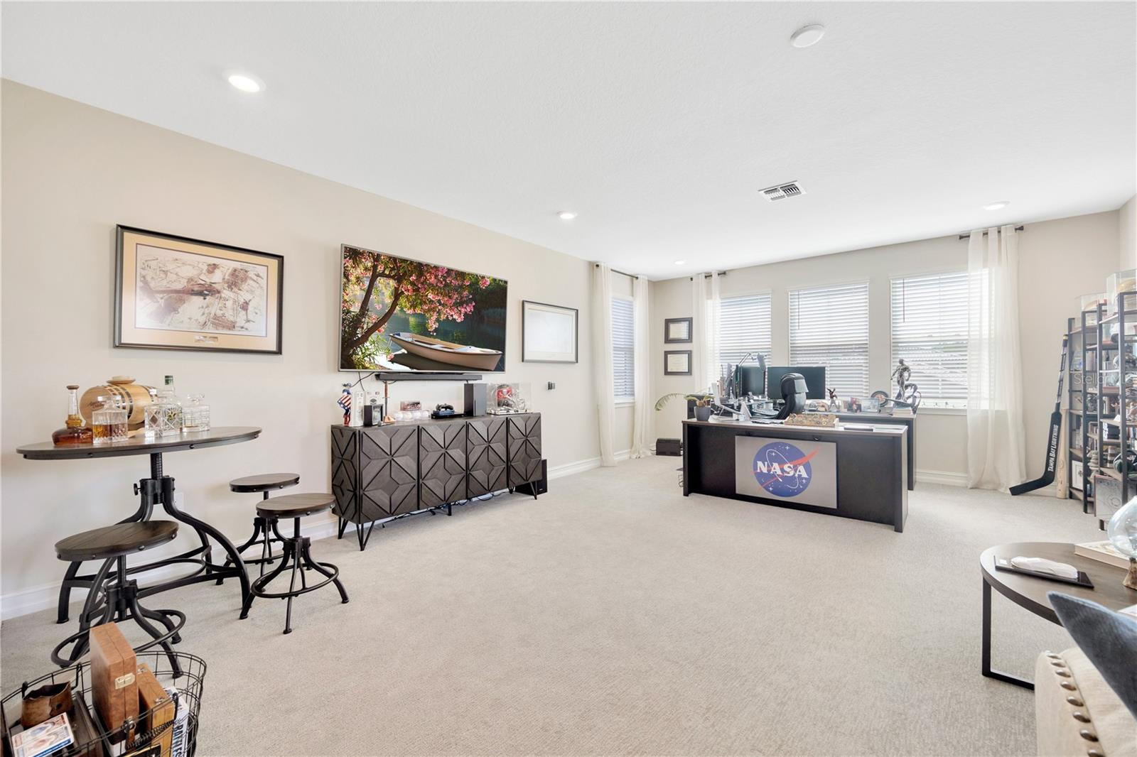 VENDEDORES ALTAMENTE MOTIVADOS! Entre na opulência com a suíte do proprietário no nível principal, com um amplo closet e um banheiro extravagante com uma espaçosa banheira de jardim, box amplo e pias duplas. O coração desta casa é a ampla sala familiar, com localização central e perfeita para reuniões familiares ou receber convidados. A cozinha gourmet, completa com uma ilha grande e amplo balcão, oferece acesso direto à varanda e às áreas de jantar formais. A cozinha apresenta armários de sobreposição completa Trevino Cali Alpine de 42", aprimorados com sancas e trilhos leves, complementados por ferragens de níquel acetinado. As bancadas de quartzo polido Silestone Calcutta Gold combinam elegantemente com eletrodomésticos GE® de aço inoxidável. O visual é completado com 12x24 Pocono Ladrilho cerâmico de tábuas de madeira de carvalho colocado em um padrão de deslocamento de 1/3. No andar de cima, descubra requintados trabalhos decorativos em madeira adornando as paredes, juntamente com trabalhos artesanais intrincados em todo o corredor e quarto. Delicie-se com o impressionante padrão de madeira em espinha da sala de jantar que enfeita o teto. Uma sala bônus adicional no andar de cima oferece versatilidade e espaço de armazenamento extra para acomodar as necessidades da sua família. Aprimorada com comodidades adicionais, como amaciante de água e carpete macio, esta casa exala charme e conforto. Além disso, aproveite a conveniência de unidades de lavagem e secagem atualizadas. Com garagem dividida para três carros, dispõe de amplo espaço para estacionamento e arrecadação. Situada na exclusiva comunidade Tarramor, esta residência oferece acesso conveniente a comodidades, escolas e estradas principais. As bem avaliadas Martinez Middle School e Steinbrenner High School estão próximas, garantindo uma excelente educação para sua família. Os moradores de Tarramor apreciam as comodidades em estilo resort, incluindo piscina, academia e clube. Esta casa é o epítome da vida luxuosa no distrito escolar de classe azul de Odessa. Não perca esta oportunidade de fazer do Tarramor a sua casa. Agende hoje mesmo seu tour privado!