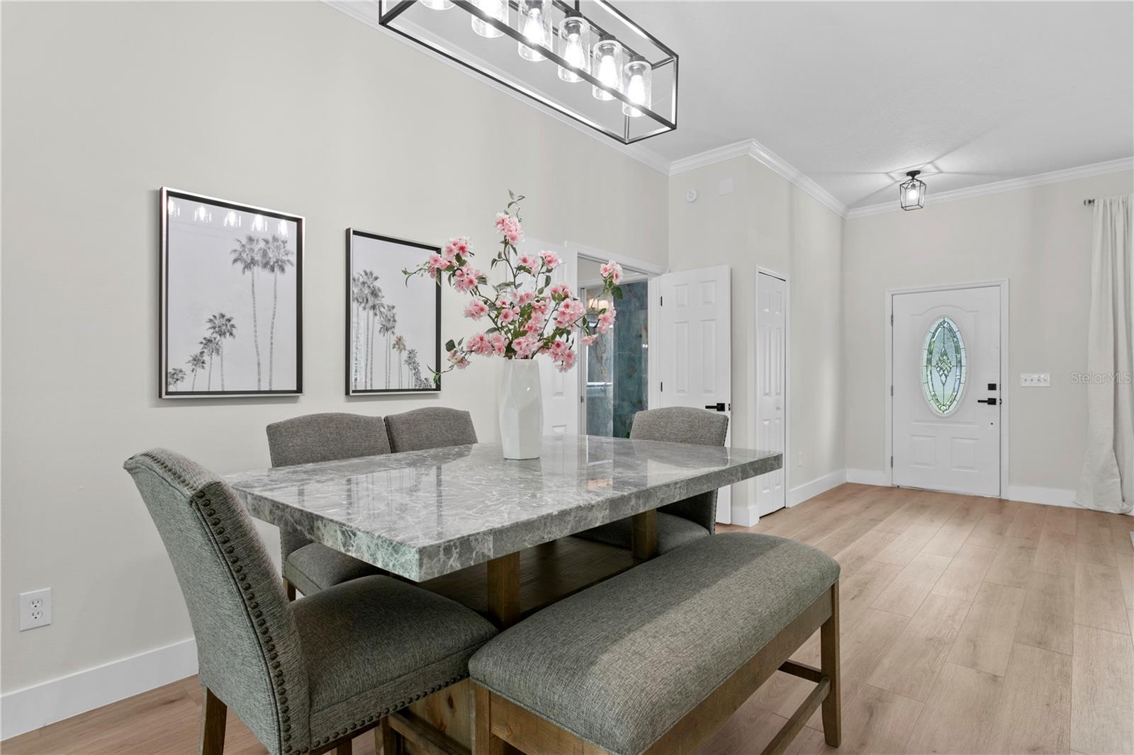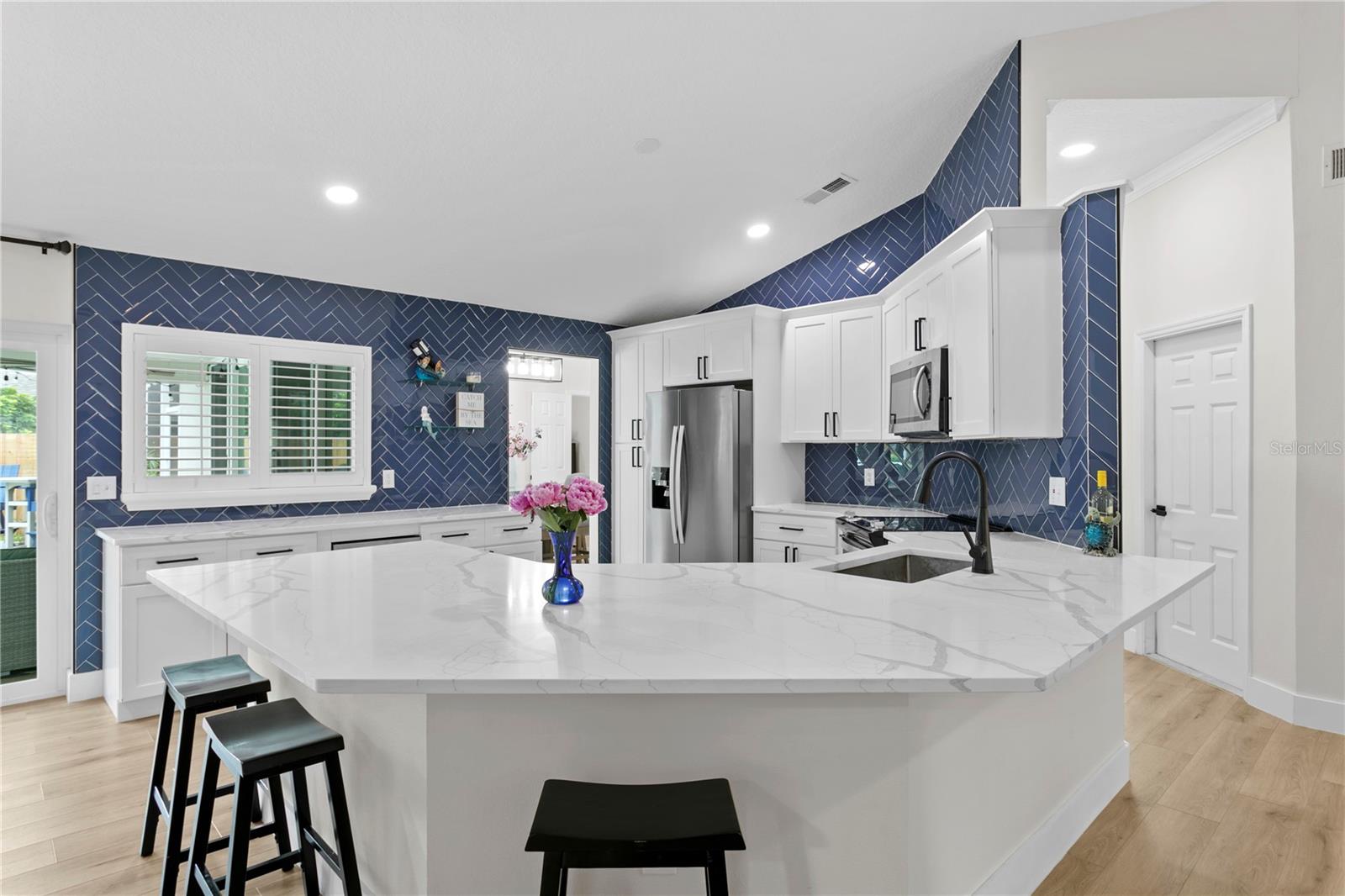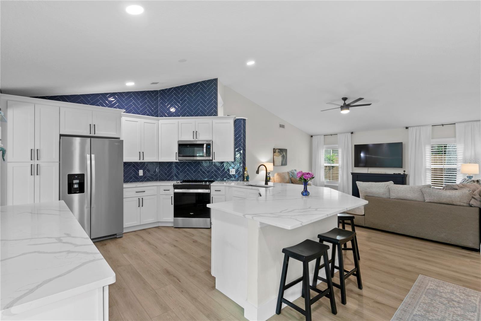 Esta casa com piscina Keystone Crossings de um andar, 4 quartos e 2 banheiros foi lindamente reformada, incluindo novas JANELAS e PORTAS DE IMPACTO DE FURACÃO! A sala de estar e a sala de jantar abertas têm muita luz natural. A cozinha tem armários shaker brancos, balcões de quartzo Calcutá, balcão para café da manhã, adega refrigerada e área para refeições e se abre para uma sala familiar com lareira elétrica e teto abobadado. A suíte principal tem um closet espaçoso e um banheiro sofisticado tipo spa com lindos azulejos do chão ao teto, pia dupla e banheira independente. Do lado de fora, a varanda coberta e a piscina com tela têm vista para um grande quintal paisagístico totalmente cercado. Esta casa também tem NOVAS persianas, 2021 AC, novo AQUECEDOR DE ÁGUA e uma BOMBA E MOTOR DE PISCINA mais recentes. A comunidade Keystone Crossings possui duas quadras de tênis, um pavilhão, playground, quadra de basquete e campo de futebol e está convenientemente localizada perto de rodovias, Aeroporto Internacional de Tampa, centro de Tampa e praias locais e localizada na ZONA DE INUNDAÇÃO X. Ligue hoje mesmo para obter o seu exibição privada!