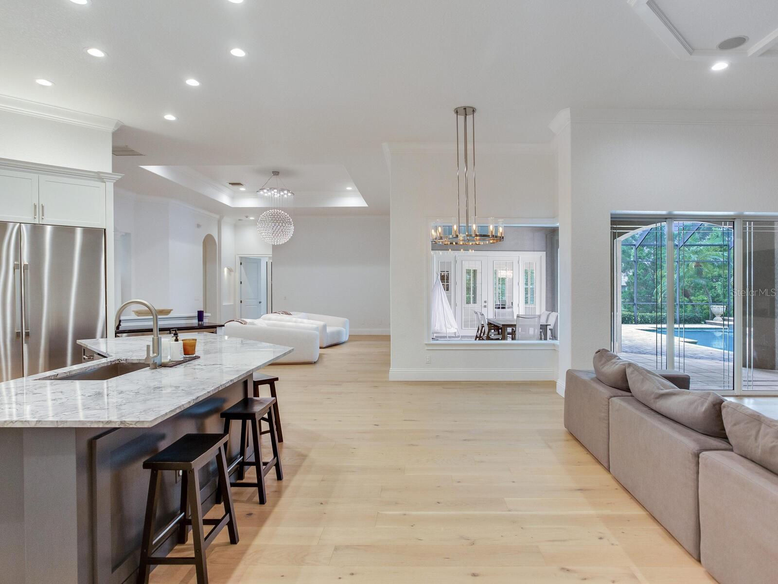 Situada em um terreno de 1 acre no prestigiado condomínio fechado de Northbridge, em Lake Pretty, esta propriedade magnificamente atualizada exala elegância e sofisticação. À medida que você se aproxima da propriedade, a impressionante calçada circular de tijolos e a passarela levam a um grande pórtico imponente emoldurado por colunas majestosas. Passe pela porta da frente até um grande hall de entrada, onde um teto alto de 6 metros e luminárias cintilantes chamam imediatamente sua atenção. À esquerda, um escritório dedicado apresenta sancas, lambris e corrimão de cadeira, oferecendo um espaço de trabalho refinado. À direita, a sala de jantar formal possui um teto de bandeja com sancas iluminadas e uma requintada luminária Restoration Hardware. A área de estar formal é um verdadeiro empecilho, com uma luminária globo cintilante e quatro portas francesas que se abrem para um pátio nos fundos / oásis de piscina. O lindo piso de madeira flui perfeitamente pelas principais áreas de estar, complementado por sancas e venezianas. A enorme cozinha gourmet é o sonho de qualquer chef, com armários de madeira de 42 polegadas com sancas, fogão de indução, adega refrigerada e eletrodomésticos de aço inoxidável da Dacor. Duas ilhas oferecem amplo espaço de trabalho, uma servindo como balcão de café da manhã e a outra abrigando uma pia de vegetais. Bancadas de granito e backsplash completam o visual, enquanto uma despensa oferece muito espaço de armazenamento. A grande lavanderia/utilitária se conecta convenientemente à cozinha. A cozinha flui facilmente para a grande sala, onde uma lareira a gás revestida de granito do chão ao teto combinando com a cozinha serve como um ponto focal deslumbrante. A ampla suíte do proprietário oferece dois closets de tamanho generoso e um luxuoso banheiro privativo moderno com banheira independente, um chuveiro enorme e uma pia dupla com espelhos que se estendem até o teto, todos iluminados por luminárias elegantes. Uma sala bônus dentro da suíte do proprietário oferece espaço versátil para uma sala de ginástica, armário adicional ou sala segura - deixe sua imaginação guiá-lo. Cada um dos três quartos secundários possui closets e banheiros privativos, garantindo conforto e privacidade para familiares e convidados. A gigantesca sala de bônus é perfeita para entusiastas de esportes, atualmente equipada com quatro TVs montadas na parede para assistir a vários jogos simultaneamente. As portas francesas levam ao oásis do quintal, completo com um deck de tijolos, uma cozinha externa com churrasqueira e exaustor, uma piscina com spa e amplo pátio coberto - ideal para entretenimento. O paisagismo maduro proporciona privacidade, criando um retiro sereno. A garagem para quatro carros é o sonho de qualquer entusiasta de automóveis, oferecendo espaço extra que pode ser aproveitado para uma academia doméstica. Os residentes de Northbridge at Lake Pretty desfrutam de acesso exclusivo ao Lake Pretty, perfeito para lançar caiaques, canoas ou pranchas de remo. Este enclave privado no coração de Odessa é muito procurado. Agende hoje mesmo o seu tour privado para experimentar a elegância e sofisticação incomparáveis desta magnífica propriedade.