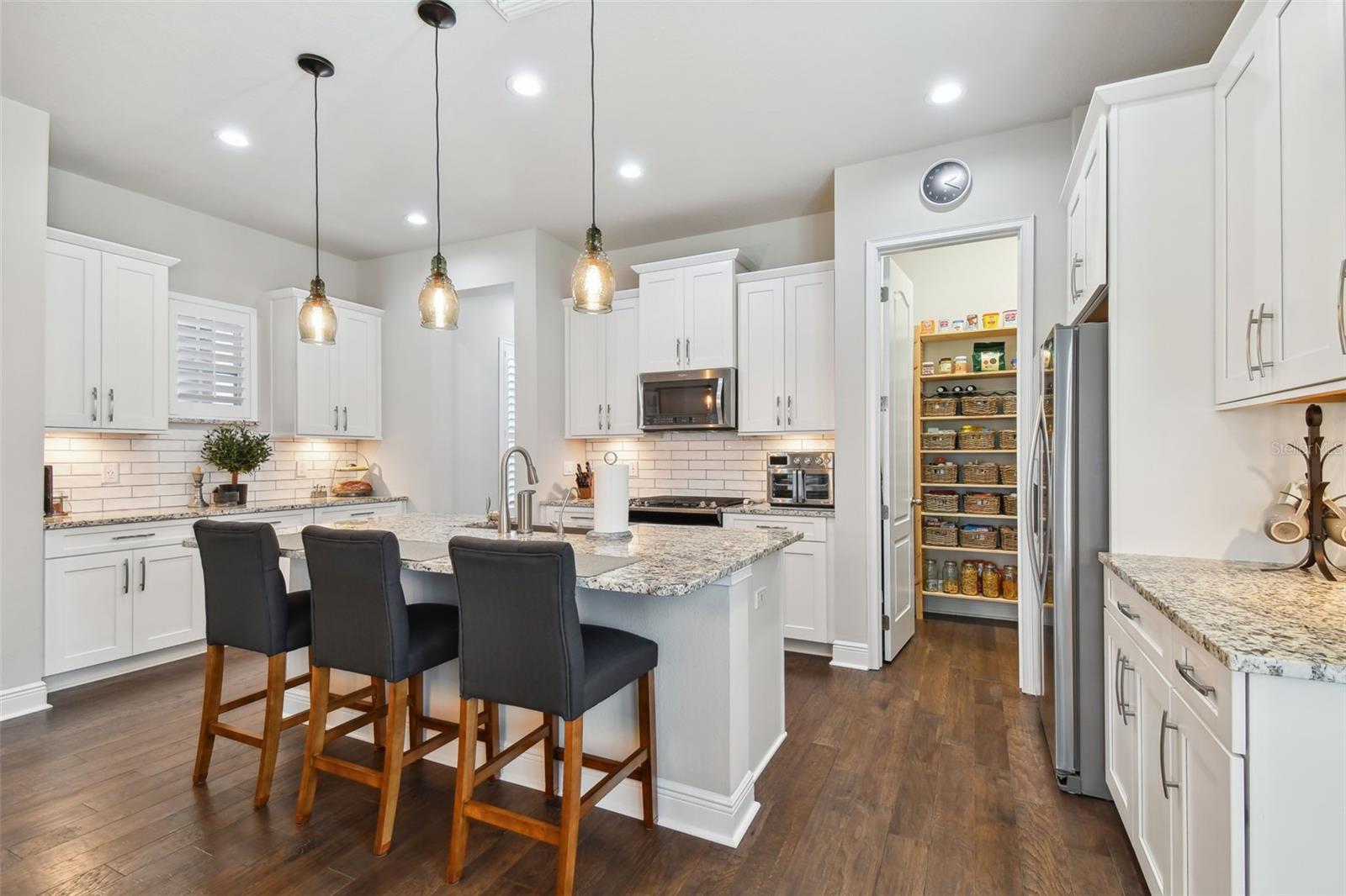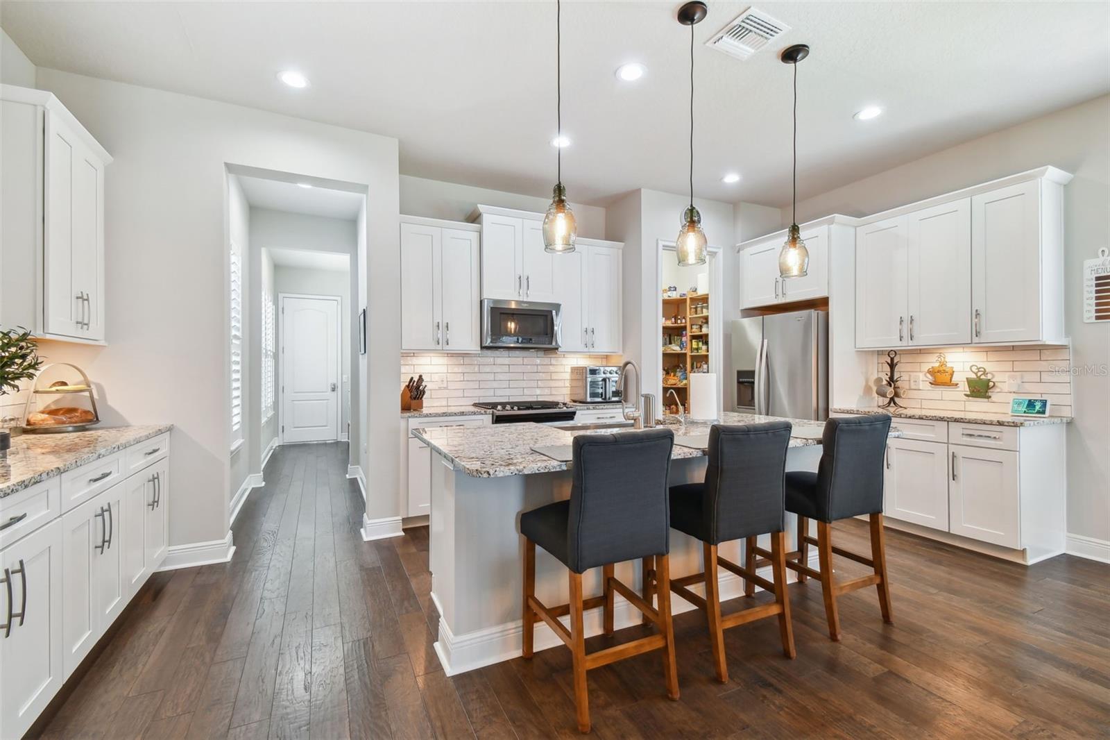 Criada por Ashton Woods, a Coquina II é uma residência requintada de um andar com 4 quartos, 3,5 banheiros e garagem para 3 carros. Situada no final de uma rua sem saída com um quintal totalmente cercado, esta casa é sinônimo de luxo e conforto. Conhecidas por seus designs com eficiência energética, as casas de Ashton Woods ajudam você a ter um estilo de vida mais saudável e silencioso, ao mesmo tempo que economizam milhares de dólares em contas de serviços públicos. Esta casa oferece um layout de conceito aberto ideal para entretenimento, complementado por recursos de casa inteligente que permitem controlar vários aspectos para o máximo conforto. A espaçosa cozinha possui bancadas de granito, fogão a gás, uma grande ilha central, sistema de osmose reversa, armários de design de 42", despensa, amplo espaço de armário e área de jantar, tudo fluindo perfeitamente para a família acolhedora. sala. A privacidade é fundamental na planta do quarto dividido. A suíte principal, localizada na parte de trás da casa, possui banheiro privativo com box amplo, closet grande e armazenamento embutido personalizado. Um retiro para hóspedes com banheiro privativo está situado ao lado da cozinha, oferecendo bancadas de quartzo e uma combinação de banheira/chuveiro, perfeito para hóspedes ou um escritório doméstico. Dois quartos adicionais, conectados por um banheiro Jack-n-Jill com bancadas de quartzo, pias duplas e uma combinação de banheira/chuveiro, oferecem espaços versáteis para família ou convidados. As garagens para 3 carros, com acabamento em piso epóxi, oferecem amplo espaço para veículos e arrumos. Atualizações recentes, incluindo pedra cultivada, pintura externa e painéis com detalhes Cypress, melhoram o apelo estético da casa, enquanto os painéis contra furacões garantem a segurança. O quintal enorme, cercado por uma cerca de vinil branco, oferece uma tela em branco para sua criatividade. Há amplo espaço para adicionar uma piscina ou criar seu oásis privado (pré-fiação elétrica e saída de gás para um aquecedor de piscina e/ou spa). Esta casa foi projetada com uma série de atualizações premium para aumentar o conforto, a conveniência e a eficiência. Os principais recursos incluem: piso de madeira raspada à mão de 5 polegadas de largura, portas de núcleo sólido, tomadas de férias, controlador de irrigação residencial inteligente, abridor de porta de garagem residencial inteligente com acionamento por correia, tomadas inteligentes com hubs de rede e pré-encanamento para uma pia na lavanderia e Garagem. Situada em um dos distritos escolares mais bem avaliados, esta casa oferece acesso conveniente às principais rodovias e fica a menos de 20 minutos do Aeroporto Internacional de Tampa. O Asturia Amenity Center enriquece ainda mais o seu estilo de vida com um clubhouse, um centro de fitness totalmente equipado e uma piscina deslumbrante com uma entrada em estilo de praia para natação. Explore a beleza da natureza através das inúmeras trilhas para caminhada que cercam a comunidade. Quer procure tranquilidade ou entretenimento, as Astúrias oferecem-lhe tudo. Abrace o estilo de vida da Flórida e torne cada momento memorável nesta casa excepcional. Bem-vindo a casa nas Astúrias!