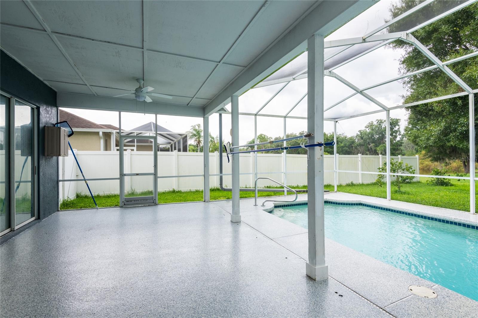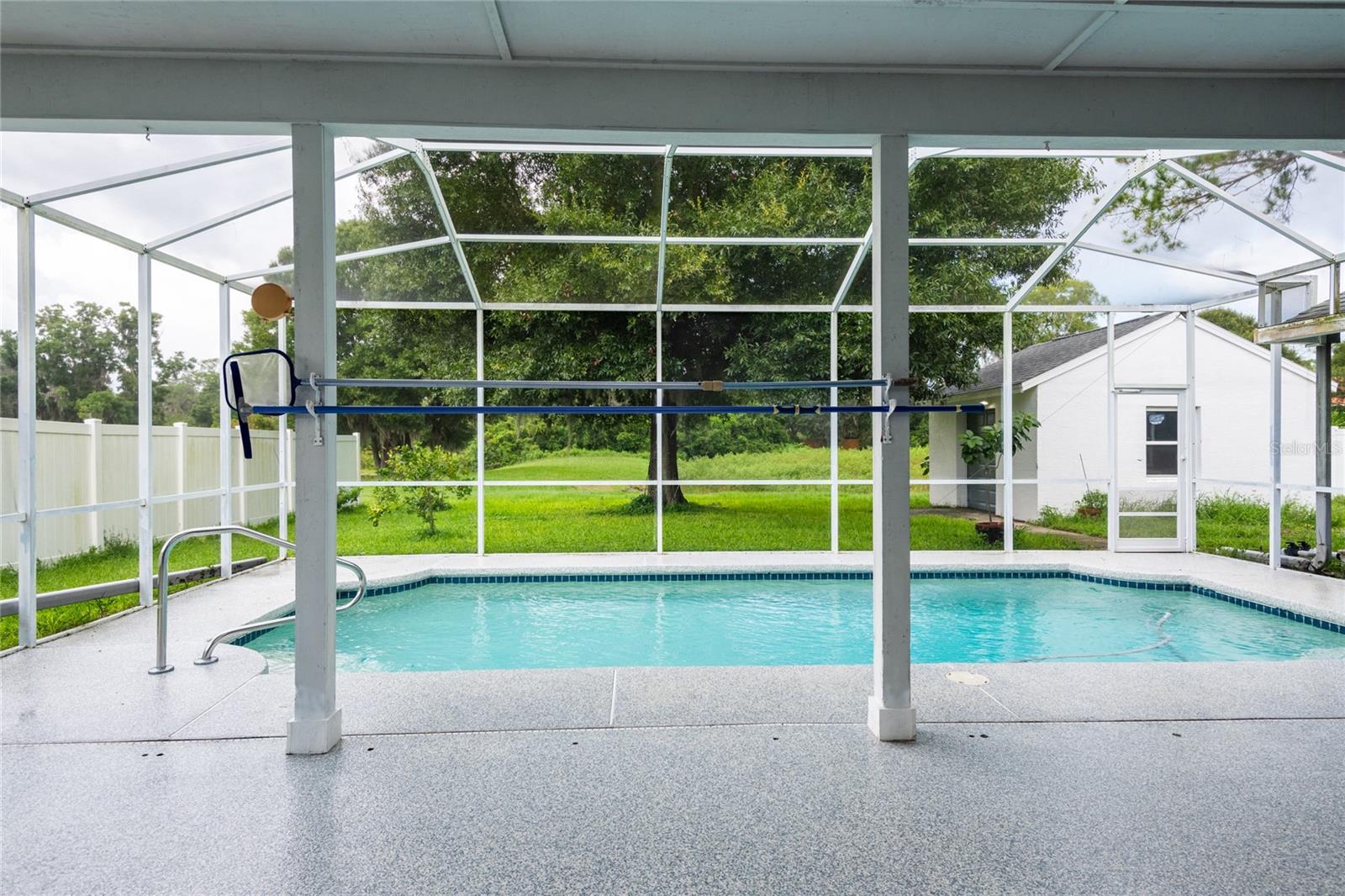 DE VOLTA AO MERCADO - O vendedor converteu a garagem que antes era usada como espaço de escritório em uma garagem funcional para dois carros! Não perca esta deslumbrante casa de 5 quartos e 3 banheiros com piscina de água salgada, localizada no muito procurado Distrito Escolar de Steinbrenner! Esta antiga casa modelo pronta para morar possui 2.521 pés quadrados, além de um oásis de piscina ao ar livre com vista para o lago e para a conservação, tem tudo que você precisa para viver sua melhor vida. Ao entrar na casa, você será recebido por salas de estar e jantar formais. A casa possui tetos altos e grandes janelas que proporcionam muita luz natural. A cozinha é o sonho de um chef, completa com bancada de granito, cooktop embutido, forno embutido e eletrodomésticos de aço inoxidável, todos com menos de 3 anos, balcão de receitas, balcão para café da manhã, ilha e muito espaço no armário para armazenamento . A cozinha se abre para a sala de jantar e família que possui lareira a lenha. Os quartos da casa são espaçosos e confortáveis, com bastante espaço no armário para arrumação. Quando chegar a hora de se retirar para a noite, você vai adorar a privacidade e a tranquilidade da suíte principal com vista para a piscina e o quintal e tem um luxuoso banheiro principal com banheira de imersão, box amplo, pia dupla e é para deficientes físicos. acessível. Três quartos adicionais e dois banheiros atualizados oferecem muito espaço para familiares e convidados. Um dos destaques desta casa é o seu oásis ao ar livre completo com piscina com aquecimento solar. Dê um mergulho na piscina cintilante, relaxe ao sol no deck ou relaxe à sombra sob o amplo pátio coberto. É o local perfeito para relaxar após um longo dia. A área da piscina proporciona um ambiente sereno e privado. Para armazenamento adicional, há um edifício permanente independente no quintal. A propriedade estava alta e seca durante Helene e Milton sem problemas! Características adicionais: NOVO TELHADO, NOVA pintura interna e externa, NOVA bomba de piscina, NOVO aquecedor de água quente, janelas com menos de 5 anos e ar condicionado com menos de 4 anos. A localização do imóvel é perfeita para quem deseja sossego e tranquilidade, com fácil acesso a todas as conveniências da cidade.