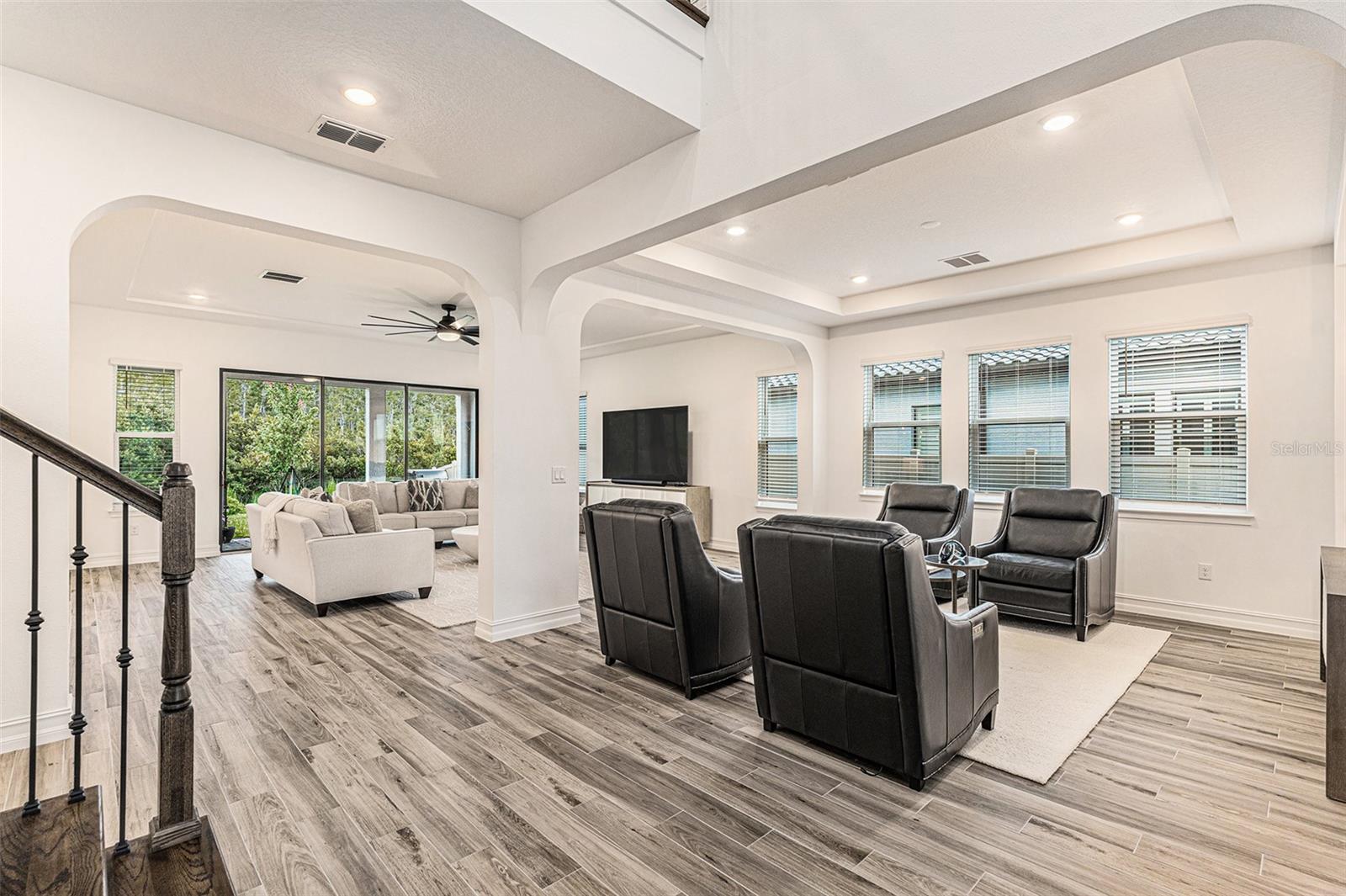 Bem-vindo a este requintado Lennar Mendocino 2023 na comunidade Tarramor de Odessa, com cinco quartos espaçosos e uma entrada deslumbrante com portas duplas impressionantes que levam você a um hall de entrada alto de dois andares. A casa está totalmente equipada com um gerador Generac para toda a casa, proporcionando tranquilidade em todas as estações. As atualizações adicionais incluem armários personalizados em todos os quartos, uma despensa generosa e um lustre chique na área de jantar. Passe pelas portas francesas onde a luz natural inunda a sala, que possui elegantes tetos em forma de bandeja, criando um ambiente arejado. Esta joia espaçosa foi cuidadosamente projetada com toques sofisticados e ampla luz natural por toda parte. A suíte de hóspedes no primeiro andar com acesso privativo à varanda oferece acomodações ideais para visitantes ou residências multigeracionais, garantindo conforto e privacidade. Desperte o chef que há em você em uma cozinha projetada com eletrodomésticos GE Profile e geladeira Jennair para inspirar, com fogão a gás premium, fornos duplos e uma ilha generosa que se conecta perfeitamente à sala familiar e à área de jantar casual. Uma sala de jantar formal com tetos elegantes oferece espaço adicional para reuniões ou uso flexível. Saia para o seu amplo quintal, o sonho de qualquer artista, com espaço para reuniões familiares, churrascos e relaxamento. No andar de cima, você encontrará uma generosa área de bônus e loft - com acesso à varanda - pronto para receber noites de cinema, dias de jogos ou reuniões casuais. Cada um dos 4 quartos do segundo andar possui banheiro privativo e cada closet com sistema de organização personalizado. Retire-se para a luxuosa Suíte Primária com acesso à varanda – um local sereno para saudar o dia com um café da manhã! A suíte apresenta um amplo closet e um banheiro inspirado em spa com banheira de imersão e um box amplo incrivelmente espaçoso para a melhor experiência de relaxamento. A lavanderia cuidadosamente projetada inclui pia e armazenamento adicional, garantindo funcionalidade em todos os cantos. O vendedor tinha planos para uma piscina futura - entre em contato com o agente para obter opções potenciais para o espaço. Aproveite o acesso exclusivo às comodidades em estilo resort do Tarramor, incluindo piscina, clube, academia e áreas de atividades - tudo projetado para complementar seu estilo de vida luxuoso. Com acesso rápido à Veterans Expressway, escolas de primeira linha, lojas e restaurantes, esta residência oferece o equilíbrio perfeito entre tranquilidade e conveniência. Não perca a oportunidade de conhecer em primeira mão esta casa excepcional. Agende hoje mesmo sua exibição privada e descubra a vida de conforto, elegância e facilidade que espera por você!