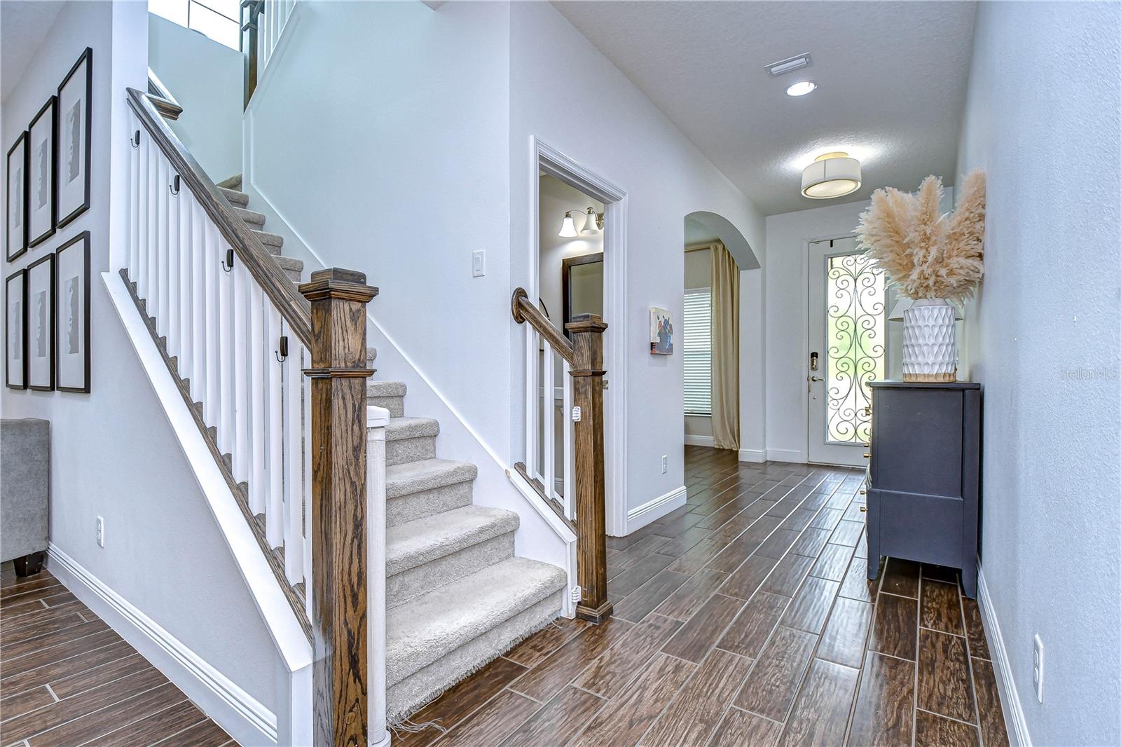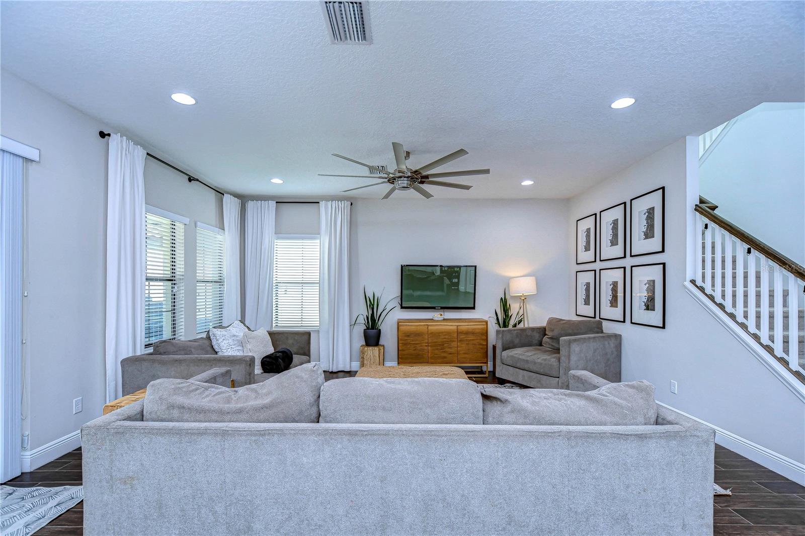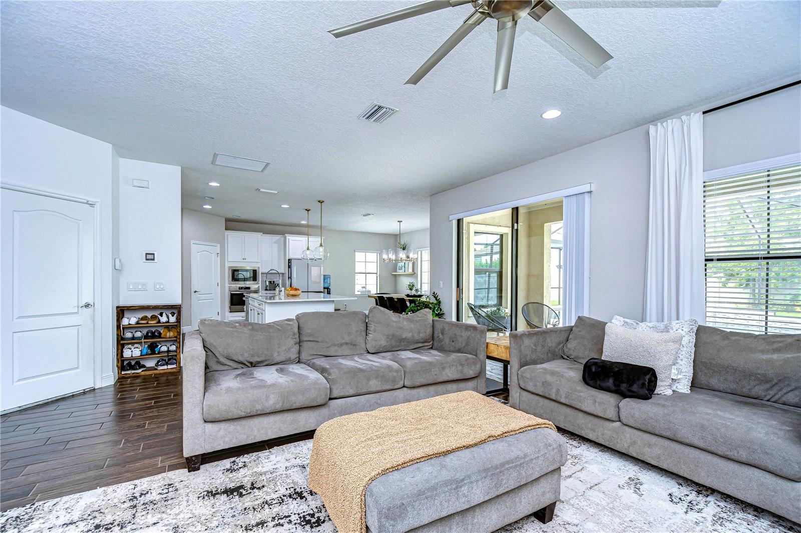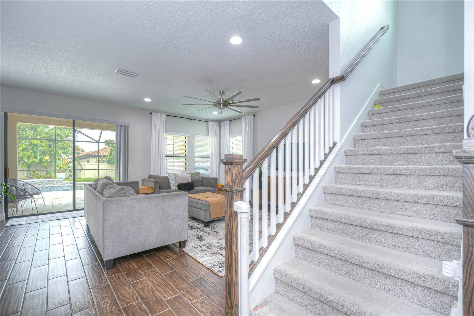 Bem-vindo a esta bela revenda Homes by Westbay, uma planta baixa de martim-pescador que possui uma grande cozinha, piscina, 4 quartos e 2 banheiros e meio. Esta casa é perfeita para famílias e quem trabalha em casa. O primeiro andar tem uma sala de jantar formal ou escritório que fica distante da grande cozinha e da grande sala. A cozinha é incrível para a família que gosta de se reunir e se divertir com uma enorme ilha de quartzo, forno embutido e cooktop a gás. A grande sala e os controles deslizantes incluem o espaço principal descendo as escadas e oferecem uma vista perfeita para a linda piscina com azulejos de travertino no quintal. No andar de cima você entra na sala bônus, que é central para todos os quartos e oferece uma excelente proteção para privacidade e espaço. Os luxuosos pisos de vinil no andar de cima são ideais não só para a estética, mas para manter um espaço limpo e arrumado. O quarto principal é um oásis de espaço e o closet personalizado ideal com embutidos personalizados. O banheiro principal tem alguns toques adicionais, como balcões de quartzo e box amplo sem moldura. O sistema de ar condicionado atualizado é um bônus adicional! Starkey Ranch é uma das principais comunidades da região e tem nossa própria escola K-8, parques, playgrounds, trilhas, piscinas, nosso próprio Publix, lavanderias, salões de manicure, vários restaurantes e boutiques! Não perca a oportunidade de tornar sua incrível casa de 4 quartos e piscina!
