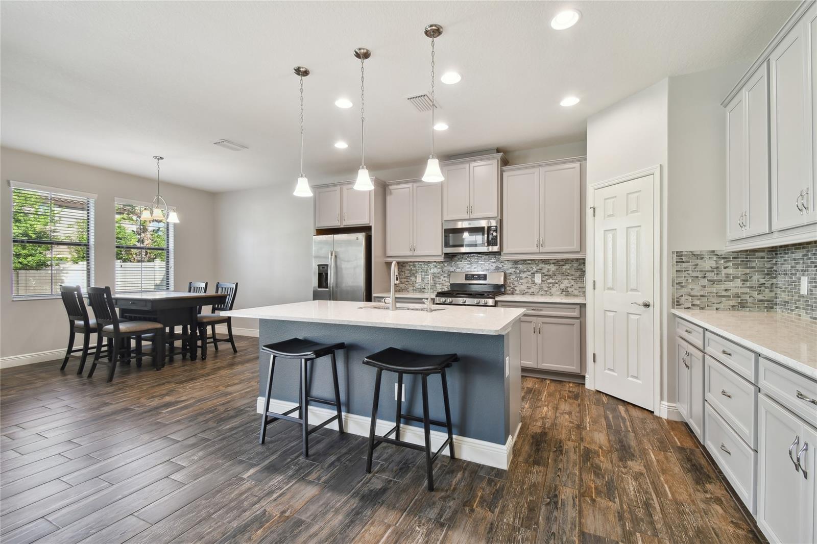 Descubra esta casa deslumbrante em 13083 Burns Dr, Odessa, FL, na altamente desejável comunidade Starkey Ranch. Construída em 2018, esta casa bem conservada oferece 4 quartos, 2,5 banheiros, uma sala bônus e garagem para dois carros. A sala de jantar formal fica à sua direita, e o corredor leva você além de um lavabo até uma espaçosa sala grande com um layout de conceito aberto, perfeito para entretenimento. A cozinha está equipada com eletrodomésticos GE de aço inoxidável, armários cinza, bancadas de quartzo, backsplash de vidro e luminárias Moen. Um lindo piso de cerâmica percorre todo o nível principal. No andar de cima, a suíte principal inclui um banheiro amplo com pia dupla, box amplo, banheira de jardim e closet. Três quartos adicionais, uma sala bônus e uma lavanderia conveniente no andar de cima completam o segundo andar. A casa apresenta atualizações modernas, incluindo sistema de osmose reversa Kinetico, termostato inteligente e sistema de segurança. A propriedade também oferece estacionamento adicional em frente e fica a poucos passos de um parque e da piscina comunitária. Starkey Ranch oferece 32 quilômetros de trilhas, 150 acres de parques e escolas próximas de primeira linha. Seja rápido para tornar esta casa excepcional sua!