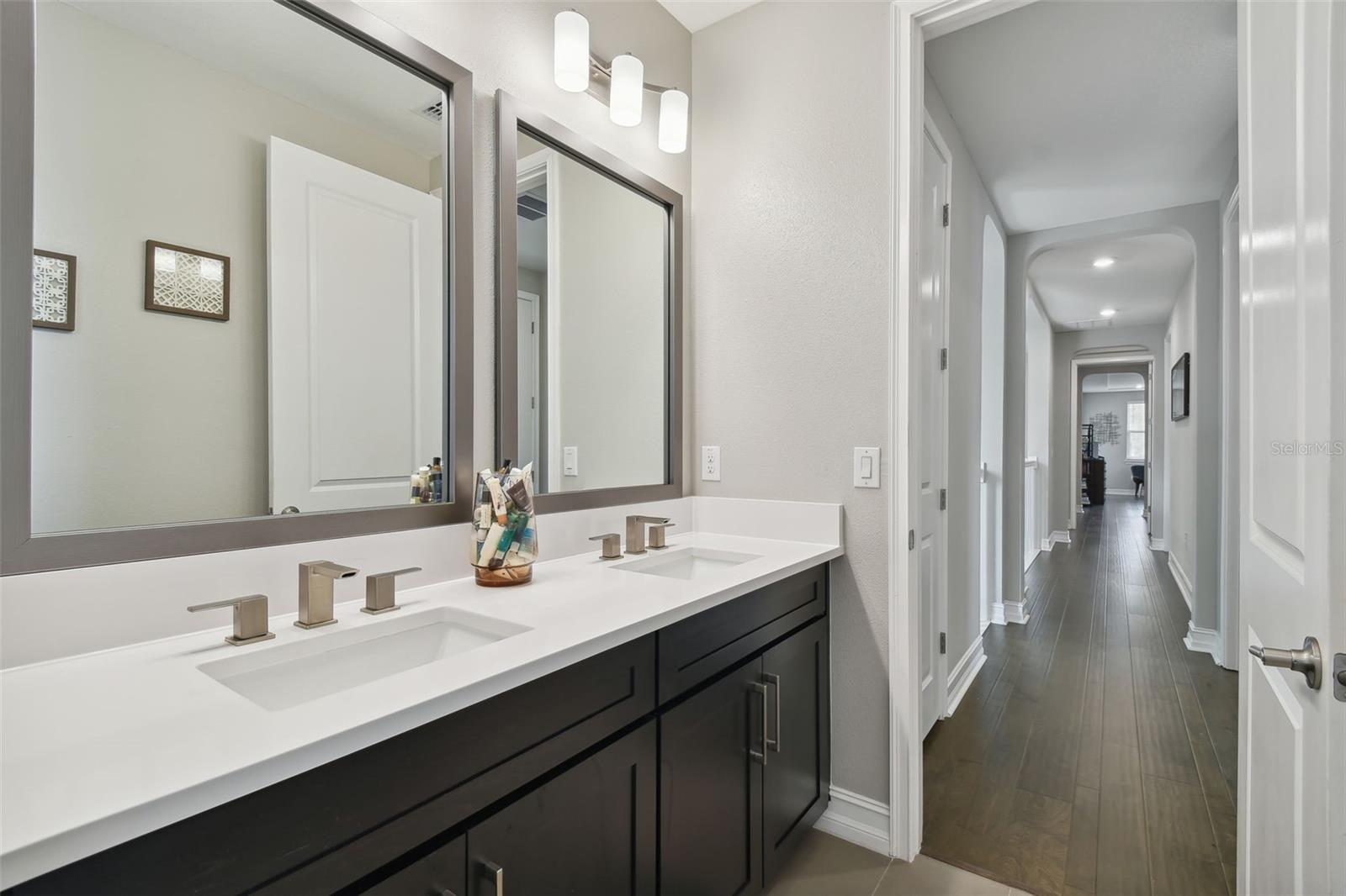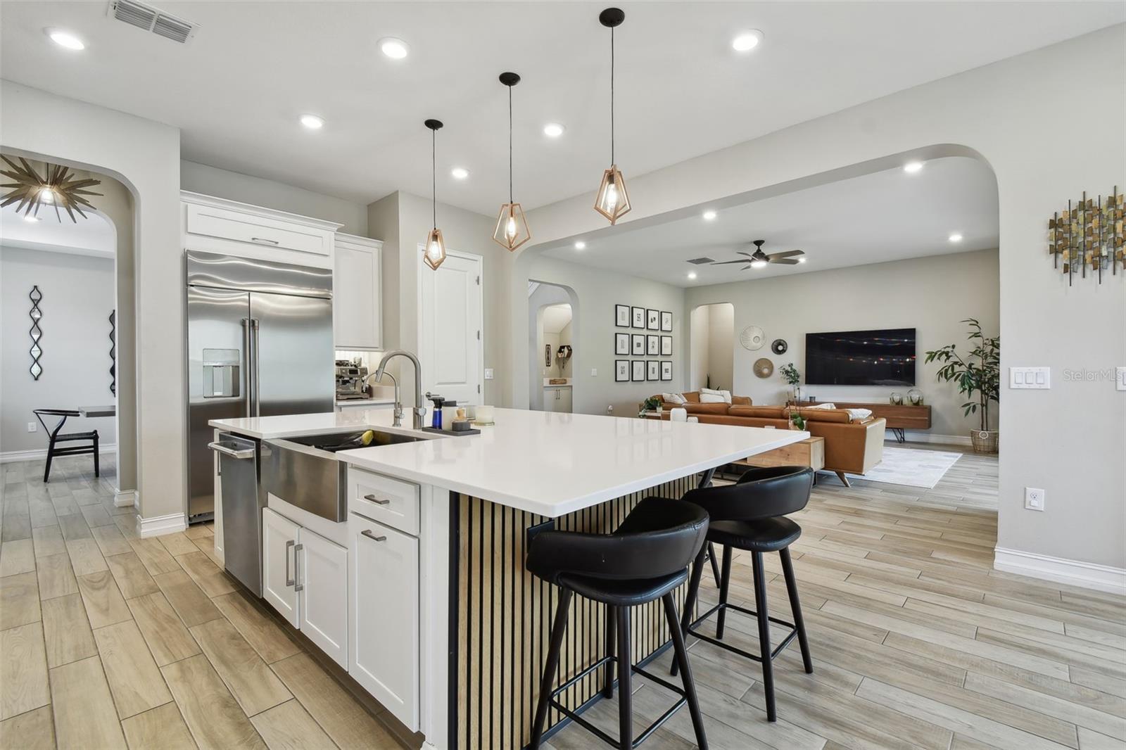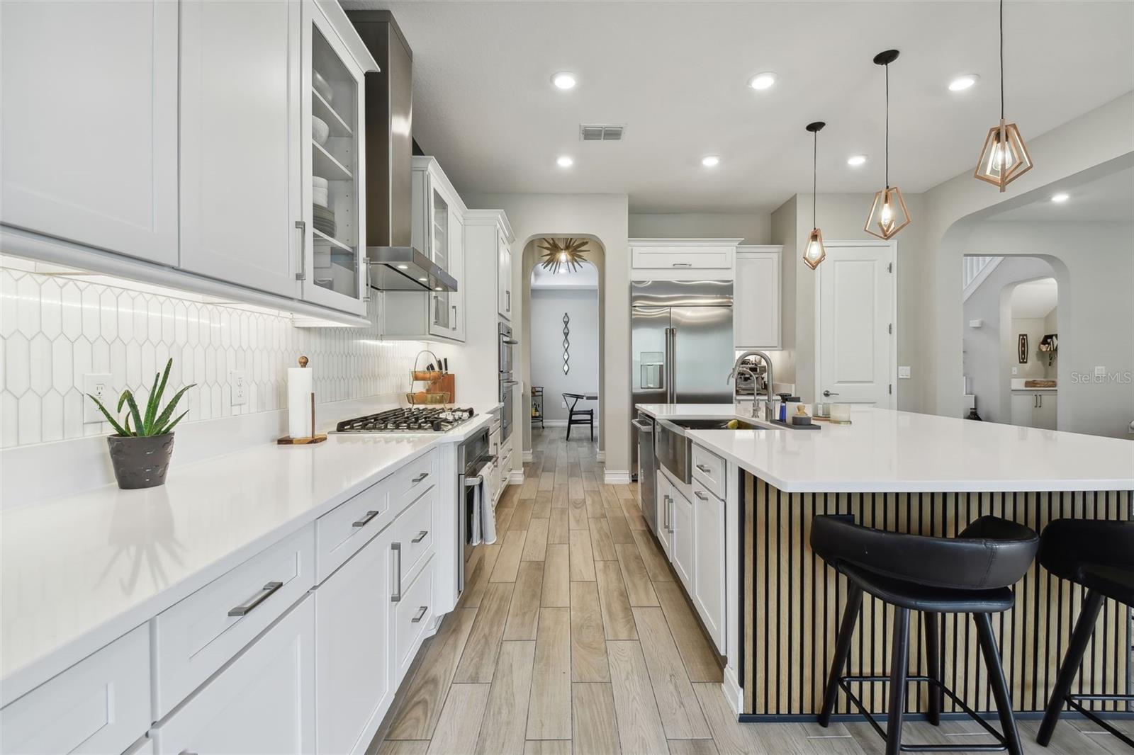 Bem-vindo à sua casa de luxo na procurada comunidade TARRAMOR! Esta beleza de 5 quartos, 4 banheiros e garagem para 3 carros tem vários espaços de estar e flexíveis. Prepare-se para se surpreender com esta casa com luz natural abundante que apresenta características únicas de design moderno, decorada com acabamentos de luxo por toda parte! Entre no magnífico Foyer que lhe dá uma visão dos tetos super altos da catedral, uma escada envolvente e a planta aberta! Esta residência imaculada oferece apelo incomparável com paisagismo fresco (novembro de 2024) e uma entrada de automóveis pavimentada com tijolos, preparando o cenário para uma vida de luxo no seu melhor. Abrangendo o amplo espaço de estar, esta casa deslumbrante tem piso de cerâmica de tábuas de madeira que enfeitam as principais áreas de estar, incluindo o bem iluminado escritório/escritório/sala flexível com prateleiras PERSONALIZADAS e portas francesas, uma sala de estar/jantar/lounge recreativa formal, portas em arco decorativas. O jogo começa quando você entra na enorme área de cozinha gourmet, sala de estar e jantar! Esta cozinha GOURMET cuidadosamente planejada é uma delícia para o chef, apresentando um fogão a gás Café de 5 bocas com sistema de ventilação de exaustor, armários de madeira maciça com frentes de vidro personalizadas, uma ilha central de grandes dimensões com balcões de quartzo atualizados, paredes de ripas de madeira personalizadas sob a ilha, azulejos backsplash atualizados , lindos armários com portas de vidro em abundância! Os vendedores não pouparam despesas quando escolheram os eletrodomésticos da marca CAFÉ de última geração, incluindo também um forno duplo embutido - que se converte em 3 fornos, o refrigerador Sub-Zero que vai deixar você querendo mais, que é exatamente o que você ganha ao virar a esquina na copa do mordomo que está bem equipada com a adega refrigerada que com certeza irá agradar ao apreciador de vinhos que existe em você! A área de jantar de grandes dimensões tem vista para a reserva serena e tem uma parede e prateleiras personalizadas. Múltiplas entradas através de portas deslizantes de vidro duplas levam à varanda coberta, onde você pode desfrutar de sua bebida favorita enquanto aprecia a conservação tranquila. O primeiro andar alberga ainda 1 casa de banho completa e um quarto completo. No andar de cima, a enorme suíte principal é um santuário com piso de madeira de primeira qualidade, teto duplo, luzes embutidas e um LUXUOSO banheiro privativo com pias duplas de quartzo, uma banheira de hidromassagem grande e um enorme box de vidro que abriga 2 chuveiros, 1 deles um chuveiro de efeito chuva. O quarto principal tem ainda um enorme terraço/varanda com vista para a conservação. Muitas prateleiras nos armários personalizados com lados separados para ele e para ela visam agradar! A sala de mídia no andar de cima é espaçosa e pode acomodar seu corte grande favorito e proporcionará horas de diversão. Os quartos adicionais neste nível apresentam armários espaçosos e carpetes macios para o conforto que acabou de ser instalado (11/2024) e muita iluminação. A lavanderia no andar de cima, com muitos armários e balcão, deixará você ansioso pelos dias de lavanderia! Também estão incluídas venezianas contra furacões! As comodidades da comunidade Tarramor incluem piscina em estilo resort, clube, academia e centro de atividades. Convenientemente localizada com fácil acesso à Veterans Expressway, deslocamento para o aeroporto internacional de Tampa, escolas de primeira linha, lojas e opções de restaurantes, esta casa oferece o máximo em conveniência e conforto. DIFERENCIADORES: - SISTEMA DE ARMÁRIO PERSONALIZADO, PKG DE APARELHO DE CAFÉ, SISTEMA DE FILTRAGEM DE ÁGUA, PISO DE MADEIRA NO QUARTO PRIMÁRIO. ARMÁRIOS NA LAVANDERIA, PRATELEIRAS PERSONALIZADAS NAS ÁREAS DE ESTAR!