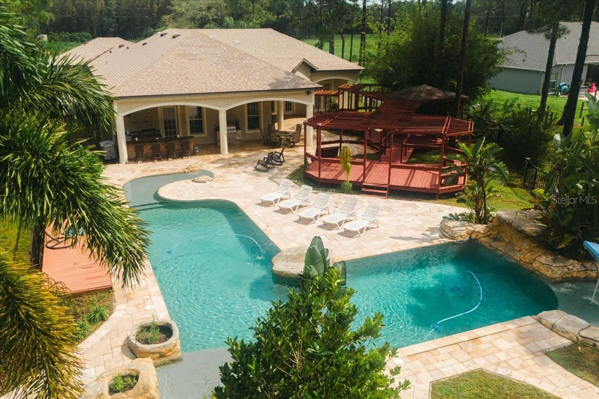 DE VOLTA AO MERCADO! Não perca esta incrível oportunidade de possuir um verdadeiro oásis na Flórida por um preço reduzido! Localizada no coração de Odessa, esta extraordinária casa personalizada oferece tudo o que você poderia sonhar e muito mais! Aproveite a tranquilidade sabendo que a casa NÃO ESTÁ EM UMA ZONA DE INUNDAÇÃO e resistiu aos dois furacões recentes sem nenhum arranhão. SEM HOA, SEM taxas de CDD e SEM restrições, esta é a combinação perfeita de privacidade, luxo e conveniência. As atualizações recentes incluem um NOVO TELHADO, NOVOS AR CONDICIONADOS e um NOVO AQUECEDOR DE ÁGUA - tornando esta casa praticamente nova! Para completar, a MESA DE BILHAR está incluída como presente para o(s) novo(s) proprietário(s). Situada em um terreno de 1 acre cercado pela natureza, esta deslumbrante casa de 4 quartos e 2,5 banheiros possui uma espaçosa planta aberta com belos azulejos de cerâmica, designs exclusivos e tetos altos de 12 a 16 pés. A cozinha gourmet é o sonho de qualquer artista com armários de madeira com fechamento suave, uma grande ilha, bancadas de granito, eletrodomésticos de aço inoxidável e iluminação LED - perfeita para preparar refeições com estilo. Dispõe de muita arrumação com abundância de armários e garagem para 3 carros equipada com tomadas de 240 volts para veículos eléctricos. A suíte master é um verdadeiro retiro, com um quarto enorme, 2 closets e banheiro privativo com chuveiro para 2 pessoas, pias duplas, bancada de granito e banheiro privativo. Cada um dos outros quartos espaçosos pode acomodar facilmente móveis grandes sem parecer apertado. Saia para o seu próprio paraíso privado no quintal em estilo resort. A piscina de água salgada de 33.000 galões é uma das maiores da região, considerada a melhor piscina do mundo e perfeita para mergulho com seus 2,10 metros de profundidade. A área da piscina começa com uma área rasa e baixa, ideal para os mais pequenos e animais de estimação, e se expande para uma ampla área de natação, completa com entrada para a praia, 2 decks, 3 cachoeiras e uma fonte. Cercado por mais de 2.000 pés quadrados de deck de travertino, o espaço externo também conta com pista de dança, mirante, fogueira e cozinha externa completa com bancada de granito, bar, churrasqueira e frigobar, tornando-o pronto para festas e reuniões familiares. Para maior diversão, um belo lago artificial acrescenta serenidade e charme a esta propriedade de tirar o fôlego. Esta casa tem preço de venda e oferece um valor incomparável com todos os seus recursos de luxo e detalhes atenciosos. Agende sua exibição privada hoje mesmo e experimente este lindo oásis em primeira mão antes que ele desapareça!