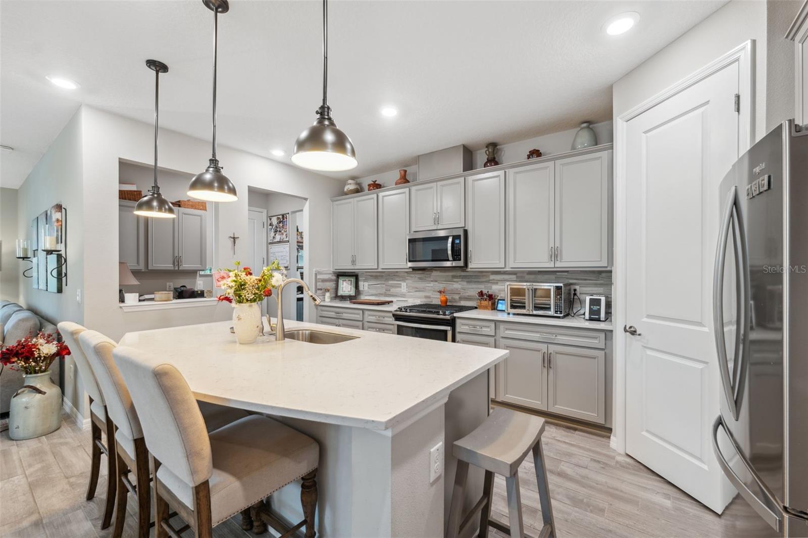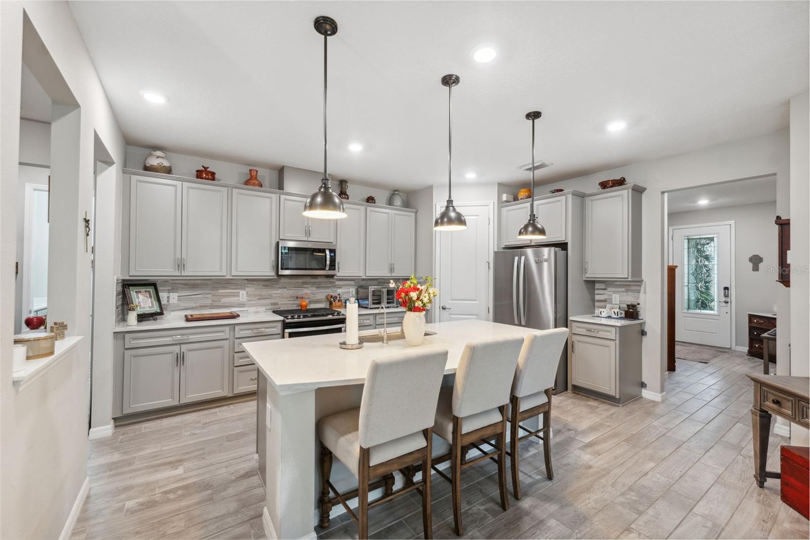 Aninhado na vibrante comunidade de Starkey Ranch, esta casa de 3 quartos e 2 banheiros convida você a experimentar conforto e elegância. À medida que você se aproxima, o lindamente paisagístico quintal e garagem de duas portas criam uma primeira impressão convidativa, levando a um interior que combina sem esforço o design moderno com a vida cotidiana. No interior, a planta aberta flui perfeitamente de um espaço para o outro, começando com uma espaçosa sala de estar que atrai luz natural através de janelas de panela dupla. O coração da casa fica na cozinha deslumbrante, com bancadas elegantes, armários personalizados e um backsplash chique, todos complementados por utensílios de aço inoxidável sofisticados. A despensa de um mordomo acrescenta praticidade e estilo, enquanto o layout aberto da cozinha fornece linhas de visão claras à sala de jantar e à sala da família, tornando uma brisa divertida ou familiar. A sala da família de tamanho generoso se estende através de janelas de dupla panela até o pátio sereno e fechado-ideais para momentos pacíficos ou reuniões animadas, com o bônus adicional de ser protegido do sol da Flórida com cortinas suspensas. A suíte master é um retiro pacífico, com paredes de janelas, permitindo que a luz do sol inundasse a sala, criando um ambiente tranquilo. O banheiro em anexo é uma fuga semelhante a um spa, com uma vaidade de pia dupla e um grande chuveiro de vidro, lindamente ladrilho em tons neutros macios. Um espaçoso closet oferece amplo armazenamento, aumentando o luxo da sala. Dois quartos de hóspedes proporcionam conforto e privacidade para a família ou os visitantes. O segundo quarto, com seu armário duplo, está localizado perto do segundo banheiro completo, que possui uma combinação de chuveiro/banheira e pias dele e seu para maior conveniência. A versátil terceira sala apresenta inúmeras possibilidades-seja um escritório em casa, sala de jogos ou espaço para hobby-com seu próprio closet. A lavanderia, completa com uma pia de utilidade, espaço extra e armários amplos, é prático e eficiente. Do lado de fora, o bar seco com dois frigoríficos de vinho cria um local perfeito para relaxar, enquanto a área de mesa embutida torna o trabalho em casa um prazer. Saia para a extensa Lanai, onde pisos de pavimentação e dimensões espaçosas fornecem um retiro pacífico com uma visão desobstruída do bairro. Esta área fechada é perfeita para desfrutar do ar livre sem se preocupar com os elementos. Além dos muitos recursos da casa, a propriedade está equipada com painéis solares e uma bateria de backup do Tesla para eficiência energética. Viver aqui significa mais do que apenas a casa-desfrute das comodidades de estilo resort da comunidade, incluindo um clube, parque de cães, playground e piscina. Além disso, com uma escola no local, a conveniência de ter educação por perto é apenas mais um bônus. Esta casa está pronta para recebê -lo. Programe sua turnê hoje e descubra o estilo de vida que você estava esperando.