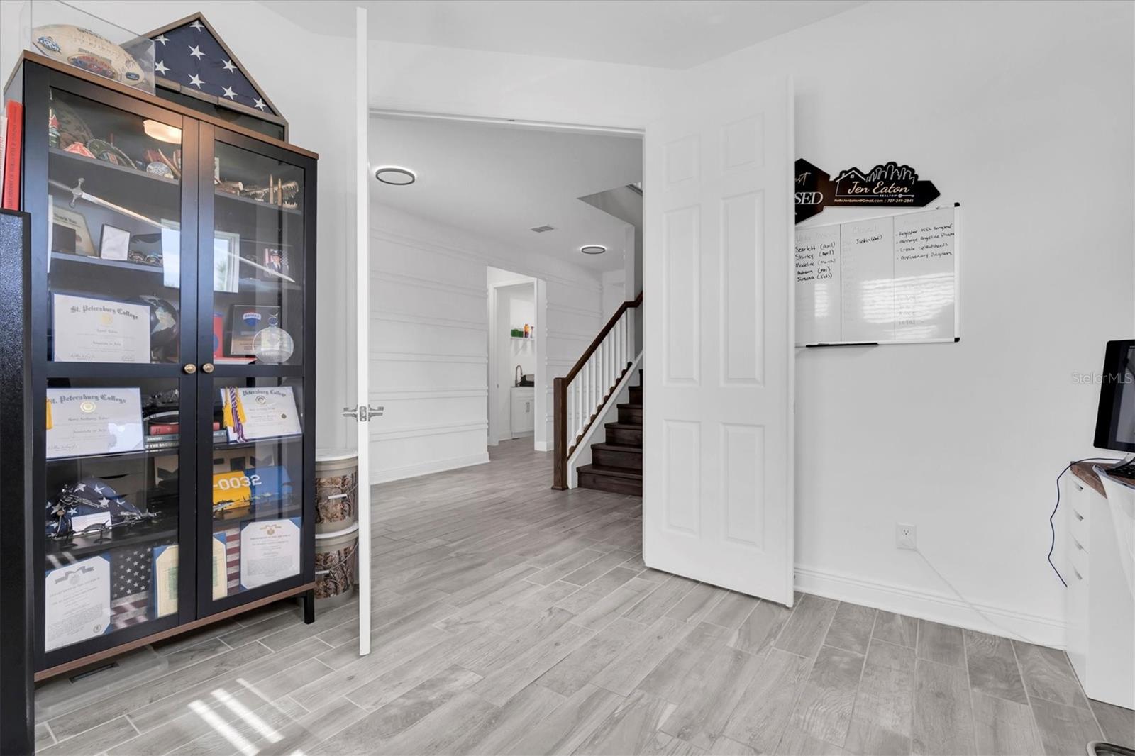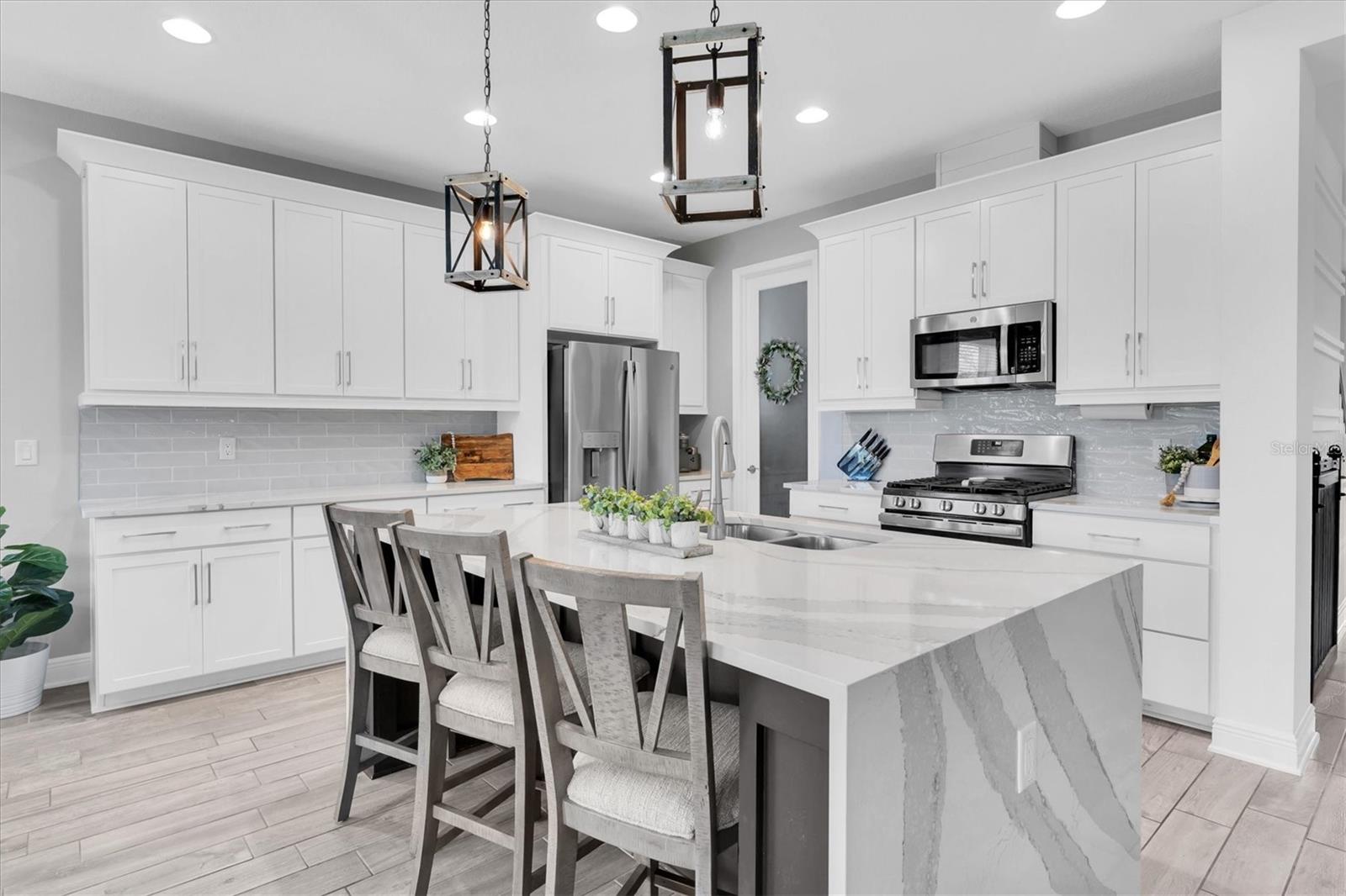 Casa recém -construída no lote pitoresco de conservação e beco de sac no desejável Starkey Ranch. Bem-vindo ao seu Mi Homes Santa Monica Plan, que foi recentemente construído em 2022, abrangendo 2849 pés quadrados em 2 andares, oferecendo 4-BR, 2,5-BA, garagem de 2 carros, mais Office & Bonus Room em uma esquina, sem saída, e um sonhador de conservação de um parto privado, com vista para as árvores. Projetado meticulosamente com mais de US $ 87 mil com o construtor e US $ 50 mil em atualizações após o mercado. O exterior convidativo é esteticamente agradável com telhado de telha tridimensional, detalhes em pedra, pavimentadores, paisagismo exuberante com luzes para cima na frente e traseira e uma varanda coberta define o tom do luxo. Entrando na porta da frente, esteja preparado para ser cativado por atualizações dignas de nota, incluindo ladrilhos de cerâmica de nível 4 em toda a área de estar, recém -pintada Sherwin Williams Passive Cinza, madeira personalizada, halo advertível e latas, portas de 8 pés que aprimoram o sentido de luminárias de grandeza e luminárias de designers que exudem a luxo a cada turno. À direita, portas duplas levam ao espaço de escritório dedicado. A elegante placa personalizada e a parede de sotaque de Batten leva à área de estar principal, onde a planta aberta se desenrola com vistas da conservação como pano de fundo. Uma espaçosa sala de estar principal apresenta um ventilador de bandeja e teto, personalizado embutido com lareira aconchegante, prateleiras e armários flutuantes, manto para decoração e uma parede de destaque moderna que acomoda uma grande TV com vistas de conservação dos controles deslizantes. Adjacente é uma área de jantar iluminada por um lustre moderno e controles deslizantes atualizados. A cozinha elegante do chef impressionará com armários Timberlake de 42 'em molduras brancas com coroa, hardware de níquel escovado, backsplash e requintado Brittanica Cambria bancadas de nível 6 iluminadas pelas luzes CAN. Uma ilha impressionante com quartzo em cascata, sotaque de madeira personalizada e 2 luzes pendentes oferecem lugares para entretenimento e espaço para se reunir. Os aparelhos de aço inoxidável incluem geladeira, gama de gases de 5 queimadores, microondas, lava-louças e despensa com porta fosca. A sala de pó está localizada centralmente para os hóspedes. Retire -se para a suíte primária isolada do 1º andar, um refúgio de tranquilidade, marcada pelo ventilador de teto, lareira aconchegante e parede de destaque personalizada com vista para as belas vistas das árvores. Delicie-se com o banheiro de banheiro do tipo spa com vaidades duplas, armários, chuveiro com chuva com chuveiro, banheira de imersão relaxante e caminhe no armário. Ao subir as escadas de madeira com grade de eixo de madeira, você é recebido por uma sala bônus multifuncional e grande que será popular entre as crianças! Quartos de tamanho bem 2, 3 e 4, este último com armários de caminhada, juntamente com um banho completo adjacente a Jack & Jill completando o segundo andar. Relaxe em seu lanai estendido privado e coberto com vistas tranquilas e desobstruídas da reserva da natureza de conservação. Este lote de ¼ acre garante muito espaço para futuros planos de quintal. *Aquecedor de água quente sem tanque*prateleiras de garagem e porta isolada*amaciante de água*sem inundação Zona*Starkey Ranch oferece um estilo de vida incomparável com sua escola de ímã K-8, 3 piscinas comunitárias, playgrounds, parques de cães e 20 quilômetros de trilhas. Fácil acesso a lojas, restaurantes, publix, praias, Tampa e aeroporto. Experimente o estilo de vida pessoalmente e faça desta requintada casa sua.