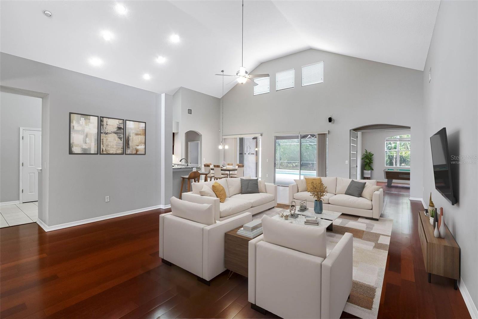 Uma ou mais fotos foram praticamente encenadas. Bem-vindo à sua casa exclusiva de estilo executivo na altamente criada Ivy Lake Estates. Esta casa de família perfeita é uma ampla residência de conceito aberto em estilo de fazenda com privacidade. Esta incrível propriedade do Conservatory é de 4 quartos, 3 banheiros, 2 bônus, 3 carros na piscina de garagem. Esta jóia está localizada na Premier Community, na State Road 54 e no Suncoast Parkway. Ivy Lake Estates não possui CDD e um HOA de US $ 139 por mês dentro de um distrito escolar classificado como "A". Ao atravessar o limiar e entrar pela porta da frente, você será cativado pela catedral e tetos altos abobadados apenas para parar e ver a piscina brilhante e convidativa. Imediatamente à sua esquerda, há uma sala de jantar formal privada e à direita é a primeira sala de bônus/covil/escritório. Esta planta de piso do quarto dividido da Flórida é perfeita para famílias e entretenimento com uma cozinha de sonho de chefs com uma faixa de gás, bancadas em granito e ilha, belos armários de madeira e iluminação. Há uma suíte master privada grande e tranquila, isolada no lado da cozinha, com sua própria suíte, pias duplas divididas por armários de madeira, mergulhar na banheira, chuveiro separado, vaso sanitário e armário espaçoso. Adjacente ao vasto conceito aberto da sala familiar, é a sala de bônus maior, o local potencial de sogros, Den, escritório, teatro ou até uma sala de jogos. Esta sala está convenientemente conectada ao banho de piscina. O quarto quarto também está conectado ao banheiro da pistas, sendo este o bairro de vida multifuncional perfeito. No lado oposto da Grand Living Room, há um corredor com dois quartos com vantajosamente divididos por um banho completo. Esse layout da propriedade tem potencial e conforto para qualquer cenário familiar. O rastreado em Lanai contém uma fabulosa piscina de água salgada, spa e pátio coberto, aninhado na conservação da privacidade ao relaxar e divertir. Conectar -se ao Lanai é uma entrada para o banho de piscina dentro de um cercado no quintal. Esta casa tem tudo, venha e faça a sua! Além disso, há uma área de lazer com quadra de vôlei de areia, quadra de basquete, campo de futebol e playground na mesma rua. Esta comunidade fabulosa fica perto das melhores comodidades de Tampa Bay, com shoppings premium, restaurantes com melhor classificação, praias de classe mundial, golfe, parques temáticos, eventos esportivos e aeroportos internacionais.