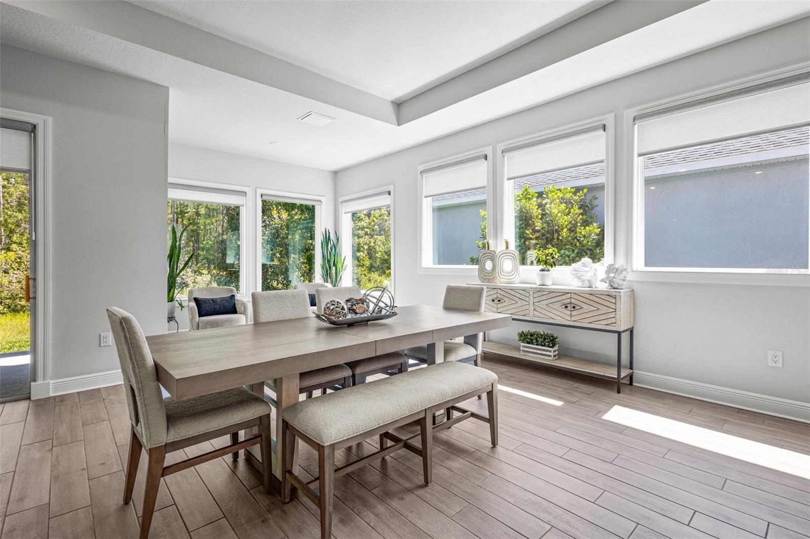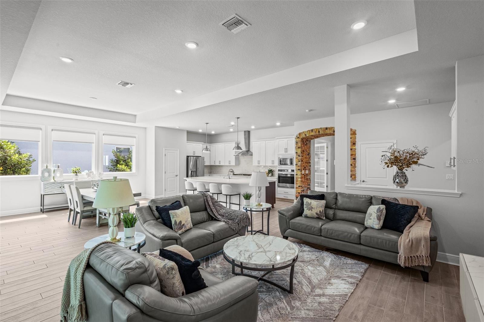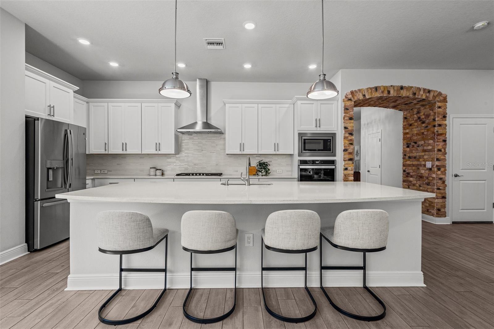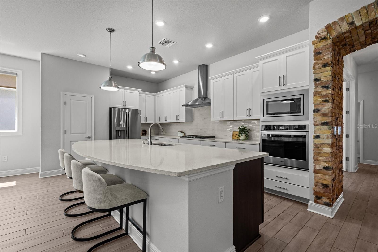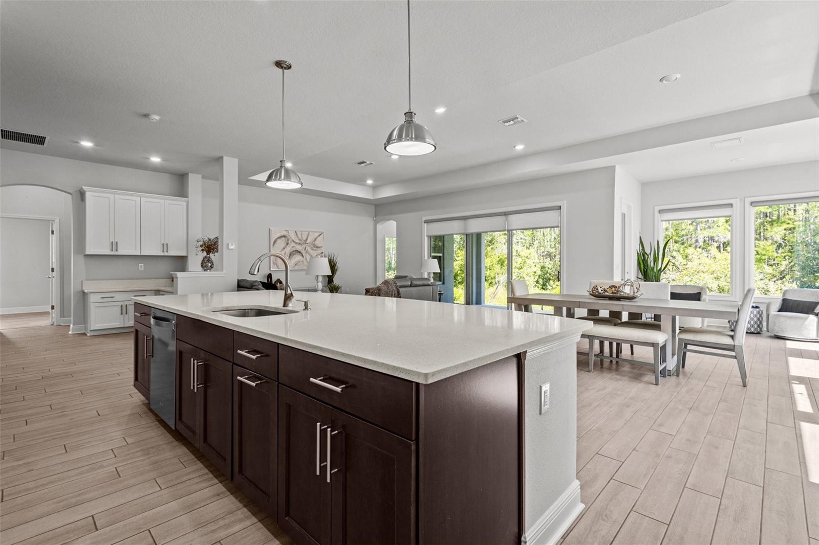 Uma ou mais fotos foram virtualmente encenadas. Situado em um lote de conservação premium nas Astúrias, este David Weekley Aronwood de um só andar oferece quase 2.900 pés quadrados de espaço habitacional cuidadosamente projetado. A casa combina vida aberta, retiros privados e luz natural abundante graças à sua orientação sudoeste e grandes controles deslizantes de vidro com vista para a vegetação protegida, sem vizinhos traseiros. No interior, tetos de 3,6 metros e ladrilhos largos com aparência de madeira definem as principais áreas de estar. A cozinha gourmet ancora a casa com armários de 42 polegadas, bancadas de quartzo, backsplash elegante, eletrodomésticos de aço inoxidável, fogão a gás e uma ilha enorme projetada para reuniões. Um espaço de trabalho integrado adjacente à cozinha oferece um recanto dedicado para organização ou trabalho remoto. A grande sala se conecta perfeitamente à área de jantar e a um recanto bem iluminado que emoldura a vista do quintal. As portas francesas abrem para o escritório doméstico, destacadas por um teto de bandeja, parede com detalhes em tijolo e iluminação personalizada - perfeita para uso criativo ou profissional. A suíte principal desfruta de uma localização tranquila na parte traseira, completa com banheira estilo spa com pias duplas, box amplo e sistema de armário personalizado. Uma suíte de hóspedes privativa com banheiro completo fica na ala oposta, enquanto dois quartos adicionais compartilham um banheiro bem equipado. Um lavabo e uma espaçosa lavanderia com arrumação embutida completam o layout interior. Ao ar livre, a varanda coberta e o quintal cercado voltam para a conservação arborizada para total privacidade e vista do pôr do sol. A garagem tandem para 3 carros adiciona espaço flexível para veículos, armazenamento ou oficina e inclui uma tomada de carregamento de veículos elétricos. Viver nas Astúrias significa ter acesso a uma ampla gama de comodidades comunitárias – clube, piscina estilo resort, academia, parque para cães, playground e quilômetros de trilhas pitorescas. O bairro está localizado a 1,6 km da Suncoast Trail, uma ciclovia regional pavimentada localizada no trevo SR 54 / Suncoast Parkway, ideal para ciclismo e recreação ao ar livre. A conveniência diária está por perto: Publix Super Market em Starkey Ranch (2,5 km), acesso à Suncoast Parkway (1,6 km), Aeroporto Internacional de Tampa (37 km) e Base Aérea MacDill (31 km). Zoneado para Odessa Elementary, Seven Springs Middle e Mitchell Ranch High School. Esta casa bem conservada combina design inteligente, espaço flexível e localização excepcional em uma das comunidades mais desejáveis de Odessa.