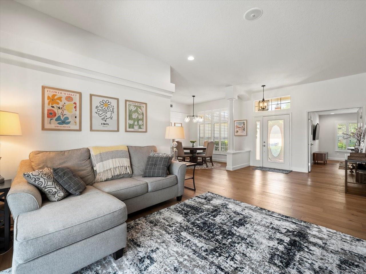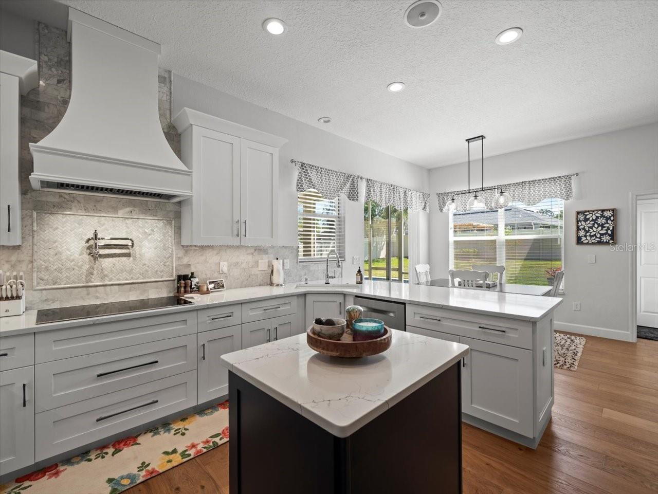 Experimente a mistura perfeita de estilo e conforto neste escritório de 4 quartos + de 4 quartos, em casa de 3 banheiros, em um lote cercado expansivo com um grande lanai, ideal para a vida ao ar livre. No interior, os pisos de madeira fluem perfeitamente pela planta baixa cheia de luz, complementada por persianas elegantes de plantação. A casa recebe você com salas formais de vida e jantar, criando uma primeira impressão calorosa e convidativa. A cozinha gourmet é um verdadeiro showstopper, com bancadas de quartzo, utensílios de aço inoxidável, fornos duplos embutidos, microondas embutidas, capuz impressionante, geladeira de vinho e uma lanchonete separada. A cozinha abre para um espaçoso quarto de família com tetos abobadados - perfeita para relaxar ou divertir. Retire para a suíte primária privada com som surround, armários duplos e um luxuoso banho de suíte com uma vaidade de pia dupla coberta em quartzo, uma banheira de jardim e um chuveiro enorme. Dois quartos de hóspedes compartilham um banheiro lindamente atualizado, enquanto um quarto dividido tem seu próprio acesso a um terceiro banho completo - ideal para hóspedes ou vida geracional. Saia para aproveitar o estilo de vida da Flórida no Lanai de grandes dimensões e no quintal expansivo, oferecendo muito espaço para brincar, animais de estimação ou jardinagem. Tudo isso está idealmente situado a poucos minutos das escolas, rodovias, parques locais, compras e restaurantes. Agende sua exibição nesta mudança para casa hoje!