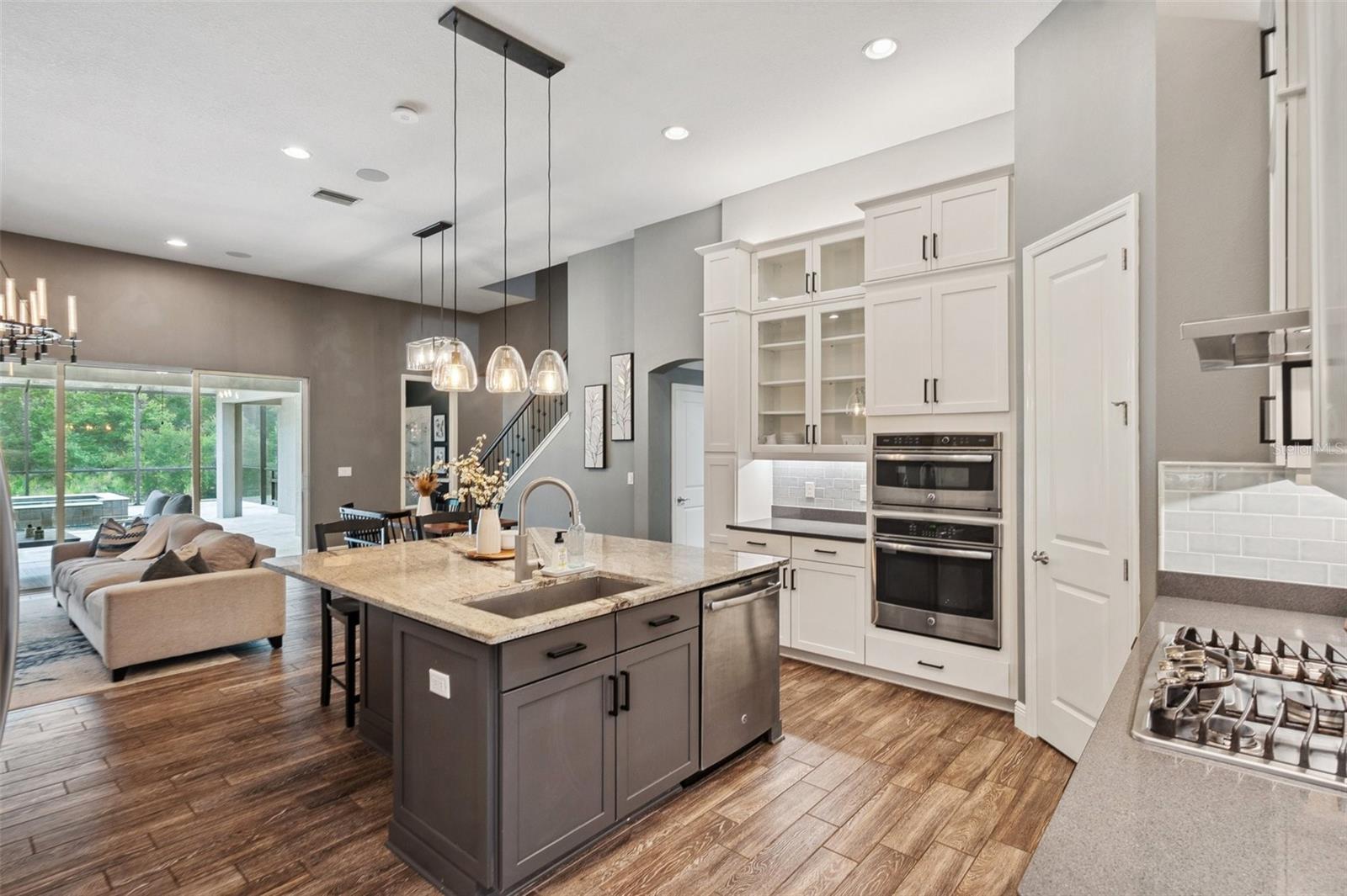 Aninhado na comunidade altamente procurada de Starkey Ranch em um raro lote de conservação, esta residência lindamente mantida na 3326 Barbour Trail oferece a mistura perfeita de conforto, estilo e funcionalidade. Esta planta do Westbay Key Largo II apresenta muitas atualizações. Com um espaçoso layout de conceito aberto, esta casa possui 5 quartos, 4 banheiros, escritório em casa, espaço flexível e um versátil no andar de cima, ideal para um sexto quarto, segundo escritório em casa, sala de jogos ou sala de mídia. Desfrute da cozinha de um chef moderno completo com bancadas em granito, utensílios de aço inoxidável, uma grande ilha e uma abundância de armários. Uma despensa personalizada facilita o armazenamento. As amplas áreas de estar e jantar se conectam perfeitamente a um lanchone coberto com uma banheira de hidromassagem de água salgada de grandes dimensões, olhando para o quintal cercado e a Starkey Reserve, criando um espaço ideal para entreter ou desfrutar da tranquila noite da Flórida enquanto você vê a vida selvagem. A Grand Room inclui a cozinha incrível e também tem uma ótima área. Com tetos de 12 pés, a iluminação de hardware de restauração se destaca. A suíte do proprietário fornece um retiro privado com um luxuoso banho de suíte, banheira independente, vaidades duplas, um chuveiro e um closet generoso com extensos armários personalizados. Destaques adicionais incluem paredes de shiplap, piso de azulejos nas principais áreas de estar, LVP de ponta no andar de cima, carpete novo, escadas de madeira, tecnologia doméstica inteligente com Wi-Fi de Mesh de Copper e pontos de acesso, uma garagem de três carros e paisagismo exuberante. Desfrute de filmes e entretenimento com alto-falantes de som surround instalados na sala de estar e ambos os quartos de bônus, além de pré-fiação para um projetor no andar de cima. O pátio traseiro também possui conexões de pia e gás, oferecendo maior flexibilidade para personalizar o espaço ao ar livre para atender às suas necessidades. Uma nova unidade CA foi instalada em 2023, complementada por um mini sistema dividido em um dos quartos, e três dos quartos secundários apresentam armários, oferecendo muito espaço de armazenamento. Localizado a poucos passos das escolas de melhor classificação, trilhas cênicas, três piscinas comunitárias, playgrounds e todas as comodidades de estilo de vida que fazem do Starkey Ranch uma das principais comunidades de Tampa Bay, esta casa realmente tem tudo. Não perca a oportunidade de tornar essa propriedade excepcional a sua - faça o seu show particular hoje!