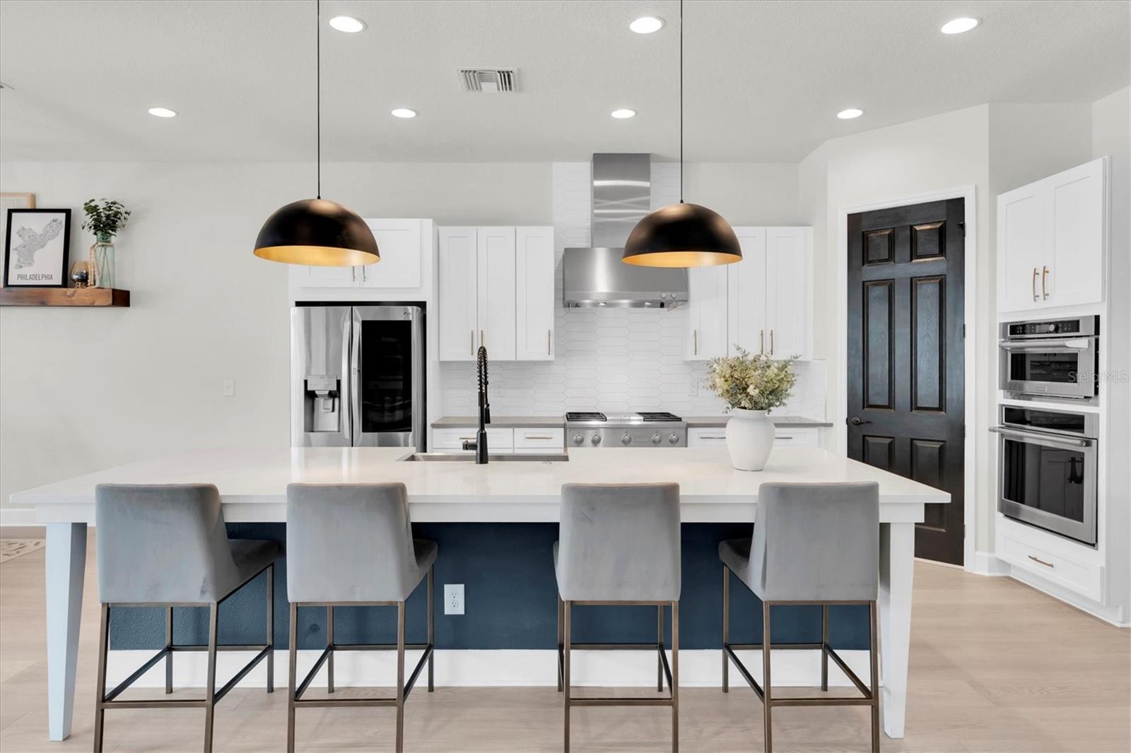 Modern Luxury Estate Home com Pool & Spa em lote pitoresco de grandes dimensões em Starkey Ranch. Esta requintada Taylor Morrison Tortola, recém-construída em 2020, abrange 3457 pés quadrados em 2 andares, oferecendo 5-BR, 4,5-Ba, mais sala de bônus, garagem dividida em 3 carros, piscina de água salgada, rastreada e aquecida e spa, cercados por calcário mediterrâneo e metal cercado. Projetado meticulosamente com mais de US $ 120 mil em atualizações de designers mais 152k em investimentos pós-mercado, esta jóia está situada em um lote privado de .22 acre, que se abre para o Common Greenspace. Convidar o exterior do artesão é esteticamente agradável com telhado sofisticado, tapume de hardie e shake, detalhes em pedra, calçada de pavimentação, paisagismo exuberante e uma varanda coberta define o tom do luxo interior. Entrando nas portas dianteiras de vidro duplo, esteja preparado para ser cativado por tetos de 25 'com bandeja, lustre de hardware de restauração de designers, escada de metal de metal escada, arandelas e 2 janelas superiores. As atualizações dignas de nota incluem: tinta neutra de Sherwin Williams, luminárias de designers modernos, portas de 8 pés e um novo piso de vinil de luxo consistente no 1º andar que exala luxo a cada passo. A planta aberta se desdobra em um espaçoso Grand RM com tetos altos e teto de bandeja dupla com ventilador de teto de declaração criam um espaço sofisticado e convidativo. A estrela do show nesta sala é definitivamente os controles deslizantes que desaparecem e embolsando que unem a vida interna e ao ar livre para um divertido ideal! Adjacente é uma área de jantar espaçosa iluminada por um lustre moderno. A elegante cozinha gourmet impressionará com armários shaker de linho de 42 'New Haven em atualização branca e prolongada de bar, hardware de ouro, backsplash do Lux Picket Hexagon, bancadas requintadas de quartzo de Cambria com pantera de mordomo com refrigerador de vinho. Uma grande ilha oferece espaço para 4 barsteiros e é complementada por pia frontal de avental de aço inoxidável com torneira preta de ganso preta e 2 luzes pendentes elegantes oferecem amplos assentos e espaço para se reunir. Os aparelhos de primeira linha, incluem o Monogram Hood e a Cooktop de Gas-Burner de 5 queimadores, o fogão + microondas, a máquina de lavar louça e a geladeira LG garantem a excelência culinária. Conveniente 1º andar do 1º andar é essencial para os hóspedes. Retire para a 1ª suíte primária isolada da FL, um refúgio de tranquilidade, marcada pelo teto da bandeja com lustres de designer emoldurados por janelas com vista para a piscina. Delicie-se com o banheiro de banheiro do tipo spa com vaidades duplas, balcão de maquiagem, armários abundantes, chuveiro de entrada de entrada dupla, banheira de imersão e camisa no armário. Suba as escadas para o 2º andar, onde o BR 2 oferece um privado privativo e BR 3 e 4 tomam um banho completo adicional. O grande bônus RM oferece espaço multiuso. No 1º andar, o BR 5 inclui a segurança. A lavanderia RM inclui lavadora e secadora. Um luxuoso oásis tropical aguarda. Relaxe em sua deslumbrante água salgada, piscina aquecida e spa com grande prateleira solar, em assentos de piscina, luzes de ledes LED controlados e elegantes pavimentadoras de calcário do Mediterrâneo esfriam ao toque com vistas particulares graças ao paisagismo exuberante. Um espaço coberto com fã arejado, além de soldado motorizado que funciona como sombra ou uma tela de projetor de cinema, promete inúmeras noites de memórias feitas e relaxando em grande estilo. *O pátio cercado leva a um espaço verde com espaço para jogar com segurança*Starkey Ranch oferece um estilo de vida incomparável com sua escola de ímã K-8, 3 piscinas, playgrounds, parques para cães e 20 quilômetros de trilhas. Acesso a lojas, restaurantes, publix, praias, Tampa e aeroporto. Experimente a grandeza pessoalmente e faça desta requintada casa sua.