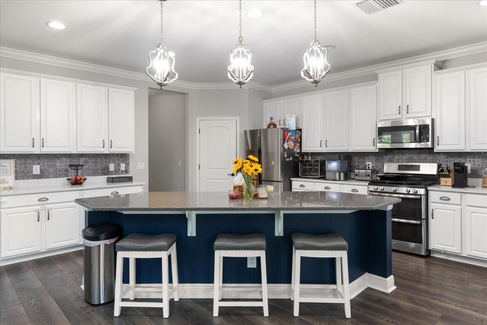 Mudar-se pronto! Esta impressionante casa de 3.308 pés quadrados oferece 4 quartos, 4 banheiros, garagem de 2 carros, além de um espaço de escritório dedicado. O destaque é a incrível área de estar ao ar livre, completa com uma piscina de água salgada aquecida, spa e cozinha ao ar livre premium - perfeita para entretenimento durante todo o ano. Conjunto completo de painéis solares no telhado que alimentam toda a casa, elevando a conta de energia aos centavos. Localizado em um lote de canto desejável, com cercas de privacidade total em uma comunidade estabelecida, esta casa fica a uma curta distância da escola primária local, parques, instalações recreativas e comodidades comunitárias. A casa fica com destaque na frente do bairro, com excelente apelo ao meio -fio, com uma garagem de pavimentação com restrição decorativa, paisagismo profissional atualizado, tapume atraente com detalhes em coluna de pedra e uma varanda coberta com porta decorativa de entrada. O interior mostra tinta colorida neutra por toda parte, piso de tábua de vinil de luxo em todos os níveis, incluindo escadas e um design de conceito aberto com tetos altos de 22 pés que inundam o espaço com luz natural abundante de várias janelas. O nível principal inclui um escritório particular com portas francesas e iluminação atualizada, além de um banheiro completo com a combinação de banheira/chuveiro. A área de estar apresenta um sistema de som embutido perfeito para entretenimento. A cozinha gourmet serve como o coração da casa, com sua grande ilha central, com assentos de bar de café da manhã para quatro, armários brancos extensos com hardware de qualidade, bancadas de quartzo por toda parte, pacote de eletrodomésticos em aço inoxidável, backsplash de ladrilhos de designer, detalhes de moldagem de coroa e uma despensa de caminhada de tamanho grande com armazenamento personalizado. O espaço de jantar formal complementa a cozinha com detalhes arquitetônicos, incluindo moldagem por coroa, lambris e elegante acessório de iluminação. No andar de cima, a suíte master impressiona com o teto da bandeja e os acabamentos premium, enquanto o banheiro principal completamente renovado mostra trabalho de ladrilhos de luxo, vários chuveiros com recurso de chuva e um grande armário com organização embutida. Três quartos adicionais oferecem configurações flexíveis de banheiro, com um quarto, incluindo um banheiro privativo e um closet. Os excelentes centros de espaço ao ar livre ao ar livre em torno de uma área de piscina personalizada com um sistema de piscina de água salgada com aquecimento a gás, spa de luxo com vários jatos, pacote de iluminação LED por toda parte, características decorativas de água e prateleira solar, decks premium de pavimentação e gabinete selecionado. A cozinha ao ar livre possui equipamentos e eletrodomésticos de nível profissional com área de jantar e entretenimento coberta, ventiladores de teto e zonas de assentos confortáveis perfeitas para hospedar reuniões. Recursos premium adicionais incluem um sistema de controle de piscina inteligente, condicionamento de água em toda a casa, sistema de calha, revestimento de piso de garagem e quintal totalmente cercado para privacidade e segurança. A casa está localizada em uma comunidade mestre premiada, com escolas de primeira classificação, biblioteca, locais de entretenimento, parque distrital, várias piscinas, playgrounds, parques de cães, extenso sistema de trilhas, centro comunitário, compras convenientes e atividades familiares durante todo o ano. Agende sua turnê privada hoje!