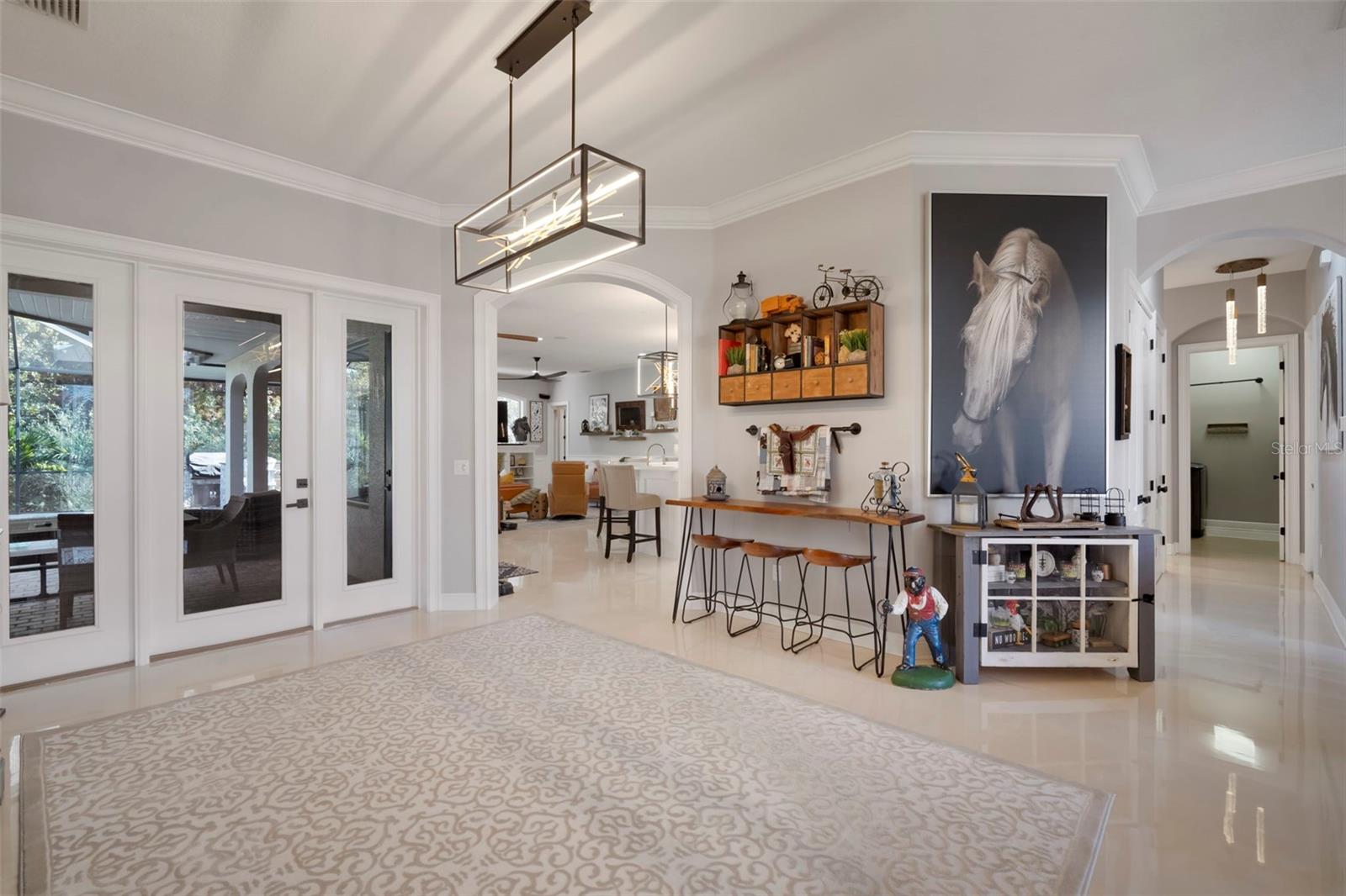 Bem-vindo ao 15035 Wind Whisper Drive – Vida luxuosa em Gray Hawk no Lake Polo. Entre nesta casa Samuelson lindamente atualizada e personalizada no muito procurado condomínio fechado de Gray Hawk em Lake Polo em Odessa, FL. Cuidadosamente projetada e meticulosamente mantida, esta residência de 4 quartos e 3 banheiros, piscina de água salgada aquecida e garagem para 3 carros combina artesanato atemporal com atualizações modernas e uma vida tranquila na Flórida. A partir do momento em que você entra pelas elegantes portas duplas, você notará o convidativo layout aberto, os tetos altos e a abundante luz natural. A cozinha gourmet foi renovada com bom gosto com novas bancadas de quartzo, backsplash, pia e acessórios, e agora apresenta armários pintados, novas ferragens e iluminação atualizada para um toque novo e de design. É equipado com novos eletrodomésticos de aço inoxidável, incluindo geladeira, lava-louças e combinação de forno / micro-ondas, além de uma despensa grande para maior comodidade. A suíte principal oferece um retiro tranquilo com uma grande banheira de imersão, box amplo, pia dupla e dois closets espaçosos. Os quartos adicionais são de dimensões generosas, sendo um deles ideal como suíte de hóspedes, escritório ou sala de ginástica, completo com acesso à piscina. Saia e experimente o melhor da vida ao ar livre da Flórida com uma cozinha coberta recém-adicionada, completa com churrasqueira a gás Blaze Professional, queimador, geladeira, pia, caixa de gelo, gaveta de lixo e ventilador de teto. A piscina aquecida Pebble Tec (garantia vitalícia) oferece diversão durante todo o ano, enquanto o paisagismo frontal renovado e as novas palmeiras e tílias no quintal criam um belo cenário em estilo resort. A propriedade dá acesso a uma reserva protegida que nunca será construída, oferecendo privacidade tranquila e a oportunidade de desfrutar de visitas de veados, corujas, falcões e outros animais selvagens diretamente do seu próprio quintal. Atualizações recentes adicionais incluem: Piso em resina epóxi em todas as áreas comuns Aquecedor de água sem tanque Amaciante de água e sistema de filtragem para toda a casa Sistema de som Sonos (interno e externo) Nova iluminação, ferragens nas portas e ventiladores de teto por toda parte Elétrica atualizada para 50 amperes Pintura interna e externa fresca Novo sistema de portão de garagem Esta casa também oferece um empréstimo VA assumível de 5,75% (sujeito à aprovação do credor/VA). Localizada em uma comunidade tranquila e bem conservada, sem taxas de CDD e com baixo HOA que inclui lixo e reciclagem, esta casa oferece luxo, praticidade e valor a longo prazo. Uma lista completa de atualizações recentes e detalhes do sistema disponíveis na Folha de Informações do Proprietário em anexo.