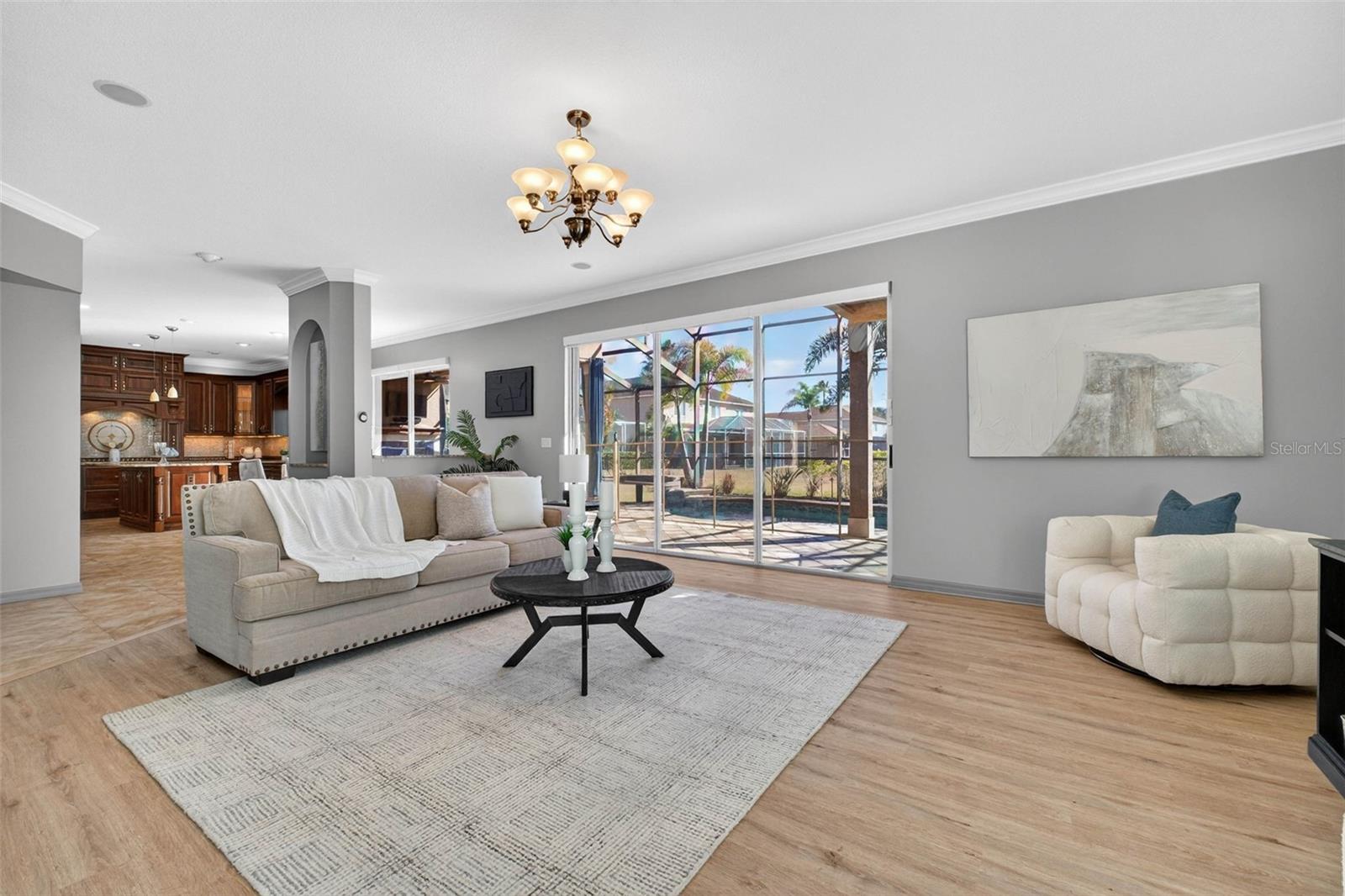 Imponente propriedade com campo de golfe no exclusivo enclave de The Eagles em St. Andrews, em Odessa, perfeitamente posicionada em um beco sem saída tranquilo com vista para o 13º green. Esta ampla residência de 5 quartos e 3 banheiros oferece mais de 4.000 pés quadrados de espaço cuidadosamente projetado com detalhes arquitetônicos elegantes e vida interna e externa perfeita. As majestosas portas frontais com vitrais se abrem para uma escadaria dramática e um grande hall de entrada que dão o tom para o estilo refinado da casa. A cozinha do chef é uma verdadeira vitrine com eletrodomésticos Miele premium, uma grande ilha central, bar barista dedicado, armários duplos com lindas portas de madeira e armários abundantes aprimorados com prateleiras removíveis e prateleiras de temperos embutidas. A área de café da manhã e a cozinha oferecem vistas deslumbrantes do deck da piscina até o campo de golfe, criando um cenário deslumbrante para a vida cotidiana. A impressionante suíte principal apresenta tetos abobadados e proporções generosas, enquanto o nível superior oferece quatro quartos adicionais, incluindo um quarto grande com escritório privativo. Uma grande sala de bônus, atualmente configurada como teatro, oferece flexibilidade excepcional para entretenimento ou recreação. Saia para uma área de estar ao ar livre em estilo resort, projetada para diversão durante todo o ano, completa com cozinha externa, lareira externa e chuveiro externo - tudo com vista para o campo bem cuidado. Os destaques adicionais incluem um sistema de vigilância com fio com quatro câmeras, teto de 2012 e nenhum carpete para fácil manutenção e apelo moderno. Localizados dentro do condomínio fechado Eagles, os moradores desfrutam de segurança 24 horas, campeonato de golfe e uma localização privilegiada em Odessa, perto das melhores escolas, restaurantes e das principais vias. Uma rara oportunidade de possuir uma luxuosa casa com campo de golfe com espaço, privacidade e vistas inesquecíveis. Ligue hoje para agendar sua exibição privada.