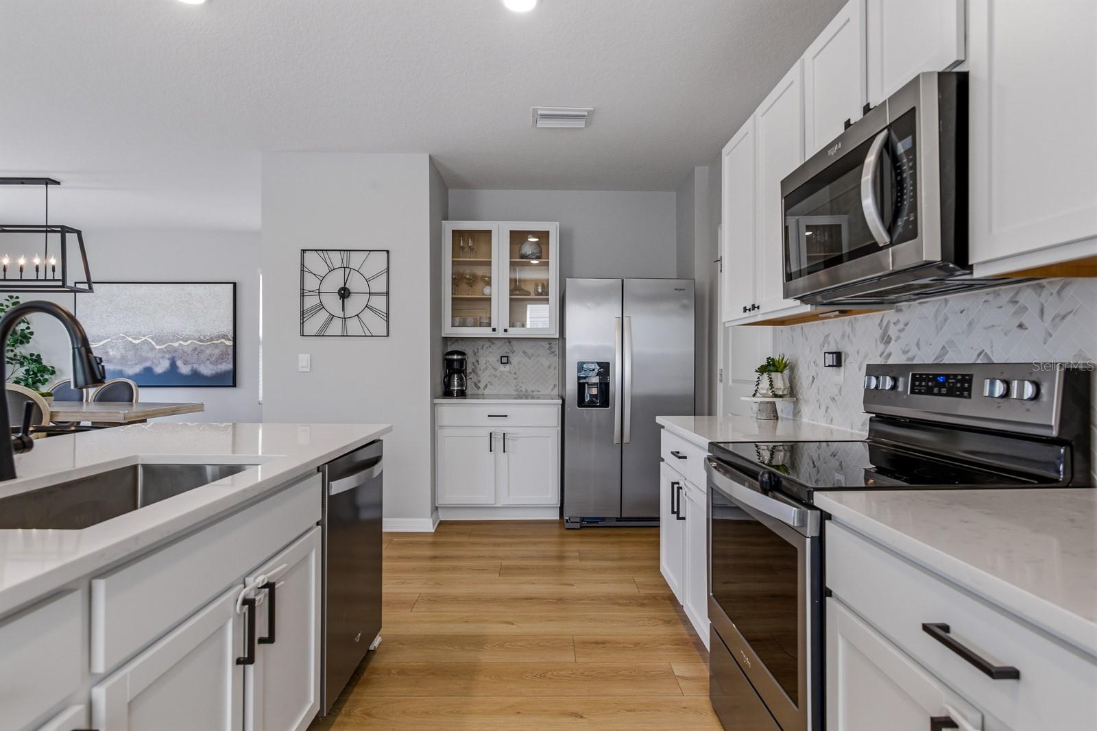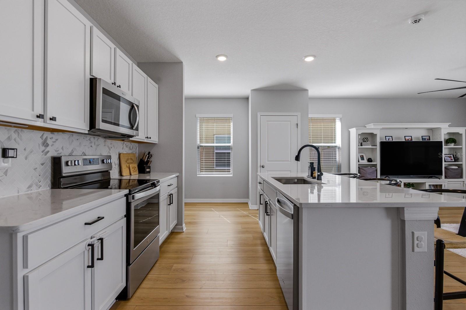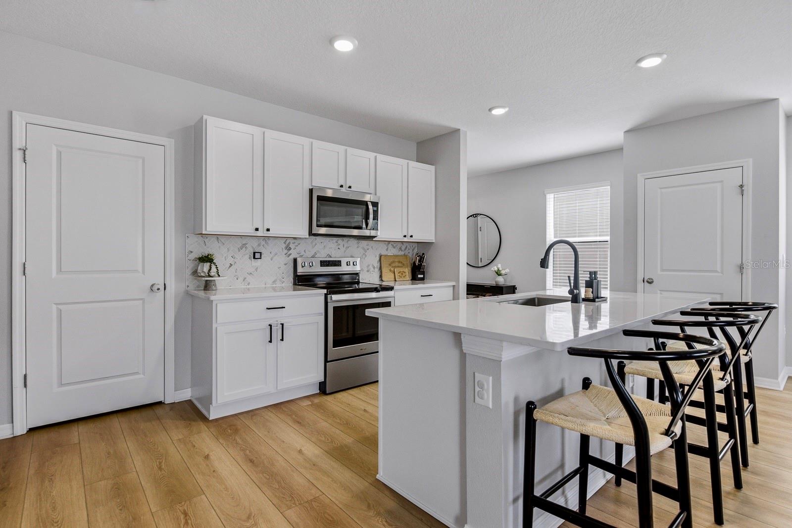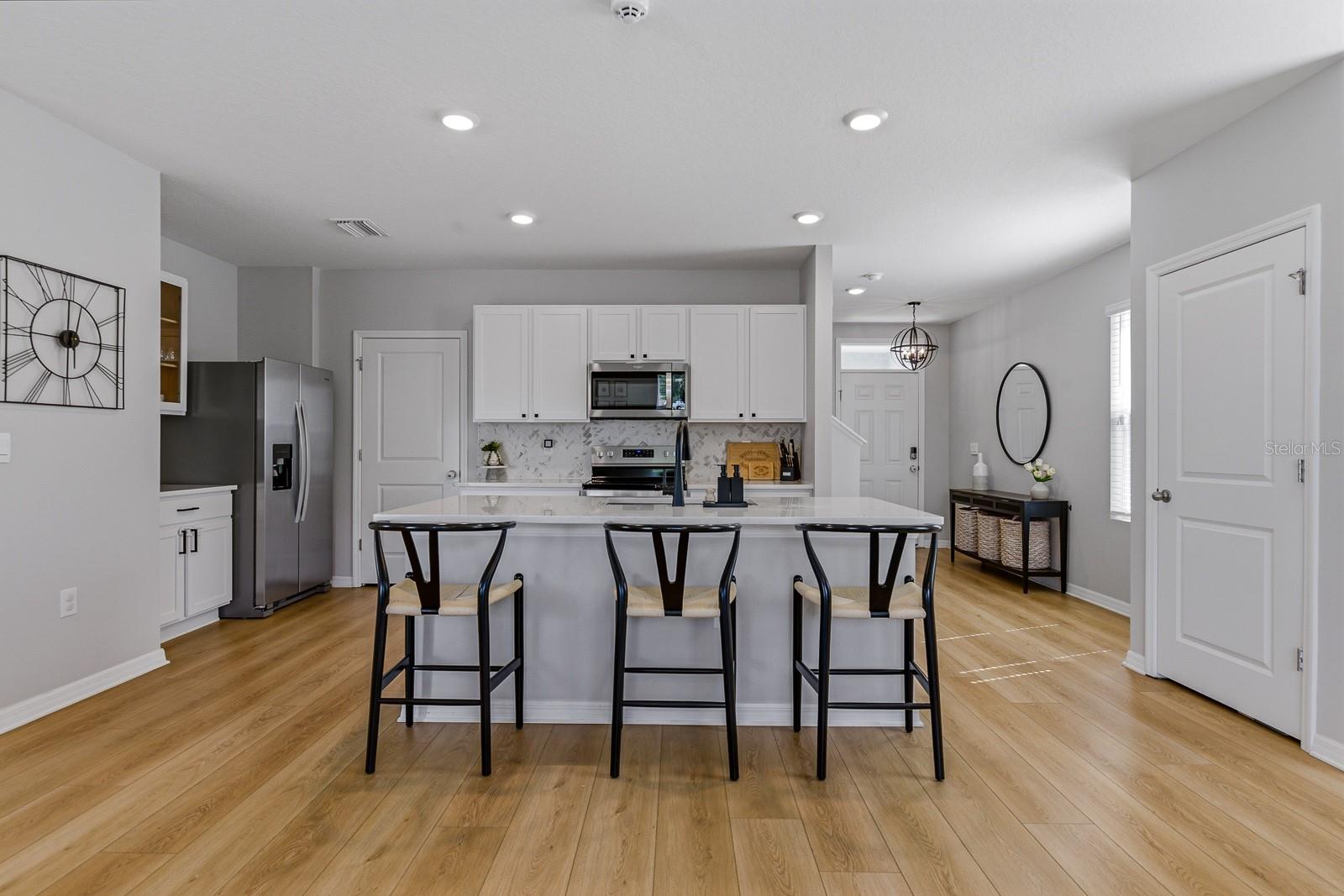 Bem-vindo à casa dos seus sonhos! Este modelo único do DR Horton Elston verifica todas as caixas: Estética de luxo, lagoa premium e local com vista para conservação e localizado em uma das comunidades mais procuradas de Odessa. Construída em 2021 e situada em uma pitoresca área de conservação com vista serena para o lago e a fonte, esta casa de 4 quartos e 2,5 banheiros, um loft espaçoso e garagem para 2 carros possui mais de 2.000 pés quadrados. Ao entrar pela entrada frontal treliçada e pelo paisagismo bem cuidado, você é recebido com uma vista de conservação e do lago e um hall de entrada acolhedor com luminárias atualizadas e interior pintado profissionalmente na cor Sherwin Williams Crushed Ice, realçando a sensação moderna e luminosa da casa. Toda a casa está equipada com um sistema de segurança inteligente com fio de US$ 8.000, incluindo sensores em todas as janelas e portas. O primeiro andar apresenta mais de US$ 10.000 em pisos de pranchas de vinil de luxo Provenza, criando uma base perfeita e elegante para o layout de conceito aberto. A cozinha totalmente atualizada e renovada é uma verdadeira peça central com: armários estilo Shaker na cor Linho, backsplash de azulejos em formato de espinha de peixe, bancadas de quartzo atualizadas, uma pia Kraus de grandes dimensões com descarte, recursos de gabinete embutidos, uma torneira Moen de designer, hardware moderno, portas de armário com detalhes em vidro, luminárias atualizadas na área de jantar e uma despensa espaçosa com amplas prateleiras para armazenamento e organização. Os eletrodomésticos de cozinha têm acabamento elegante em aço inoxidável, oferecendo estilo e durabilidade. A cozinha flui facilmente para as áreas de jantar e de estar, criando um espaço aberto e convidativo, perfeito para entretenimento ou relaxamento. A área do térreo possui vários armários de armazenamento e um lavabo com portas de vidro deslizantes que fluem para o oásis do quintal totalmente pavimentado. No andar de cima, o espaçoso loft oferece espaço flexível, ideal para home office, sala de mídia ou área de recreação. A suíte principal oferece um retiro tranquilo com banheiro privativo tipo spa, aprimorado por um box amplo com porta de box de vidro, pia dupla, toalete privativo, armário de roupa de cama e closet separado. Os quartos adicionais incluem recursos de design exclusivos, como uma placa personalizada e uma parede de sarrafo, enquanto a lavanderia foi melhorada com armazenamento adicional de rack de arame para maior conveniência, além de ventiladores de teto atualizados instalados em todos os quartos e na área de estar principal. O segundo banheiro no andar de cima possui uma pia dupla de grandes dimensões e uma combinação de banheira/chuveiro. A garagem foi cuidadosamente atualizada com piso em epóxi, sistema de armazenamento embutido e inclui sistema de descalcificação de água. DR Horton apresenta construção de bloco no segundo andar, agregando qualidade artesanal e tranquilidade. O oásis no quintal com pavimentação instalada, quintal totalmente cercado e conservação tranquila e vista para o mar com fonte. Calhas também foram adicionadas na parte frontal e traseira da casa para maior funcionalidade e a casa vem com venezianas contra furacões. Localizado em The Preserve, os moradores têm acesso a comodidades em estilo resort, incluindo duas piscinas comunitárias, playground, academia e acesso direto a trilhas panorâmicas. Zoneado para escolas de primeira linha e convenientemente posicionado perto de lojas, restaurantes, fácil acesso à Veterans Expressway/Suncoast Parkway e a uma curta distância de carro do aeroporto. Este retiro cuidadosamente atualizado e pronto para morar em uma das comunidades mais desejáveis de Odessa não durará muito. Agende sua exibição privada hoje mesmo!