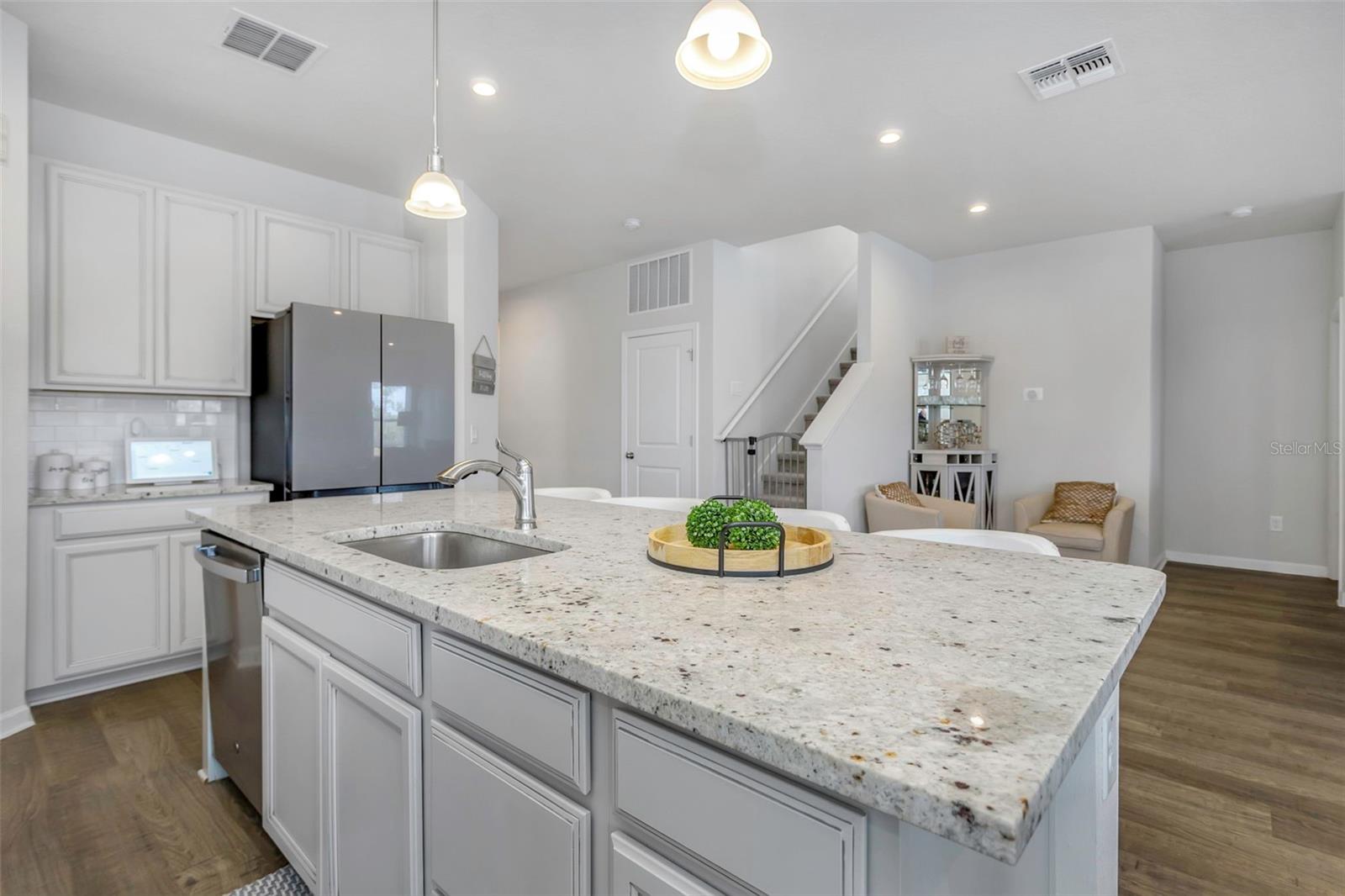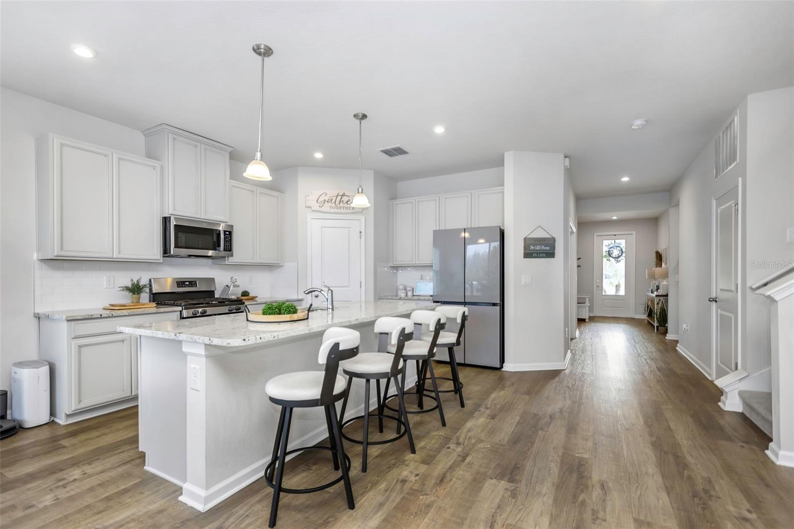 !! Redução de preços !! Esta impressionante jóia de 4 quartos e 2 banheiros na comunidade de Astúria procurada tem tudo o que você poderia querer para viver em família-e mais alguns! Desde o momento em que você passa pela porta, é recebido com um layout aberto e brilhante que flui sem esforço de sala em sala, oferecendo vistas serenas imbatíveis de água e conservação exuberante desde a sua sala de estar, a área de jantar e a cozinha. Imagine a alegria de hospedar reuniões de família em uma cozinha que não é apenas uma cozinha - é o coração da casa! Bancadas de granito, utensílios de aço inoxidável, fogão a gás, despensa e uma ilha de grandes dimensões tornam esse espaço perfeito para preparar as refeições, mantendo todos conectados. O layout foi projetado com a família em mente - uma planta baixa oferece três espaçosos quartos de hóspedes com amplo espaço no armário e um segundo banheiro conveniente, além de uma lavanderia dedicada que torna a tarefa uma brisa. Retire para o seu quarto primário privado, onde você acorda com vistas deslumbrantes todas as manhãs. O banheiro privativo parece um spa pessoal, completo com pias duplas, um chuveiro, banheira de imersão e um grande closet. No andar de cima, o loft é um espaço versátil pronto para ser o que sua família precisa - uma sala de jogos, escritório em casa ou suíte de hóspedes. Do lado de fora, o apelo do meio -fio está no ponto com uma encantadora varanda coberta, e a varanda dos fundos fechada oferece o local perfeito para relaxar com um café na mão e mergulhar no lago pacífico e nas vistas de conservação. Está localizado em uma comunidade de zona de inundação com um HOA ultra-baixo-você obtém acesso a uma piscina em estilo resort, fitness center de primeira linha, clube comunitário, playground, parque de cães, trilhas para caminhada e belos espaços verdes abertos para as crianças brincarem. Esta casa está cheia de amor e lembranças, e está pronta para sua família criar a sua!