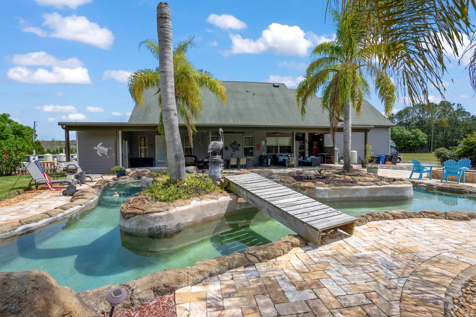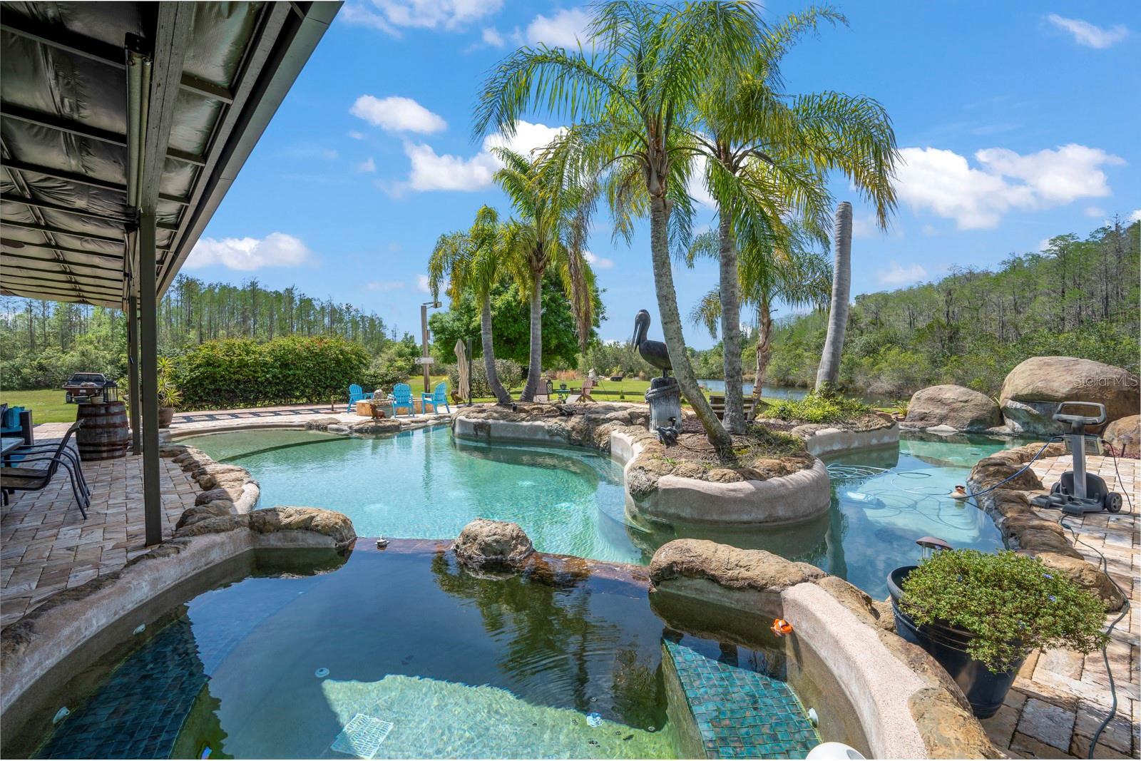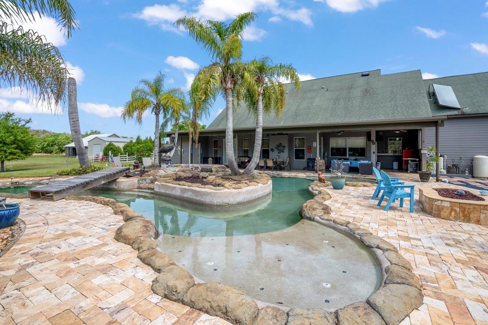 *Somente compromisso! Cães e câmeras de segurança no local!* Oasis privados deslumbrantes! Prepare -se para se surpreender com este lindo, construído personalizado, com 3 quartos (além de quarto de bônus que poderia ser usado como outro quarto), 2,5 banheiros (sem incluir um banho de bilhar completo), 3199 pés quadrados, sentados em mais de 3,5 acres, mas ainda centralmente localizados perto de Tampa, praias, compras, refeições, etc!! Esta casa foi meticulosamente mantida e cuidada! A principal suíte master fica no piso principal e os outros 3 quartos estão no andar de cima. O piso principal tem um meio banho (além do banheiro principal), com o segundo andar tendo dois banheiros (um com pia e vaso sanitário e outro com pia e chuveiro)! O quintal voltado para o oeste, com sua piscina de 50.000 galões de rio Lazy e spa aquecida, fogueira a gás e pátio coberto é a área de entretenimento perfeita e aproveitando aqueles belos pôr do sol da Flórida! Especialmente olhando por cima da lagoa, abastecido com peixe! Localizado no final de uma estrada privada; Você tem muita terra para privacidade, cercada na área para animais de estimação e muito mais! Muito potencial, sendo Zoned AR! Desfrute de sentar ao redor da sala com uma lareira a gás! Outra vantagem é que o fogão, o aquecedor de água e muito mais são conectados com gás! Programe sua exibição, porque uma casa como essa será rápida!