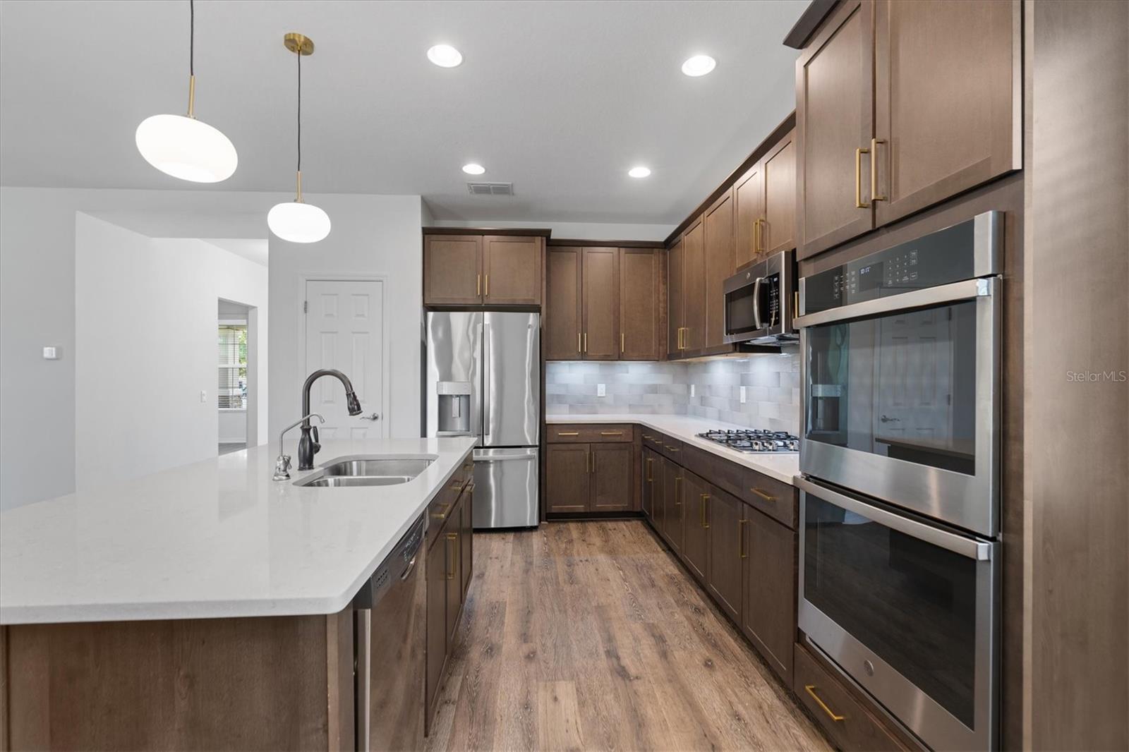 Uma ou mais fotos foram virtualmente encenadas. Delicie-se com o auge da vida luxuosa com esta magnífica planta baixa do MI Homes Montrose, graciosamente situada em um enorme terreno cercado de esquina na premiada comunidade Starkey Ranch de Tampa Bay. Esta distinta residência apresenta 4 quartos, 3 banheiros completos, sala de estar ou jantar flexível e uma sala bônus, harmonizando elegância com praticidade para oferecer uma experiência de vida incomparável. Uma grande varanda frontal oferece uma recepção calorosa, convidando os hóspedes a um reino de sofisticação refinada. O exterior atualizado do Craftsman é aprimorado com pedra e paisagismo fresco. Entre no hall de entrada e abra à esquerda um espaço luminoso e versátil, perfeito para uma sala de jantar formal ou uma sala de família adicional. À direita, descubra um quarto no andar principal complementado por um banheiro completo atualizado, proporcionando conforto e conveniência para hóspedes, escritórios ou residências multigeracionais. Sua cozinha gourmet é equipada com eletrodomésticos embutidos da GE de última geração, balcões de quartzo, nova iluminação elegante e ricos armários de madeira maciça manchados de cinza ardósia adornados com requintados acessórios de latão. Fluindo perfeitamente para a grande sala, a planta aberta prepara o cenário para entretenimento e relaxamento sem esforço. Saia para o amplo pátio coberto, um cenário idílico para reuniões ao ar livre, com vista para o pátio cercado de tamanho generoso, cercado por sebes exuberantes, oferecendo privacidade e espaço para atividades de lazer. Suba as escadas para descobrir uma sala de bônus multifuncional, que oferece oportunidades ilimitadas de lazer ou recreação. Retire-se para o santuário isolado do proprietário, onde uma espaçosa suíte master o aguarda, ostentando um banheiro privativo indulgente adornado com um amplo box de vidro, balcões de granito e um generoso closet. A planta dividida cuidadosamente projetada revela dois quartos adicionais e um banheiro de hóspedes com uma conveniente combinação de banheira e chuveiro. Todo o carpete NOVO enfeita o nível superior. A lavanderia do andar principal, equipada com conexões para secadoras a gás e elétricas, garante praticidade nas tarefas diárias. Villamore Lane é uma rua lateral pitoresca da comunidade que não recebe muito trânsito. O Parque Cunningham fica próximo e é acessível por uma trilha pavimentada que também leva à escola e a muitas outras comodidades. Os luxos adicionais incluem uma garagem voltada para trás com tecnologia *Smart Home*, um amaciante de água e venezianas, proporcionando tranquilidade e conveniência. Varanda para pavimentação, varanda da frente e entrada de automóveis. NOVA pintura branca por toda parte. SUPER limpo e bem conservado! Starkey Ranch, conhecido por suas comodidades incomparáveis, oferece uma escola K-8 Magnet de US$ 44 milhões, teatro, biblioteca, piscinas comunitárias, playgrounds, parques para cães e 35 quilômetros de trilhas. O parque distrital do condado de Pasco, com campos de liga para vários esportes, aprimora ainda mais as opções de estilo de vida ativo no Starkey Ranch. Convenientemente situada perto de lojas, restaurantes, do Aeroporto Internacional de Tampa e de praias imaculadas, esta casa simboliza uma vida luxuosa combinada com conveniência incomparável. Não deixe esta oportunidade passar. Agende hoje mesmo sua visualização privada e mergulhe no vídeo do tour virtual copiando e colando o seguinte link em seu navegador: https://bit.ly/4cPgYLb