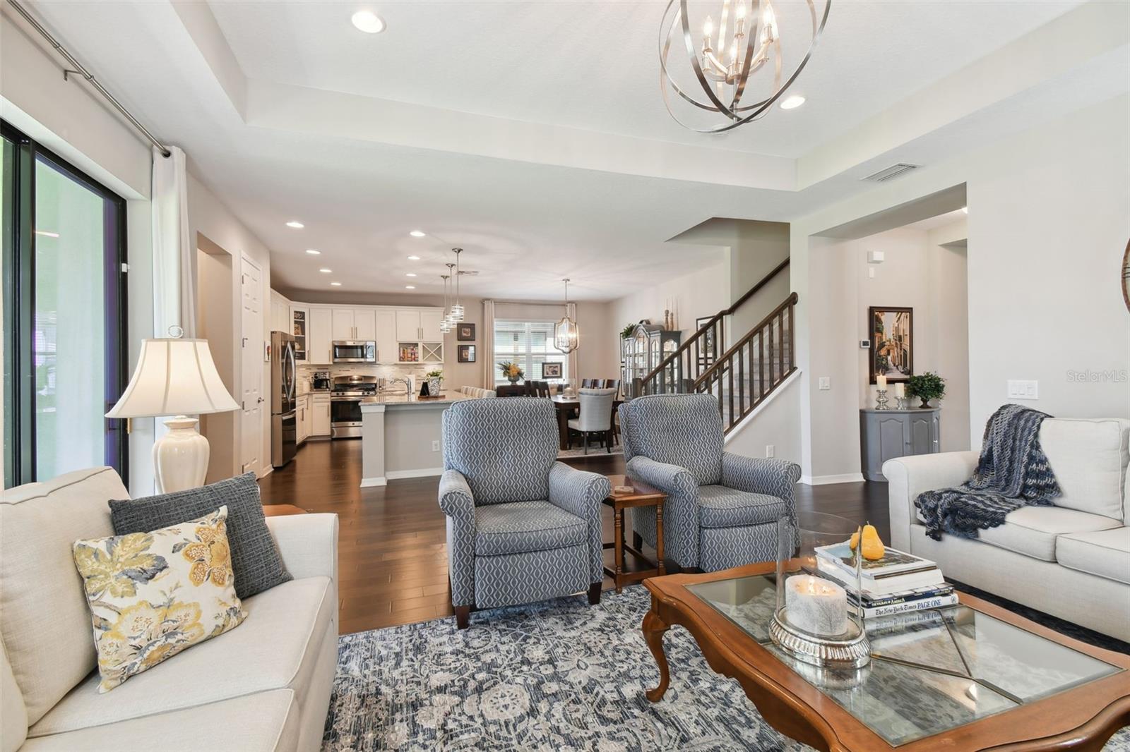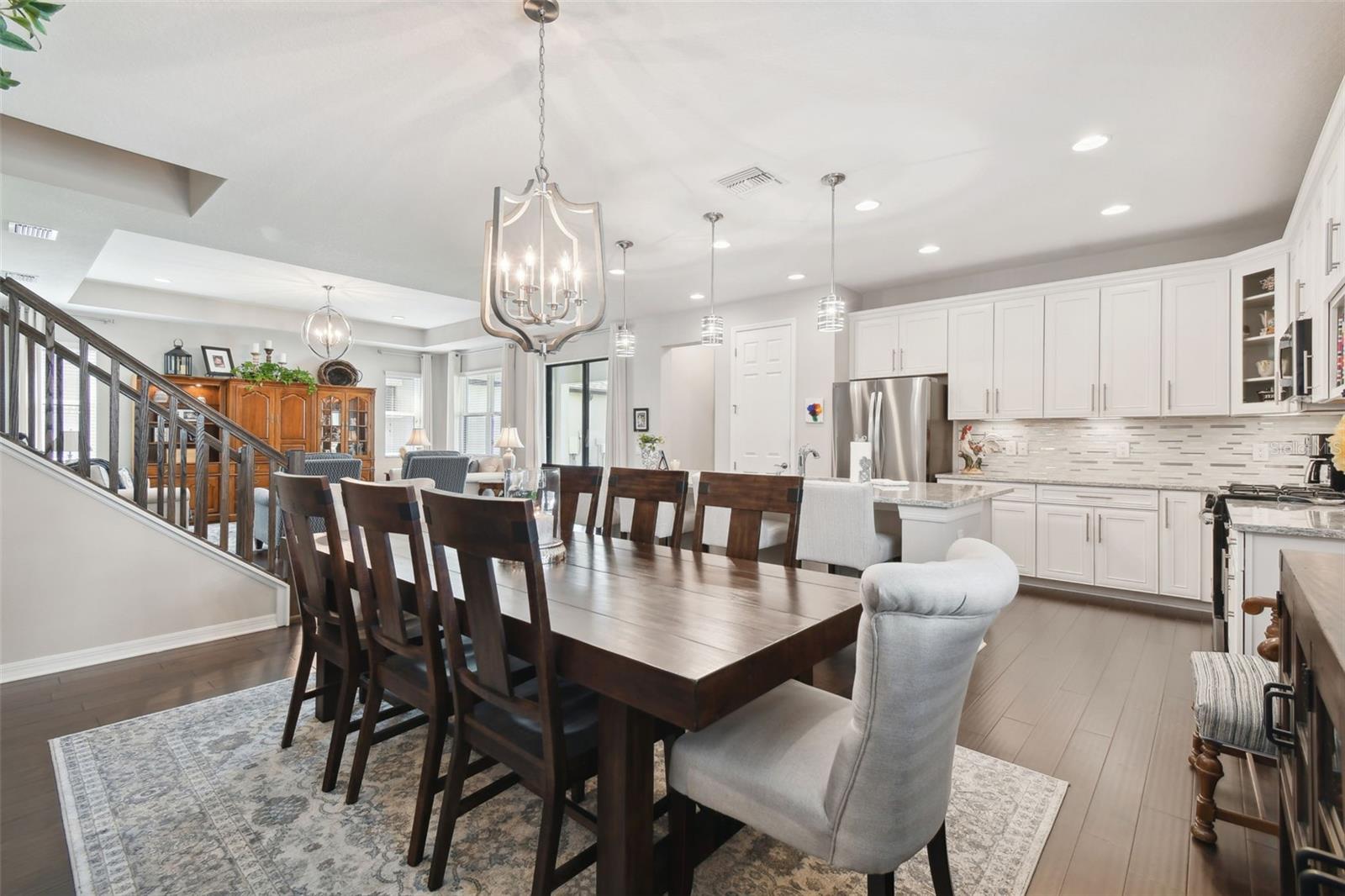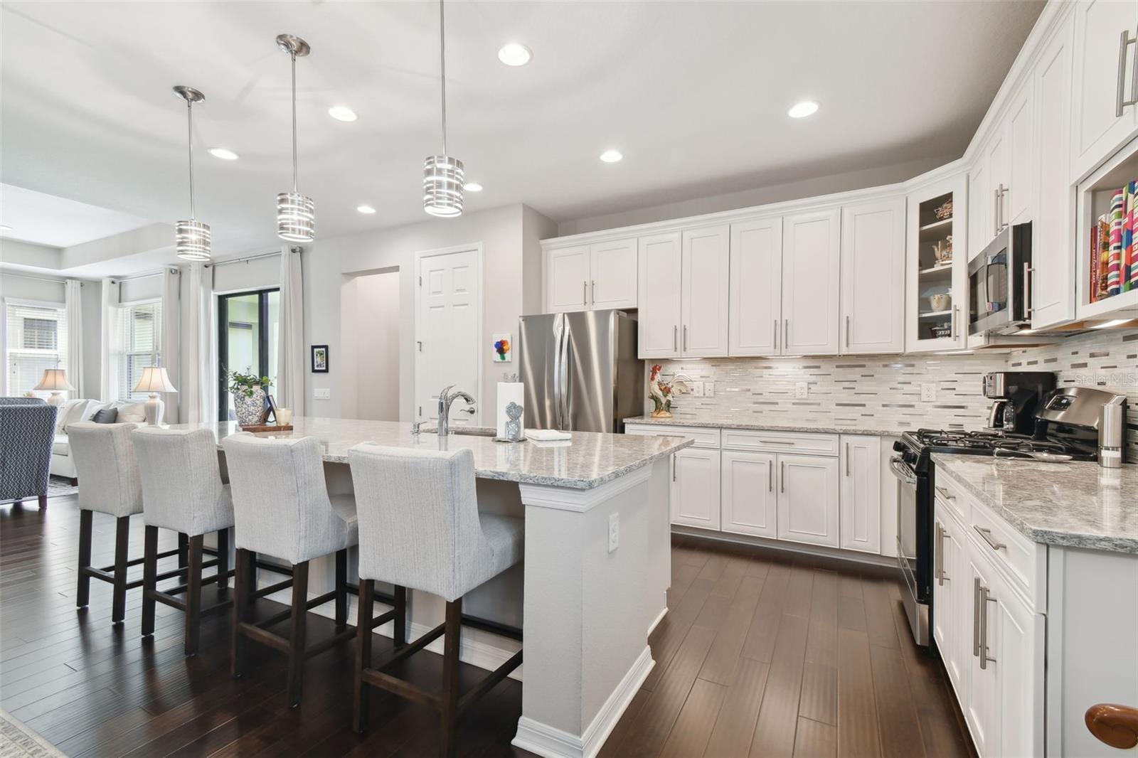 VENHA PARA UMA NOVA CASA NESTE FERIADO! Localizada em uma das comunidades mais procuradas de Tampa Bay, esta MI Home, a planta Sheridan, não é apenas um layout eficiente, mas sua localização dentro da comunidade é fabulosa. Esta casa voltada para o norte tem 3 quartos, o retiro dos proprietários fica no nível principal, além de bônus/arrumos/escritório, 2,5, banheiro, garagem para 2 carros, além de um LOFT no andar de cima, com mais de 2.700 pés quadrados de área útil. Devido à garagem traseira, você pode desfrutar de uma varanda frontal coberta muito espaçosa que oferece vistas da água/preservação da área chamada Lago Cunningham, onde você pode observar a vida selvagem local. O paisagismo meticulosamente com belas árvores de crepe e murtas e plantas coloridas torna a entrada da frente tão convidativa. Uma vez lá dentro, observe o piso de madeira projetada em todo o nível principal. O amplo foyer é grande, os tetos altos são obrigatórios e as portas de 2,5 metros fecham o negócio. À sua esquerda você tem um espaçoso escritório/escritório/área de bônus. À sua direita, você entra nos aposentos privados dos proprietários, que ficam no andar principal. A lavanderia tem novos armários leves para arrumação e há um pouco mais embaixo da escada também. A porta francesa abre para uma grande sala com luz natural que leva você para a suíte principal. Toucador de pedra moderno e leve com pias duplas, box amplo de azulejos com banco e closet. Ao entrar no coração da casa, a planta se abre para a sala de estar, área de jantar e cozinha. Decoração de tirar o fôlego e luminárias de design em dimmers estão instaladas. A sala oferece um ambiente aconchegante com teto de bandeja e janelas ao redor. A cozinha de luxo oferece despensa, eletrodomésticos a gás de aço inoxidável, geladeira LG 2024, sancas grossas, armário de vidro, 2 prateleiras para vinho embutidas, iluminação sob o armário e backsplash de vidro personalizado em tons neutros. A ilha é a peça central, adicionando assentos adicionais ao lado da área de jantar que pode acomodar uma grande mesa para 8 pessoas. As portas deslizantes levam você para fora, para sua varanda coberta, para grelhar ou se divertir. No andar de cima, você entra na grande sala loft/bônus que pode ser usada para entretenimento adicional ou noites de cinema. Os 2 quartos restantes estão à sua esquerda, cada um deles tem um closet e compartilham um banheiro completo com banheira/chuveiro. Armazenamento por toda parte. Esta casa luxuosa e bem cuidada é um espetáculo. Ele está localizado a poucos quarteirões da escola Starkey K-8, com classificação A, da creche Creative World School e do parque distrital do condado de Pasco. Starkey Ranch oferece MILHAS de trilhas para caminhada/ciclismo/corrida em toda a reserva, 3 piscinas para residentes, quadras de tênis, uma pista, uma biblioteca pública, quadras de basquete e muito mais. A equipe de estilo de vida planeja eventos ao longo do ano para todas as idades. Mercearia, assistência médica, restaurantes, compras e entretenimento estão ao virar da esquina no centro da cidade de Starkey Ranch. Perto da Veterans Expressway para viajar para Tampa. O Aeroporto Internacional de Tampa fica a cerca de 40 minutos, enquanto o Aeroporto Internacional de Clearwater fica a cerca de 40 minutos. As praias são próximas e fáceis para passeios de um dia. Aproveite os luxos por dentro e por fora. Clique em ambos os links para assistir a um vídeo e também a uma planta baixa passo a passo.