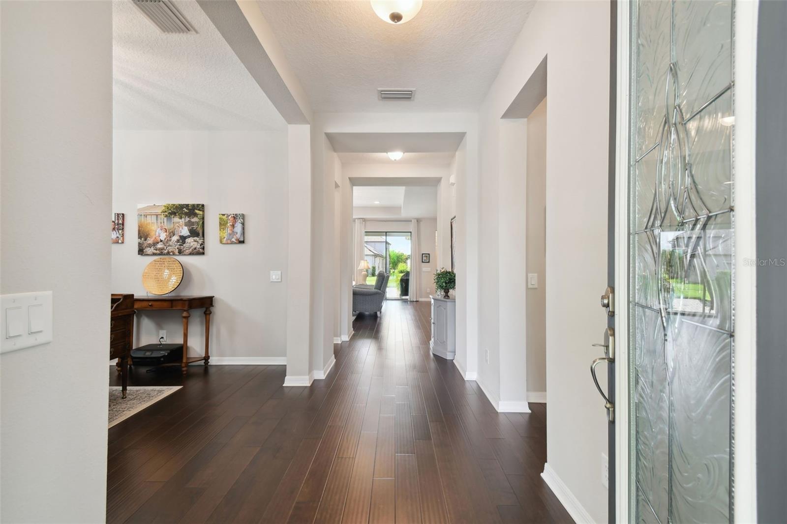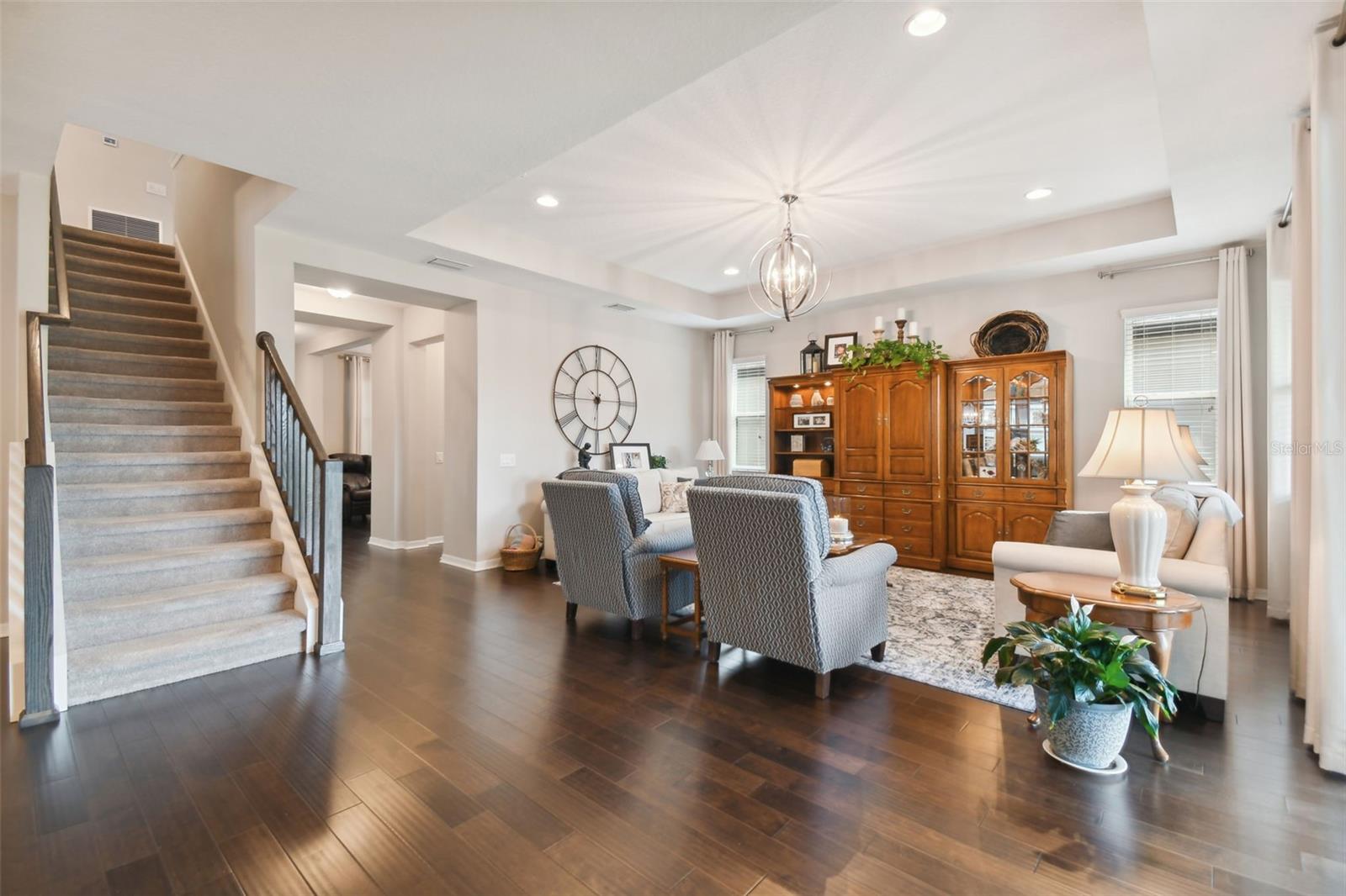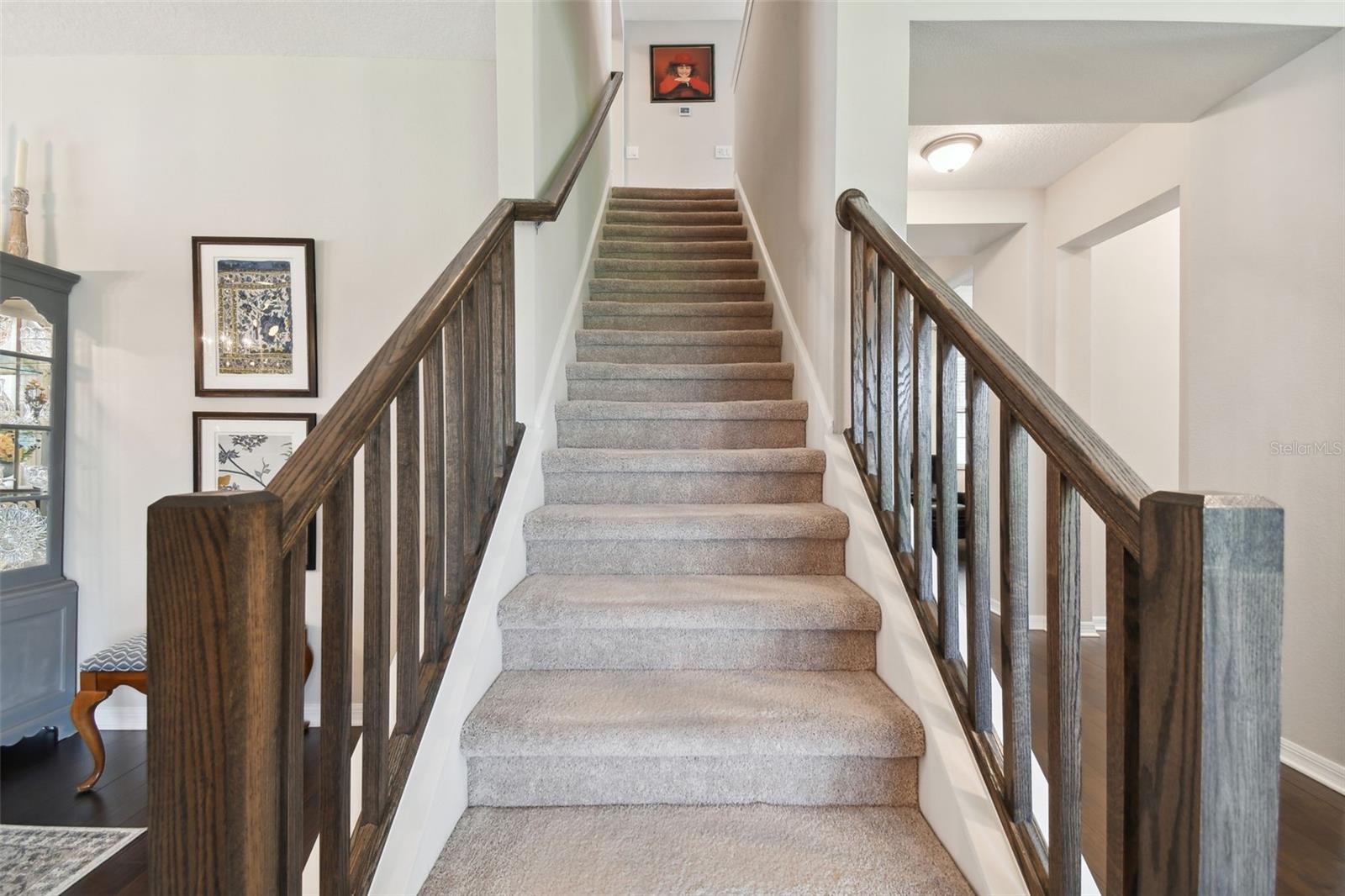 VENHA PARA UMA NOVA CASA NESTE FERIADO! Localizada em uma das comunidades mais procuradas de Tampa Bay, esta MI Home, a planta Sheridan, não é apenas um layout eficiente, mas sua localização dentro da comunidade é fabulosa. Esta casa voltada para o norte tem 3 quartos, o retiro dos proprietários fica no nível principal, além de bônus/arrumos/escritório, 2,5, banheiro, garagem para 2 carros, além de um LOFT no andar de cima, com mais de 2.700 pés quadrados de área útil. Devido à garagem traseira, você pode desfrutar de uma varanda frontal coberta muito espaçosa que oferece vistas da água/preservação da área chamada Lago Cunningham, onde você pode observar a vida selvagem local. O paisagismo meticulosamente com belas árvores de crepe e murtas e plantas coloridas torna a entrada da frente tão convidativa. Uma vez lá dentro, observe o piso de madeira projetada em todo o nível principal. O amplo foyer é grande, os tetos altos são obrigatórios e as portas de 2,5 metros fecham o negócio. À sua esquerda você tem um espaçoso escritório/escritório/área de bônus. À sua direita, você entra nos aposentos privados dos proprietários, que ficam no andar principal. A lavanderia tem novos armários leves para arrumação e há um pouco mais embaixo da escada também. A porta francesa abre para uma grande sala com luz natural que leva você para a suíte principal. Toucador de pedra moderno e leve com pias duplas, box amplo de azulejos com banco e closet. Ao entrar no coração da casa, a planta se abre para a sala de estar, área de jantar e cozinha. Decoração de tirar o fôlego e luminárias de design em dimmers estão instaladas. A sala oferece um ambiente aconchegante com teto de bandeja e janelas ao redor. A cozinha de luxo oferece despensa, eletrodomésticos a gás de aço inoxidável, geladeira LG 2024, sancas grossas, armário de vidro, 2 prateleiras para vinho embutidas, iluminação sob o armário e backsplash de vidro personalizado em tons neutros. A ilha é a peça central, adicionando assentos adicionais ao lado da área de jantar que pode acomodar uma grande mesa para 8 pessoas. As portas deslizantes levam você para fora, para sua varanda coberta, para grelhar ou se divertir. No andar de cima, você entra na grande sala loft/bônus que pode ser usada para entretenimento adicional ou noites de cinema. Os 2 quartos restantes estão à sua esquerda, cada um deles tem um closet e compartilham um banheiro completo com banheira/chuveiro. Armazenamento por toda parte. Esta casa luxuosa e bem cuidada é um espetáculo. Ele está localizado a poucos quarteirões da escola Starkey K-8, com classificação A, da creche Creative World School e do parque distrital do condado de Pasco. Starkey Ranch oferece MILHAS de trilhas para caminhada/ciclismo/corrida em toda a reserva, 3 piscinas para residentes, quadras de tênis, uma pista, uma biblioteca pública, quadras de basquete e muito mais. A equipe de estilo de vida planeja eventos ao longo do ano para todas as idades. Mercearia, assistência médica, restaurantes, compras e entretenimento estão ao virar da esquina no centro da cidade de Starkey Ranch. Perto da Veterans Expressway para viajar para Tampa. O Aeroporto Internacional de Tampa fica a cerca de 40 minutos, enquanto o Aeroporto Internacional de Clearwater fica a cerca de 40 minutos. As praias são próximas e fáceis para passeios de um dia. Aproveite os luxos por dentro e por fora. Clique em ambos os links para assistir a um vídeo e também a uma planta baixa passo a passo.