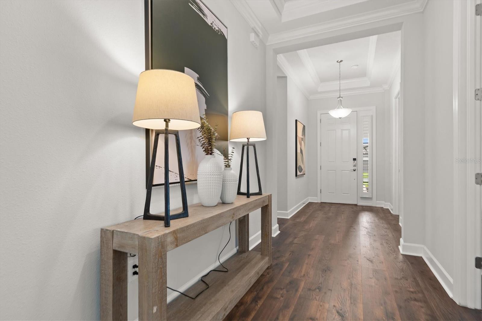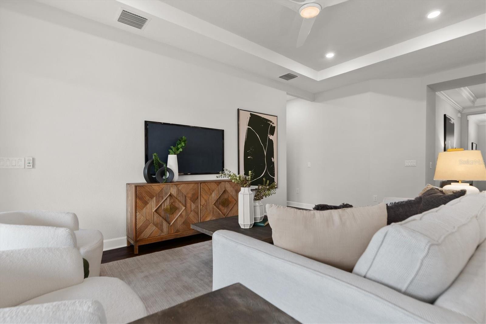 Bem-vindo a esta casa luxuosa e personalizada, com atenção impecável aos detalhes e uma variedade de atualizações premium. Este impressionante modelo Farnese está localizado no condomínio fechado Esplanade at Starkey Ranch. 3 quartos, 3,5 banheiros e um salão. A partir do momento em que você entra no grande corredor em estilo de galeria, você é saudado por tetos altos de 3 metros que fluem perfeitamente por toda a planta aberta. Esta elegante residência possui impressionantes pisos de luxo personalizados, persianas personalizadas com controle remoto e ventiladores internos/externos embutidos. A ampla cozinha é o sonho de qualquer chef, com eletrodomésticos de última geração, amplos armários e uma cozinha que se abre para uma sala familiar iluminada. As inovadoras portas deslizantes levam diretamente ao seu oásis privado ao ar livre, perfeito para entreter ou relaxar em meio à natureza. Desfrute de vistas deslumbrantes sobre a conservação no quintal cercado. A suíte principal é um verdadeiro santuário com tetos falsos, pias duplas, banheiro inspirado em spa e um closet impressionante com prateleiras personalizadas. Tanto os quartos master quanto os de hóspedes incluem armários sob medida, garantindo que todas as suas necessidades de armazenamento sejam atendidas. Cada quarto possui seu próprio banheiro privativo, oferecendo privacidade e comodidade. Uma lavanderia espaçosa e atualizada vem com armários e bancadas de alta qualidade. Os recursos adicionais desta casa excepcional incluem um gerador embutido, um amaciante de água e cortinas luxuosas com controle remoto por toda parte. Garagem para 2 carros para armazenamento adicional ou espaço de trabalho. O interior possui iluminação personalizada, ventiladores, tratamentos de janela personalizados, amaciante de água, cozinha. Esta casa atende aos códigos de construção mais recentes, possui serviços subterrâneos e não exige seguro contra inundações na cobiçada zona X Flood. Não houve efeitos nesta casa com o recente furacão. Telhado em telha barril. AC com luz UV é reparada a cada 6 meses. Os moradores podem desfrutar da academia, piscina estilo resort, quadras de tênis e pickleball, trilhas para caminhada e um gerente de estilo de vida em tempo integral que organiza eventos, aulas e atividades. Como parte da comunidade maior de Starkey Ranch, oferece uma abundância de comodidades, incluindo 35 quilômetros de trilhas pavimentadas, 18.000 acres, calçadas, iluminação pública, piscinas de bairro, parques para cães, playgrounds, casa de barco, caiaque, canoagem, diretor de atividades na equipe com inúmeras aulas para todos, horta comunitária, Publix, compras, restaurantes e muito mais.