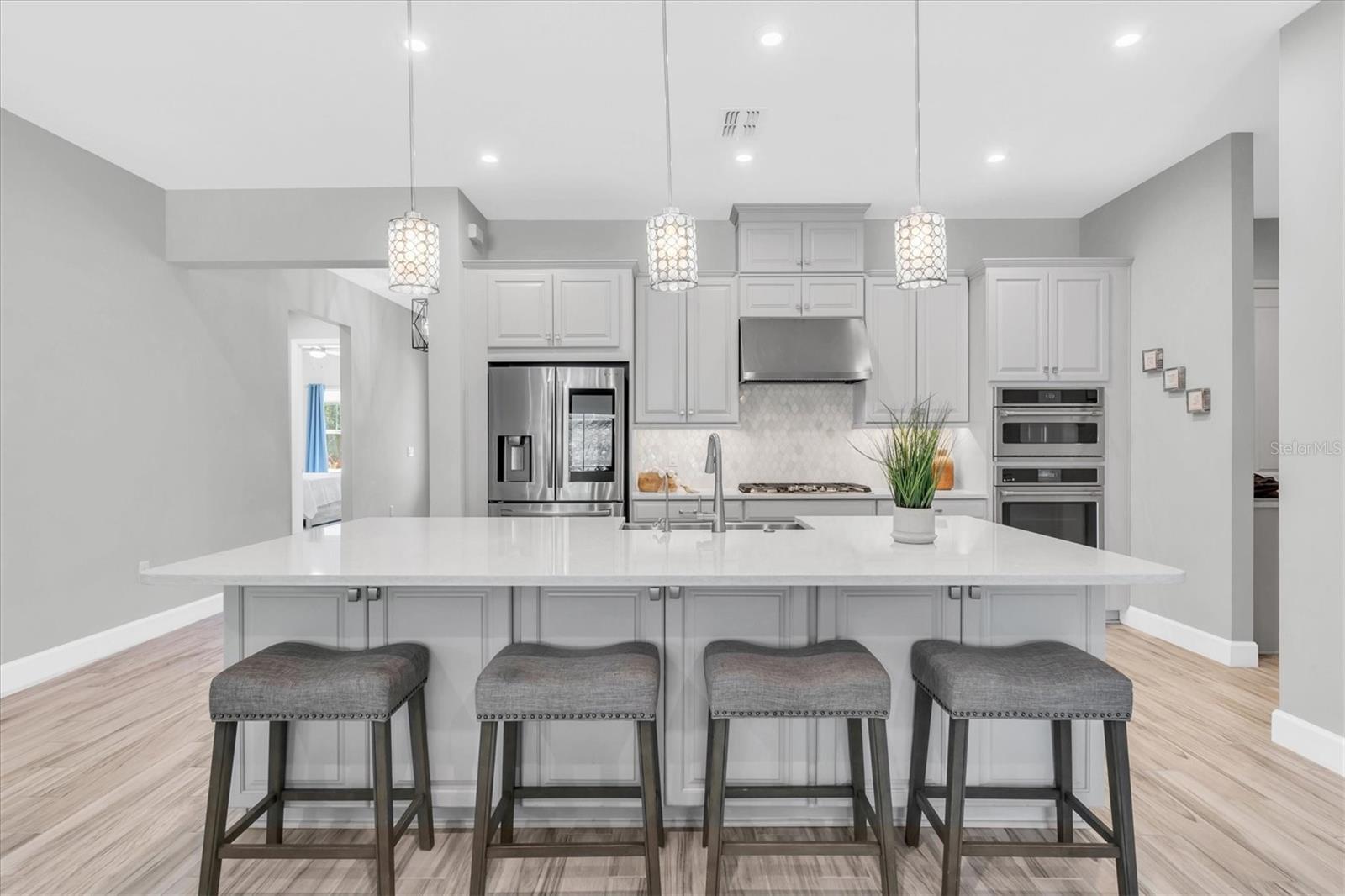 Luxo, privacidade e natureza - tudo envolvido em uma casa inesquecível. Situado em um dos lotes mais invejáveis do Starkey Ranch, este novo 2022 Taylor Morrison Saint Croix oferece o raro privilégio das vistas de conservação frontal e traseira com uma lagoa pacífica para trás, um beco sem saída na frente e as trilhas cênicas do lado de fora da sua porta. É o tipo de casa que parece férias - um único dia. Com 4 quartos espaçosos, 4,5 banheiros, uma garagem de 3 carros e quase 3.000 pés quadrados de design elevado, esta casa é um destaque em todos os sentidos. No interior, tetos de 10 pés, portas de 8 pés e um telhado de ladrilhos planos definem o tom, enquanto pisos de ladrilhos com aparência de madeira, tetos de bandeja e iluminação de grife adicionam esmalte. O coração de conceito aberto da casa está centrado em torno da cozinha de um chef que realmente se apresenta-com bancadas de quartzo, fogão a gás natural, armários de sobreposição completa de close suave, uma pia de fazenda com torneira inteligente e uma ilha generosa perfeita para refeições casuais ou reuniões animadas. Uma despensa de entrada, lavanderia grande e espaços de armazenamento no estilo mordomo tornam esta casa tão funcional quanto bonita. Todos os 4 quartos têm seus próprios banhos privados-ideais para hospedar hóspedes, acomodar uma vida multigeracional ou simplesmente oferecer a todos seus próprios retiros. Há também uma sala de jantar formal que pode facilmente se converter em um escritório particular com a adição de portas francesas, oferecendo flexibilidade à medida que as necessidades evoluem. A suíte primária é pura luxo, com vistas da reserva, uma banheira de imersão independente, chuveiro de grandes dimensões, vaidades duplas, armário de água privado e um closet pronto para o seu guarda-roupa dos sonhos. As atualizações de designers continuam em todos os banheiros com ladrilhos de porcelana, acessórios moen e gabinetes de vidro sem moldura. E então ... tem o Lanai. É isso que realmente diferencia esta casa. O pátio estendido, rastreado e enjaulado apresenta detalhes em pedra empilhados e uma nova cozinha ao ar livre personalizada - apenas imagine jantares ao ar livre, festas de futebol ou cafés tranquila da manhã, todos com vista para a reserva e a lagoa. Não há vizinhos traseiros - apenas a natureza e o céu. Additional highlights include custom remote-controlled shades in the great room, pull-down blinds throughout, 5.75” baseboards, upgraded carpet in secondary bedrooms, a tankless gas water heater, underground utilities, and custom hurricane shutters. The home is solidly built with concrete block construction and requires no flood insurance. Starkey Ranch offers resort-style amenities with pools, tennis courts, playgrounds, dog parks, fishing and O Kayak lança, os campos da liga, as zonas de fitness e mais de 22 milhas de trilhas que se conectam diretamente à preservação do Starkey de 18.000 acres Passo a passo completo e mais informações: bit.ly/12617wetmore