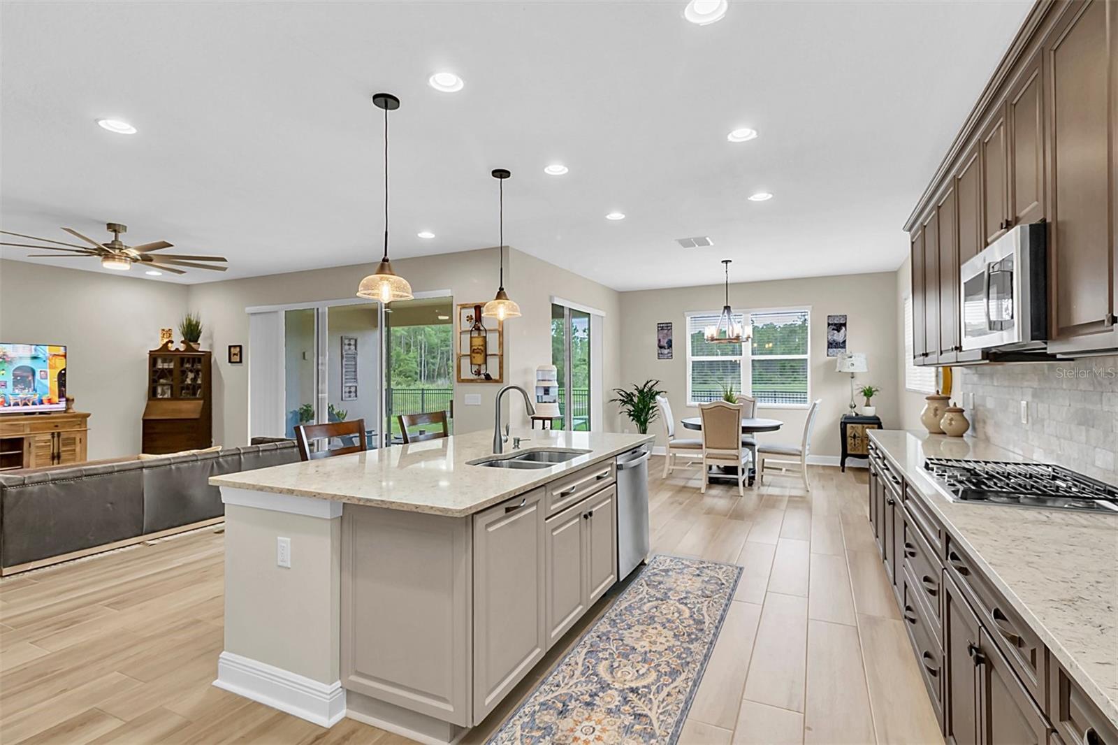 O vendedor está oferecendo US$ 10 mil para os custos de fechamento/recompra de taxa do comprador! Construída em 2019, em frente ao Albritton Park, esta casa em estilo rancho de 4 quartos e 2,5 banheiros, lindamente conservada, tem pintura externa fresca e fica em um terreno cercado de grandes dimensões com vista tranquila para o lago e uma espaçosa garagem para 3 carros. No interior, existe uma maravilhosa planta aberta com pé direito alto, iluminação embutida e piso cerâmico nas principais áreas de estar. A cozinha é o verdadeiro coração da casa, com bancadas de granito, eletrodomésticos de aço inoxidável, cozinha a gás, despensa e uma cafeteria personalizada, perfeita para a vida cotidiana e para entretenimento. A planta dos quartos divididos oferece privacidade, com closets e banheiros atualizados com acabamentos modernos. Como esta casa tem apenas 5 anos, todos os principais sistemas, incluindo telhado, HVAC, encanamento, eletricidade, eletrodomésticos, aquecedor de água a gás e amaciante de água, têm apenas cinco anos de idade. Desfrute da vida ao ar livre com uma varanda frontal coberta e um pátio traseiro coberto com vista para um quintal totalmente cercado com cercas de ferro forjado e PVC. Localizados na premiada comunidade Starkey Ranch, os moradores desfrutam de quilômetros de trilhas pitorescas, piscinas em estilo resort, playgrounds, parques para cães, campos esportivos, pavilhões comunitários e a altamente conceituada escola Starkey Ranch K-8 e biblioteca pública. Isto é mais do que uma casa – é um estilo de vida!