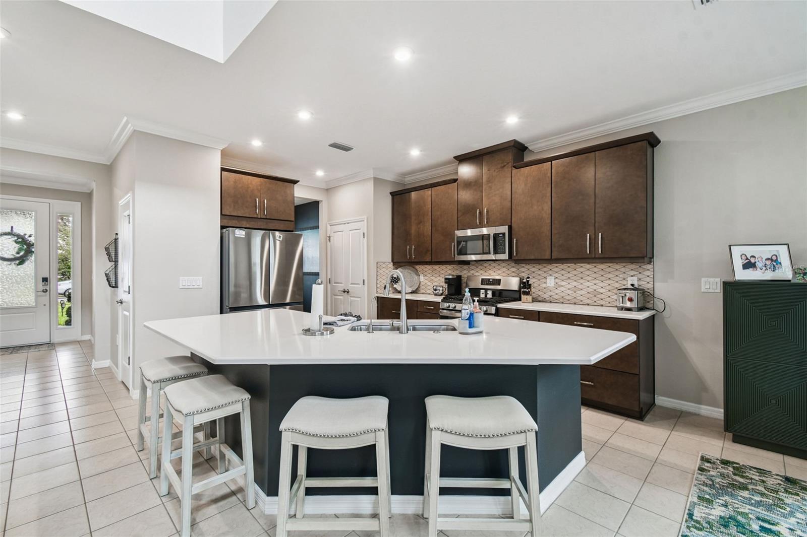 Sua oportunidade de possuir uma planta baixa impressionante da Taylor Morrison Bonaire, uma casa unifamiliar de dois andares em Starkey Ranch, está aqui. Localizado em Odessa, Flórida, o Stansil Park é uma parte desta comunidade tão procurada. Oferecer escolas com classificação A, localizadas perto da Veterans Expressway para viagens rápidas, assistência médica, mercearia, entretenimento e restaurantes ao redor desta área, torna-a uma subdivisão obrigatória. Este meticuloso 5 quartos, 3,5 banheiros, garagem para 2 carros, é um espetáculo. Desde o exterior bem conservado do artesão, com grande varanda coberta para relaxar, até a planta aberta e tetos ALTOS no interior, você não será capaz de dizer não. Uma vez lá dentro, observe o piso de cerâmica em toda a área de estar principal - SEM TAPETE. À sua esquerda está a sala de jantar designada com janelas pitorescas. A sala de jantar está ligada ao coração da casa, a cozinha, para facilitar o acesso. A cozinha tem armários/gavetas em tons quentes de 42 polegadas, fogão a gás, geladeira mais nova e ilha de quartzo leve para assentos adicionais. Backsplash personalizado. Há uma área de café designada, perfeita para uma mesa de café da manhã enquanto admira a vista. Tudo isso está aberto para a linda sala de estar de 2 andares com escada em ponte. O retiro dos proprietários está localizado no nível principal, proporcionando privacidade e possui banheiro privativo com pias duplas, box amplo com chuveiro e banheira. DOIS armários. O NOVO TAPETE foi colocado desde a escada até o loft do segundo andar. No andar de cima há mais 4 quartos separados com acesso ao banheiro - combinação completa de banheira/chuveiro. O loft é o espaço perfeito para noites de cinema ou um espaço adicional. Os quartos são todos amplos, com luz natural e podem ser um excelente espaço de escritório, se necessário. Do lado de fora das portas deslizantes triplas está o seu oásis que consiste em uma varanda coberta estendida, com tela e um quintal cercado de tamanho considerável. Esta casa foi bem projetada e decorada e está pronta para morar. Morar aqui permite acesso a 3 piscinas comunitárias, a escola Starkey K8, uma biblioteca pública, quadras de tênis, quadras de basquete, uma pista, parques infantis, parques para cães e quilômetros de trilhas para caminhada/ciclismo em toda a reserva Starkey. O parque distrital acomoda diversas modalidades esportivas e também conta com uma equipe de estilo de vida em tempo integral que programa eventos ao longo do ano. Há MUITO o que amar na localização, na comunidade e na casa.