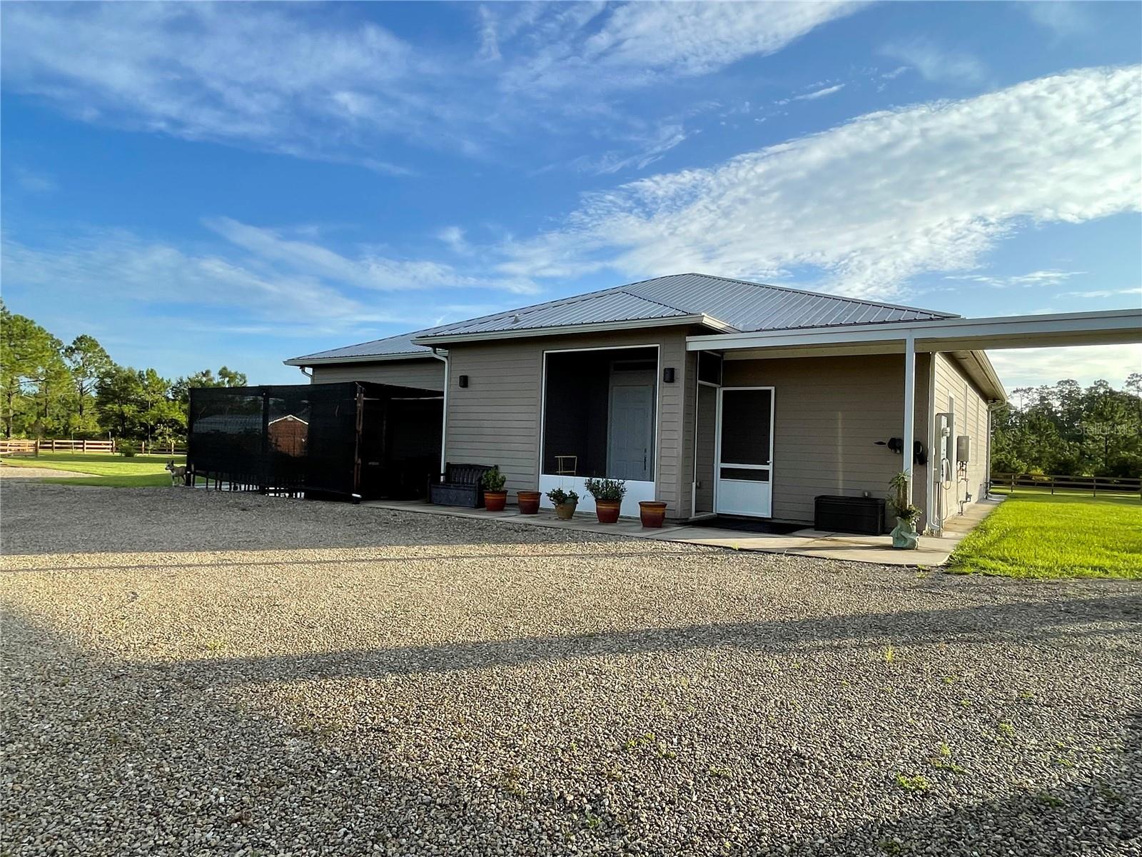 Esta casa personalizada recém-construída difere de qualquer outra oferecida atualmente no Indian Hammock Hunt and Riding Club. É uma casa personalizada criada em 2018 como residência permanente dos seus proprietários. O proprietário não poupou despesas ao projetar, preparar o lote e construir sua casa personalizada com impecável atenção aos detalhes. O lote fica a menos de três quilômetros do portão de entrada guará, permitindo acesso mais rápido dentro e fora do bairro. O edifício é de construção CBS, com piso ao teto de 14 pés, cobertura metálica e piso frio. Foi construído pela Abney Building and Constructing Inc. de acordo com os mais altos requisitos de código. A casa oferece um impressionante quarto principal com um lindo banheiro e um espaçoso closet. Dois quartos adicionais, um segundo banheiro completo, outro lavabo, despensa, sala de estar aberta, cozinha e área de jantar e despensa. A parede voltada para o Norte é composta principalmente por painéis de vidro e portas de vidro, permitindo a entrada em um pátio coberto com tela de 700 pés quadrados e uma cozinha externa. O lote de 2,6 acres foi elevado e classificado para criar um lote totalmente seco. A casa possui um grupo motogerador completo refrigerado a água de 18 KV. Tanque subterrâneo de propano de 1.000 galões. Dois aquecedores de água instantâneos a gás. Almofada RV com seu medidor elétrico. Dois poços de águas profundas de 4”. A propriedade totalmente cercada tem um caro portão de alumínio personalizado de 14’. Celeiro para cavalos de 24' por 24'. Galpão de armazenamento com ar condicionado de 14' por 30'. Muitos canteiros elevados estão prontos para cultivar seus próprios jardins de vegetais e ervas. Garagem para três veículos com sala anexa com ar condicionado. Pasto para cavalos cercado, verde e irrigado. Gramados bem cuidados. Várias tomadas elétricas e luzes de chão ao redor do lote. Indian Hammock Hunt and Riding Club é um condomínio fechado que possui 3.600 acres de charme antigo da Flórida, dos quais 2.800 são terrenos comuns preservados, quilômetros de trilhas equestres, vários campos de tiro, áreas de caça, uma academia, uma piscina, uma quadra de tênis , uma quadra de Pickleball e um restaurante.
