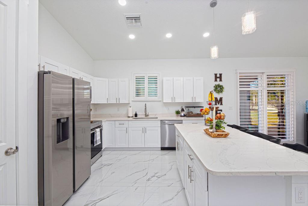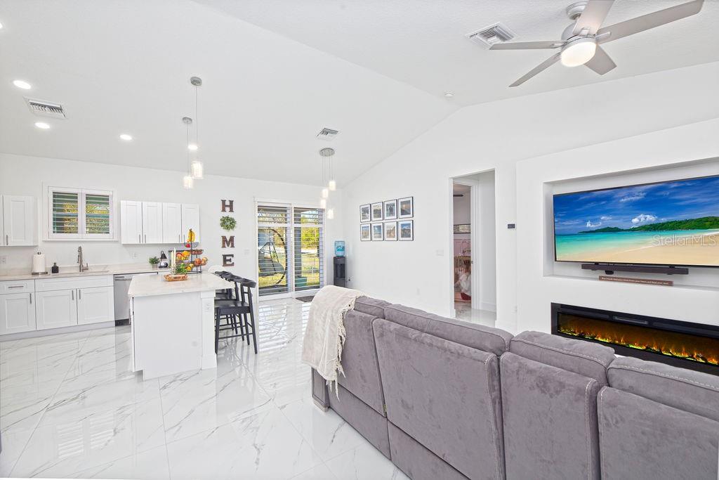 Esta impressionante casa de 3 quartos e 2 banheiros em um lote enorme de 0,36 acres está repleta de atualizações personalizadas muito além do nível de construção padrão. Tetos altos de 3 metros, portas de 2,5 metros, venezianas e lindos azulejos de 36 polegadas em toda a casa. A área de estar em conceito aberto apresenta teto abobadado e lareira decorativa, criando um espaço luminoso e convidativo. A cozinha brilha com madeira maciça, armários com fechamento suave, bancadas de quartzo e eletrodomésticos de aço inoxidável. A espaçosa suíte principal oferece teto falso, closet personalizado e chuveiro lindamente revestido com piso de pedra de rio. Janelas e portas de impacto, isolamento de espuma em spray e um aquecedor de água sob demanda proporcionam excelente eficiência energética. Aproveite a varanda coberta 21x10, calçada de tijolos, calhas e muito mais.