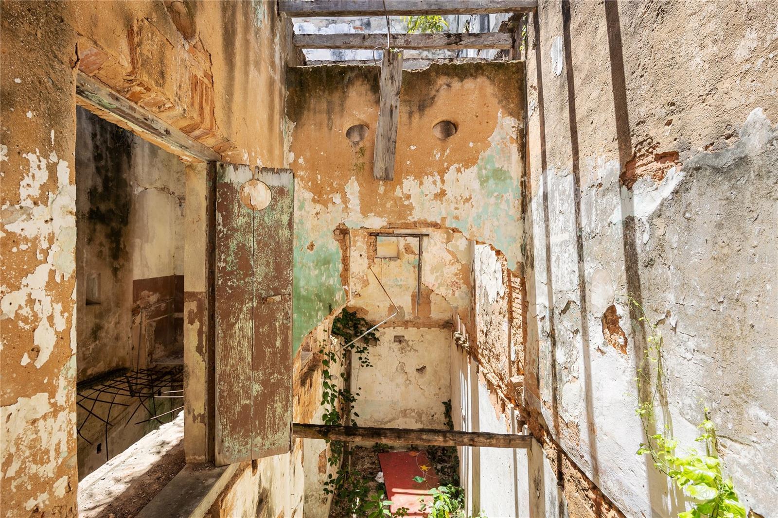 Situada ao longo de um trecho tranquilo da Rua Luna, na parte antiga de San Juan, a apenas um quarteirão e meio da Plaza de Armas e imediatamente adjacente a La Cochera, esta ruína histórica lindamente preservada oferece algo cada vez mais raro: autenticidade, história e presença. Originalmente construída como uma moradia de três pisos, a estrutura revela-se em camadas: alvenaria envelhecida, ritmo de arcos e uma profundidade que se desdobra gradualmente a partir da rua, atraindo-o para dentro. No interior, a atmosfera é inesperadamente calma, quase reverente. A luz solar filtra através do volume aberto onde antes ficavam os pisos e o telhado, iluminando texturas moldadas pelo tempo. Trepadeiras, reboco envelhecido, vigas expostas. O pátio original abre dramaticamente para cima, revelando toda a altura da estrutura, enquanto os restos da escadaria e dos níveis superiores permanecem visíveis, oferecendo uma impressionante sensação de verticalidade e proporção. Um espaço que guarda memória, onde a arquitetura e a natureza se entrelaçam silenciosamente. Para quem entende, a oportunidade é clara. O atual proprietário encomendou projetos arquitetônicos para uma residência de três andares, projetada de acordo com as proporções da propriedade e a escala da moradia. Situado em um dos bolsões mais desejáveis e acessíveis da Velha San Juan, este é um projeto definido não pelo que falta, mas pelo que pode ser trazido de volta, com intenção, respeito e visão.