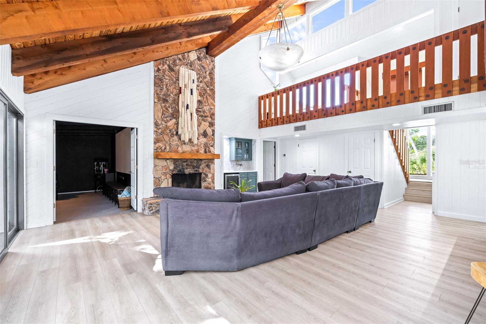 A propriedade NÃO sofreu danos causados pelo furacão. Situada na muito procurada comunidade de East Lake Woodlands, esta casa unifamiliar lindamente conservada e remodelada com bom gosto dispõe de 3 quartos e 2,5 banheiros. Combinando charme vintage com conveniências modernas, possui duas novas unidades de AC (2023 e 2021), um telhado mais novo (2018), armários de cozinha personalizados e luxuoso piso de vinil à prova d'água (todos novos em 2021 e 2022). Ao entrar nesta casa de dois andares, você se sentirá atraído pelas principais áreas de estar. No andar de baixo, a grande sala familiar recebe você com suas impressionantes paredes com detalhes em madeira de cedro (recém-pintadas em 2021), tetos embutidos em madeira com vigas expostas e uma lareira a lenha cercada de pedra. Um elegante lavabo está convenientemente localizado nas proximidades. Neste nível, você também encontrará o espaçoso quarto principal e um banheiro principal lindamente reformado (2023) com azulejos de bambu relaxantes, criando um retiro semelhante a um spa. A planta aberta, a impressionante ilha de mármore de quartzo de 14 pés e os armários personalizados que se estendem até uma copa para assentos adicionais tornam esta casa o espaço ideal para entretenimento. A luz natural inunda a área a partir do amplo e tranquilo pátio ao lado da cozinha, perfeito para aproveitar o melhor da vida na Flórida. No andar de cima, você descobrirá quartos de tamanhos generosos, incluindo acesso a um banheiro Jack-and-Jill. As características externas incluem uma entrada de automóveis de grandes dimensões, NOVAS cercas, calhas e dreno francês também foram adicionados. Utilize o loft enorme na garagem, perfeito para amplo armazenamento, raro em casas na Flórida! Não perca esta incrível oportunidade, agende hoje mesmo sua exibição!