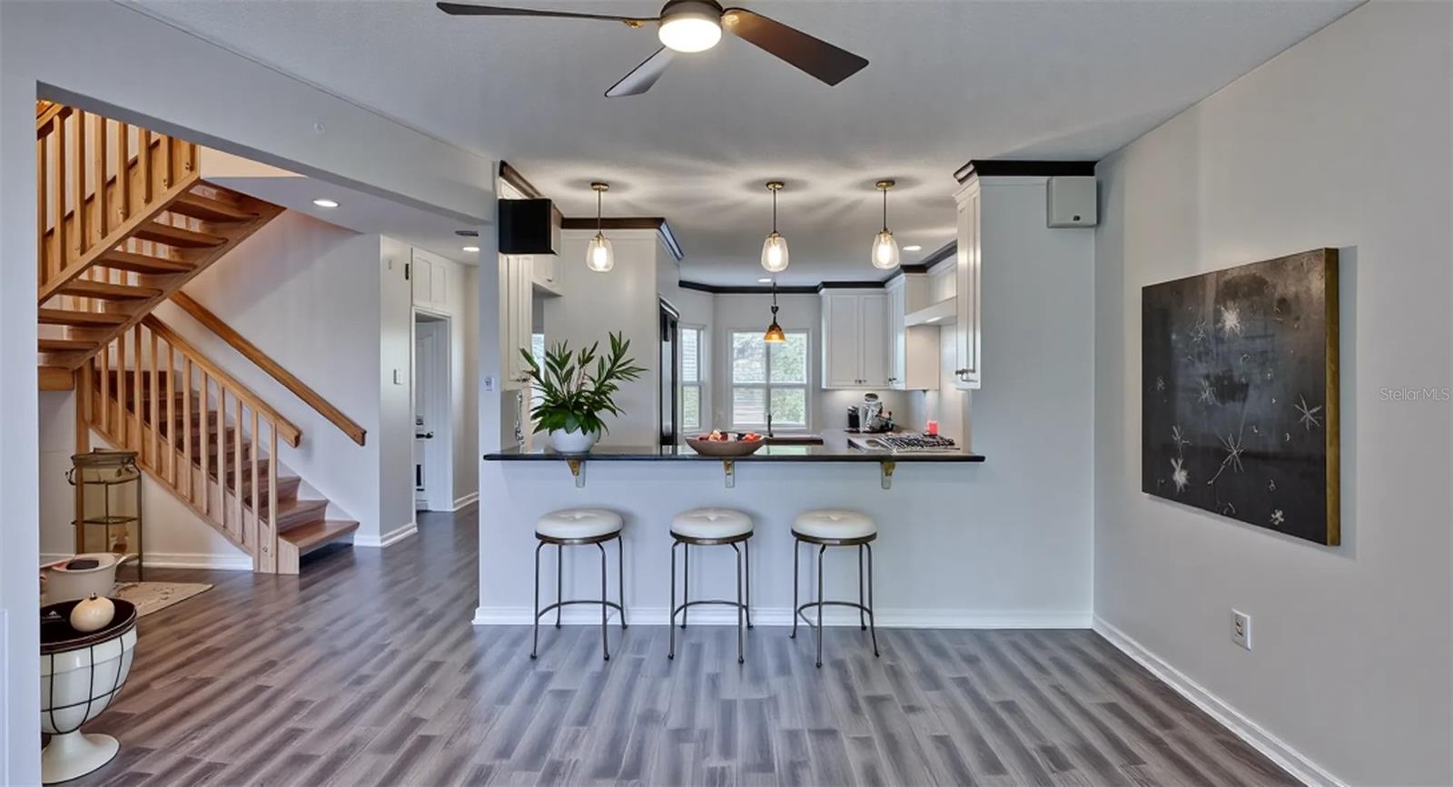Uma ou mais fotos foram virtualmente encenadas. A luxuosa vida em um campo de golfe o aguarda! Entre nesta linda residência urbana de 3 quartos e 2,5 banheiros situada diretamente no 18º buraco (pro-tee) na altamente desejável comunidade East Lake Woodlands Golf & Country Club. Esta joia pronta para morar combina atualizações modernas com charme atemporal, oferecendo uma planta baixa aberta espaçosa, tetos altos e uma sala de bônus versátil, ideal para um escritório doméstico, academia ou sala de jogos. A cozinha em estilo chef brilha com bancadas de granito, eletrodomésticos de aço inoxidável, armários de madeira e sancas elegantes. No andar de cima, aproveite o piso de madeira real, enquanto o andar de baixo possui laminado para facilitar o cuidado. Toques de designer, como persianas, som surround, smart TV de 75" e sistema de som integrado criam uma casa elegante e funcional. A ampla suíte principal é um verdadeiro refúgio com vistas deslumbrantes do campo de golfe, área de estar, closet e uma banheira inspirada em spa com banheira de imersão e box amplo. Relaxe em sua varanda com vista para o campo de golfe - o cenário perfeito para o café da manhã ou coquetéis à noite. Esta casa está vazia e as fotos são virtualmente encenadas com infinitas possibilidades! Aproveite todos os benefícios de um estilo de vida livre de manutenção: o HOA cobre seguro, água, esgoto, lixo, cuidado do gramado, manutenção externa e piscina comunitária. Localizado em uma localização privilegiada, perto de escolas de alto nível, praias do Golfo, John Chesnut Park, Pinellas Trail e o animado centro de Dunedin. entretenimento. De volta ao mercado recém-pintado!