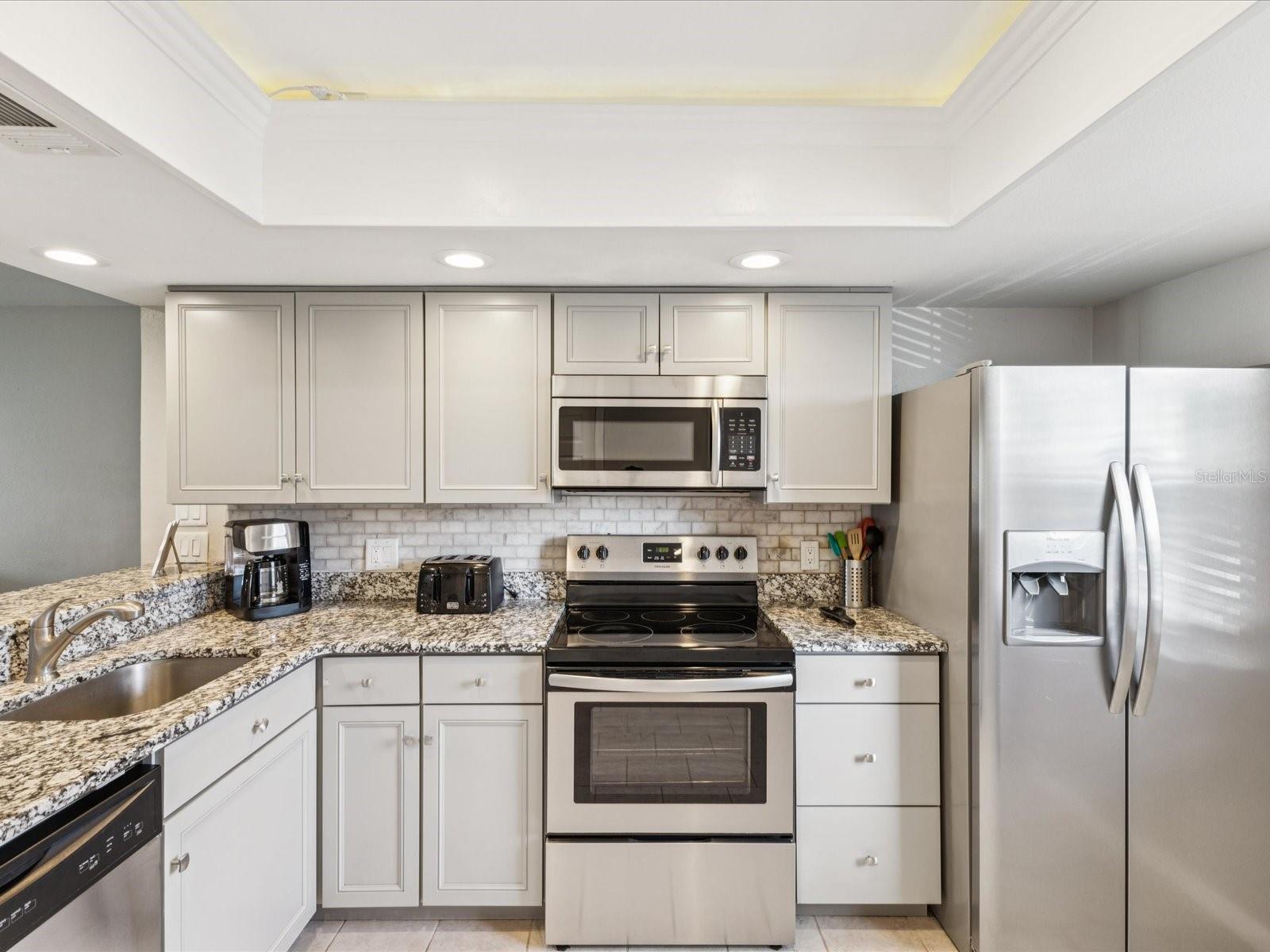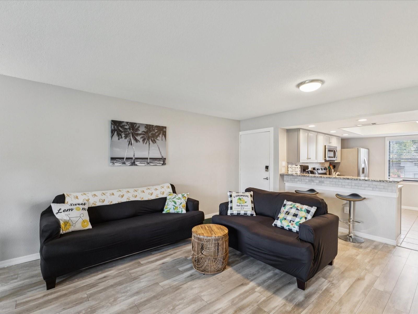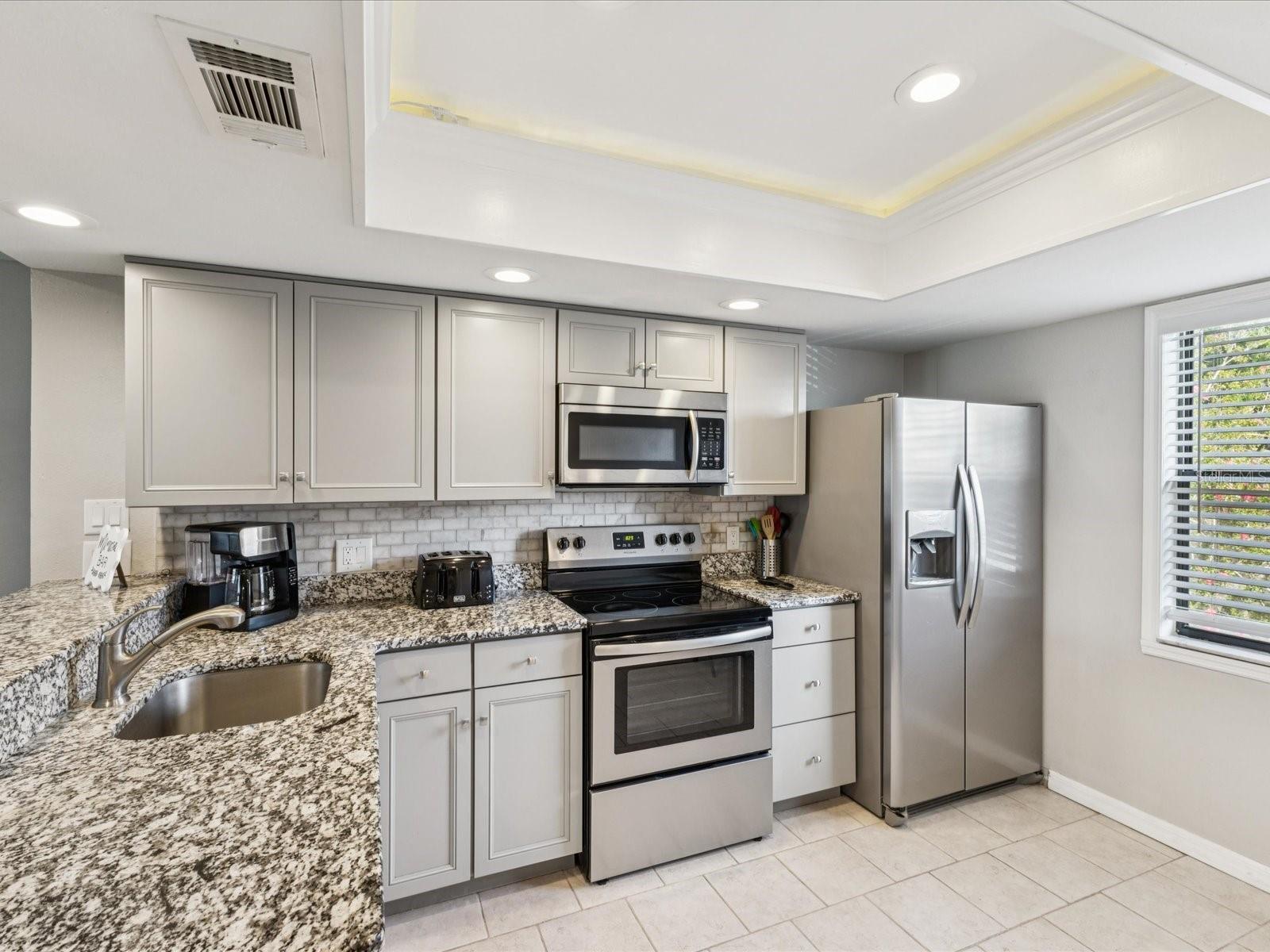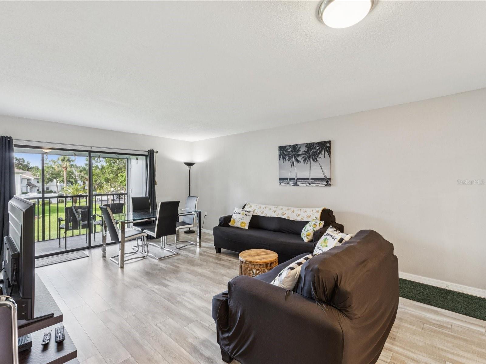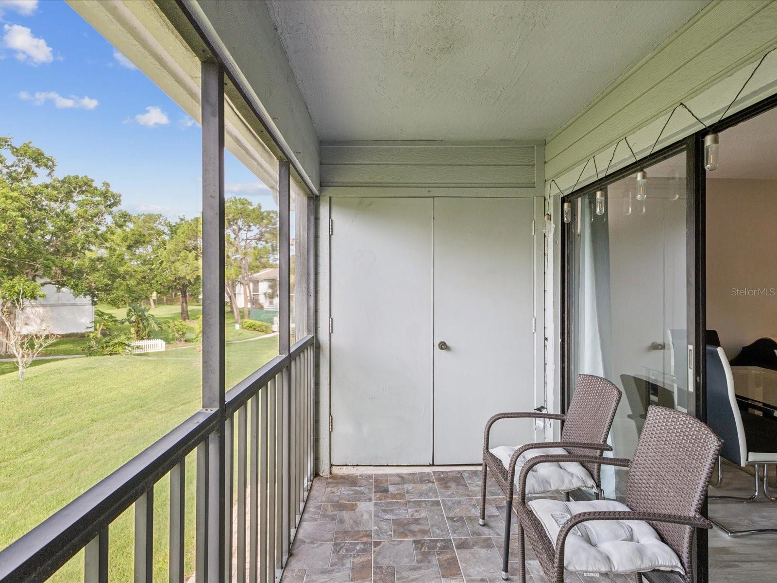 Clean and move-in ready Furnished 2/2 in The Meadows at East Lake Woodlands~~Income producing updated condo currently used as vacation property and AirBnB~~2nd floor and location makes this a desirable get away~~Beautiful updated kitchen w/newer cabinets, granite, stainless appliances, large pantry, new lighting and eat-in area as well~~Split floorplan makes this ideal for roommates as 2nd area can be closed off with pocket Porta ~~ Mestre grande tem 2 armários e banheira completa com chuveiro e armário de linho, todos atualizados! Bedroom 2 large enough for King bed access to updated guest bathroom~~Ceramic Tile in wet areas and Luxury Vinyl throughout~~Relax on the screened porch and have access to washer/dryer and some extra storage~~Assigned parking~~plenty of visitor parking, bike racks, community pool, gated entry, Golf Community (separate $$) HOA includes water, sewer, trash, cable and internet!!Easy access to shopping all around, restaurants, TPA and PIE, Praias em 20 minutos ~~ Pronto para você trazer suas roupas e descer !! A \ C 2024, aquecedor de água 2017, telhado 2024