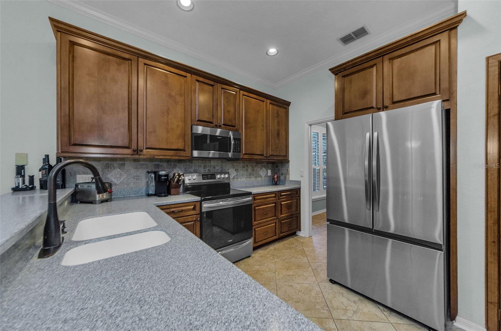 Bem-vindo ao 5163 Pinnacle Drive, uma residência muito bem conservada situada no muito procurado condomínio fechado de campos de golfe de East Lake Woodlands. Este bairro excepcional oferece segurança 24 horas por dia, 7 dias por semana e acesso ao East Lake Woodlands Country Club, proporcionando um estilo de vida exclusivo com golfe, tênis, restaurantes e muito mais. Esta casa cuidadosamente projetada possui 3 quartos e 2 banheiros completos em um desejável layout de planta dividida. O piso de cerâmica percorre toda a casa - sem carpete - oferecendo estilo e baixa manutenção. Os tectos altos e o design de conceito aberto criam um ambiente luminoso e arejado, perfeitamente adequado tanto para a vida quotidiana como para entretenimento. A espaçosa cozinha possui armários de 42 polegadas, eletrodomésticos de aço inoxidável mais recentes e uma copa com vista para o pátio coberto. A sala de estar adjacente possui uma porta de vidro deslizante que se abre totalmente para a área de estar externa, permitindo uma diversão perfeita entre ambientes internos e externos. O pátio em si é um oásis privado com piso de pavimentação, uma área coberta e protegida, um spa subterrâneo e um espaço adicional ao ar livre ideal para grelhar e aproveitar o sol da Flórida. A suíte principal de grandes dimensões inclui armários duplos e um luxuoso banheiro privativo com pia dupla, banheira de jardim e um amplo box amplo com banco embutido. Os dois quartos adicionais estão localizados no lado oposto da casa com banheiro completo compartilhado com combinação de banheira e chuveiro, oferecendo privacidade e flexibilidade para hóspedes ou familiares. As principais atualizações incluem: telhado 2019, HVAC de 4 toneladas 2022, organizadores de garagem 2023 (parede de ripas, armazenamento superior e ventilador), abridor de porta de garagem 2024, pintura externa 2024, novo equipamento de spa 2023, lavadora, secadora e geladeira 2023–2025, isolamento de toda a casa 2024 e proteção contra surtos de toda a casa, 2023 embutidos personalizados na sala de estar e salas de jantar, paisagismo 2023 pedra e som surround na sala e varanda. Desfrute de uma vida verdadeiramente livre de manutenção com uma taxa de associação mensal que cobre pintura externa a cada oito anos, toda manutenção do gramado, lavagem sob pressão, cabo Spectrum e internet, lixo e reciclagem e acesso à piscina comunitária. Casas na Pinnacle Drive raramente estão disponíveis – não perca esta oportunidade de morar em uma das comunidades mais prestigiadas de Oldsmar com conveniência, segurança e comodidades incomparáveis.